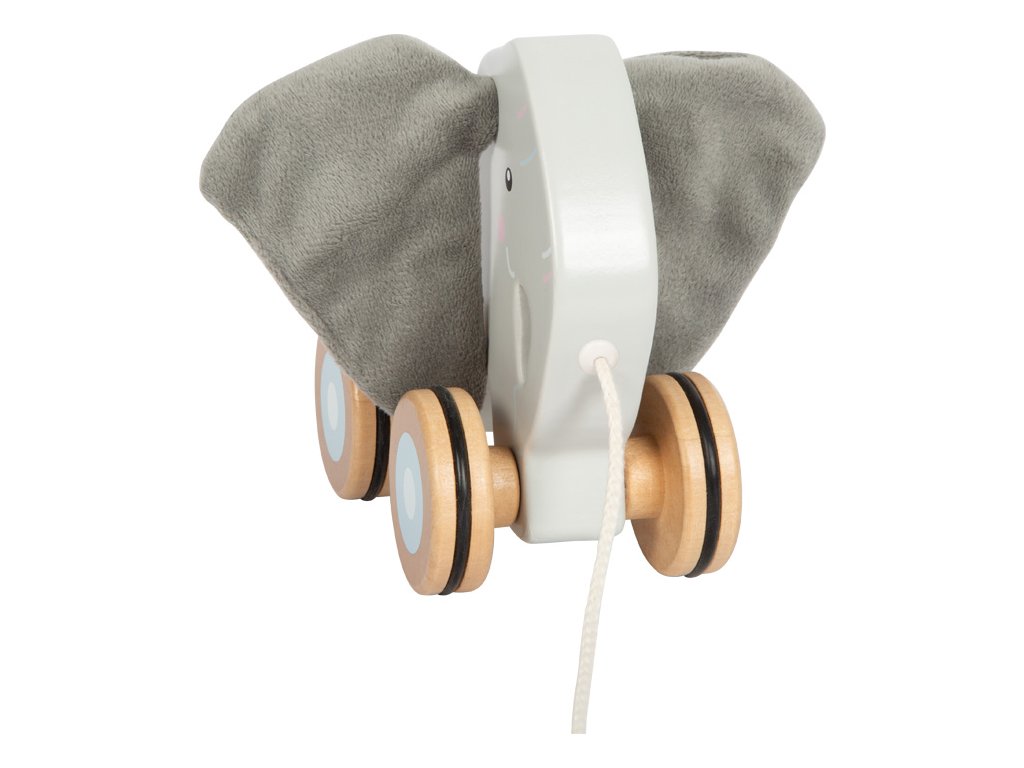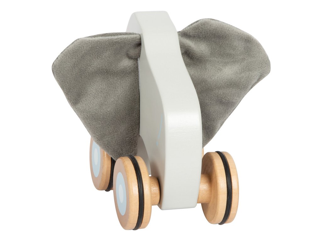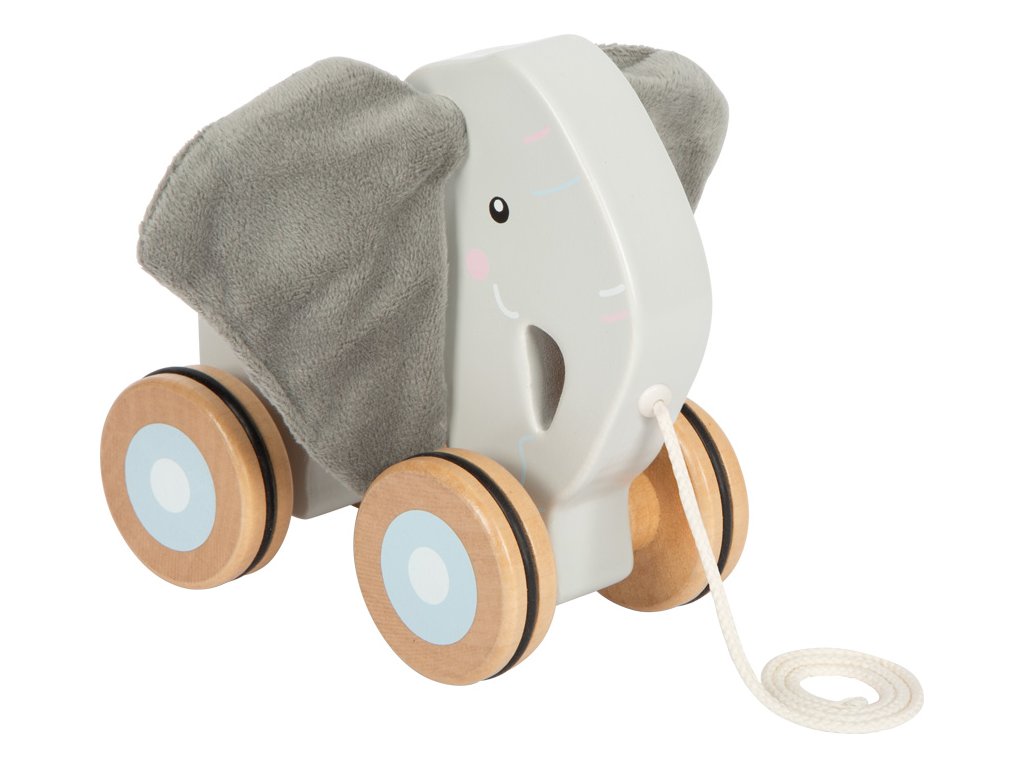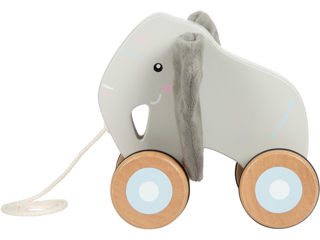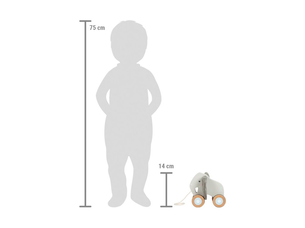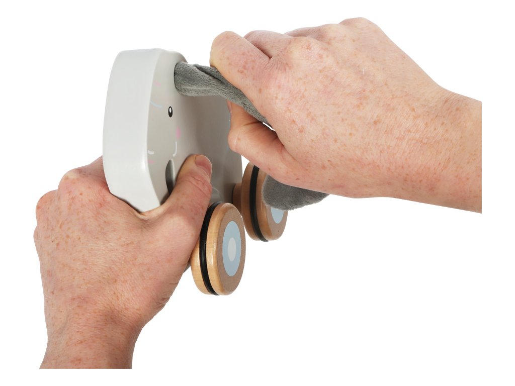 A jedeme! Roztomilý slon na provázku s velkýma, měkkýma ušima vyrobený z vysoce kvalitního pevného dřeva se jistě stane nezapomenutelným kamarádem každého dítka při jeho prvních samostatných krůčcích. Dá se snadno táhnout na provázku a povzbuzuje malé děti k lezení a chůzi. Užijí si tak při procházkách spoustu zábavy. Pogumovaná kolečka napomáhají plynulé a tiché jízdě. Hračka podporuje rozvoj motorických dovedností, pohyblivosti a smyslového vnímání. Šustivá ouška lze snadno odebrat a vyprat. Hlavní vlastnosti: robustní provedeníodnímatelné měkké ušise šňůrou dlouhou 60 cmpodporuje rovnováhu a koordinaci pohybůrozvíjí motorické dovednostis tichými pogumovanými kolečkyinspiruje dětskou kreativitu a představivost