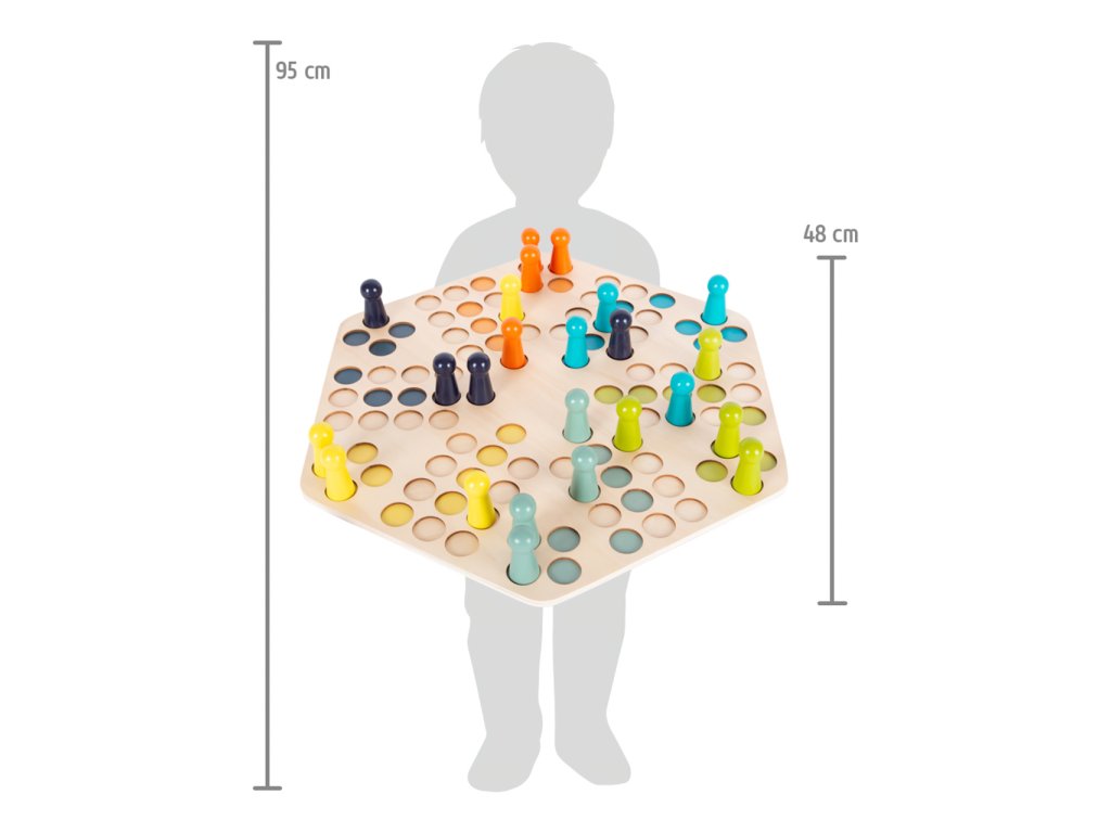 Člověče nezlob se pro 6 hráčů na velké herní desce. Všech 6 hráčů zde musí udržet emoce na uzdě. Velké figurky pro malé nebo třesoucí se prsty. Hlavní vlastnosti: hra vhodná až pro 6 hráčůrozvíjí logické myšlení dětí