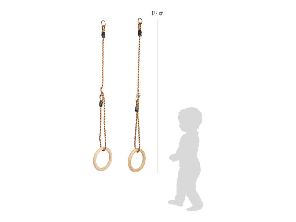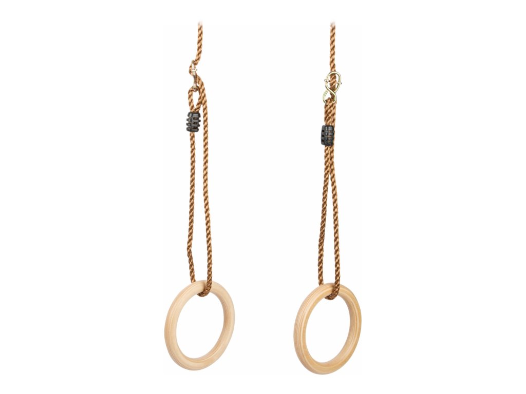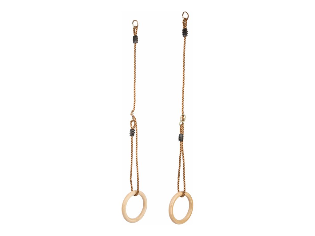 Gymnastické a houpací kruhy zabaví děti každého věku. Malí akrobaté na nich mohou změřit sílu, rovnováhu a vytrvalost. I nejnáročnější sestavy si můžou nacvičit doma na zahradě. Kruhy jsou velikostí přizpůsobené i menším dětem. Lana jsou jednoduše výškově nastavitelná a na koncích opatřena kovovými kroužky k zavěšení. Hlavní vlastnosti: jednoduché nastavení délkynosnost 100 kgodolné provedení