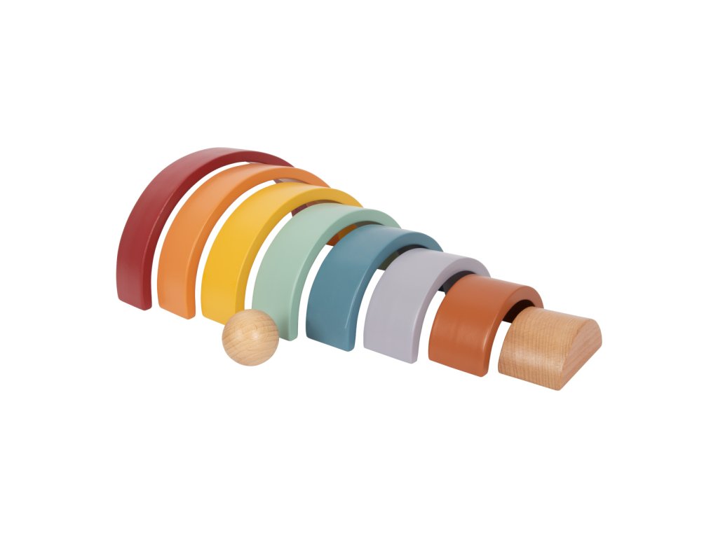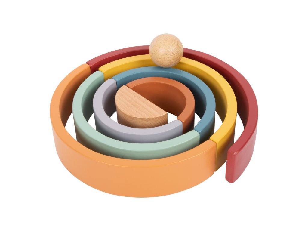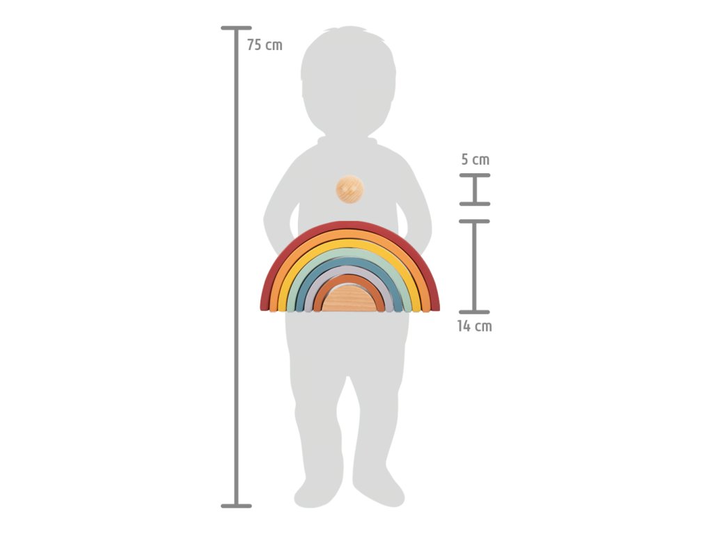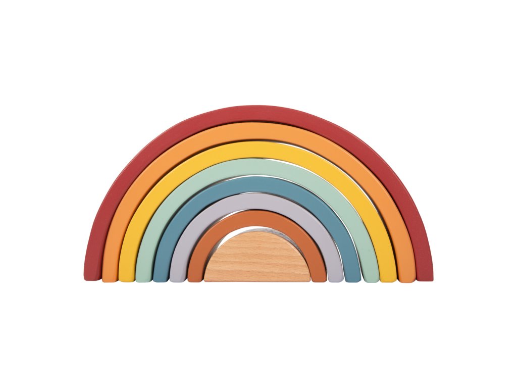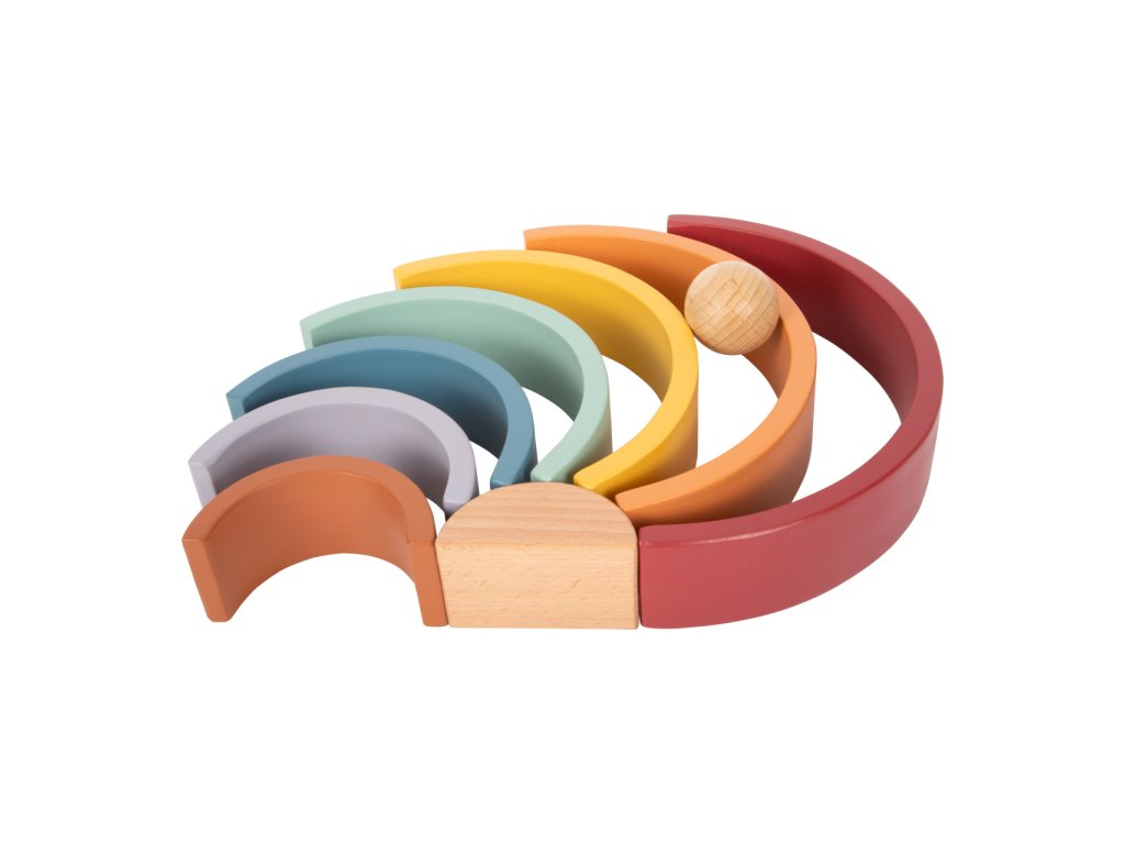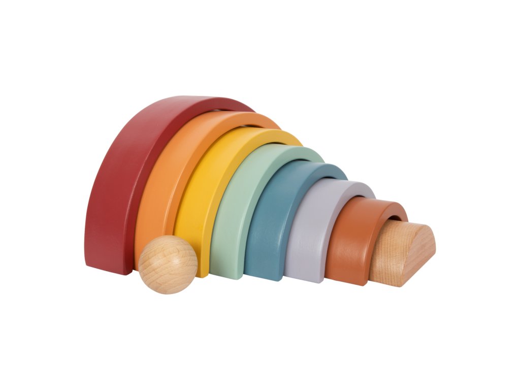 Která barva je nejkrásnější? Dřevěnou duhu doplňuje dřevěná kulička. Tato robustní duha vyrobená ze dřeva včetně dřevěné kuličky v přírodní barvě je ideálním společníkem pro batolata. 8 dřevěných oblouků v trendových barvách duhy, lze použít různými způsoby k třídění, stavění nebo skládání. Zapůsobí na děti i rodiče svým přirozeným dojmem a obzvláště krásným vzhledem. Umožňuje volnou hru podle Montessori pedagogiky a zajišťuje, že se fantazii při hraní meze nekladou - pro děti všech věkových kategorií! Ti nejmenší nahlédnou do teorie barev a naučí se poznávat barvy. Duhové "Safari" je také ideální do každého dětského pokoje a je skutečným poutačem. Hlavní vlastnosti: univerzální oblouky ze dřeva s příjemnou haptikoumoderní barevné schémakulička z přírodního dřevavhodné pro hraní metodou Montessoripomáhá s porozuměním rozdílným velikostem a barvámděti mohou stavět tunely, překážkové dráhy a bludiště
