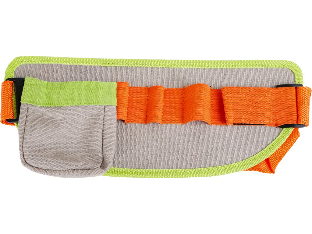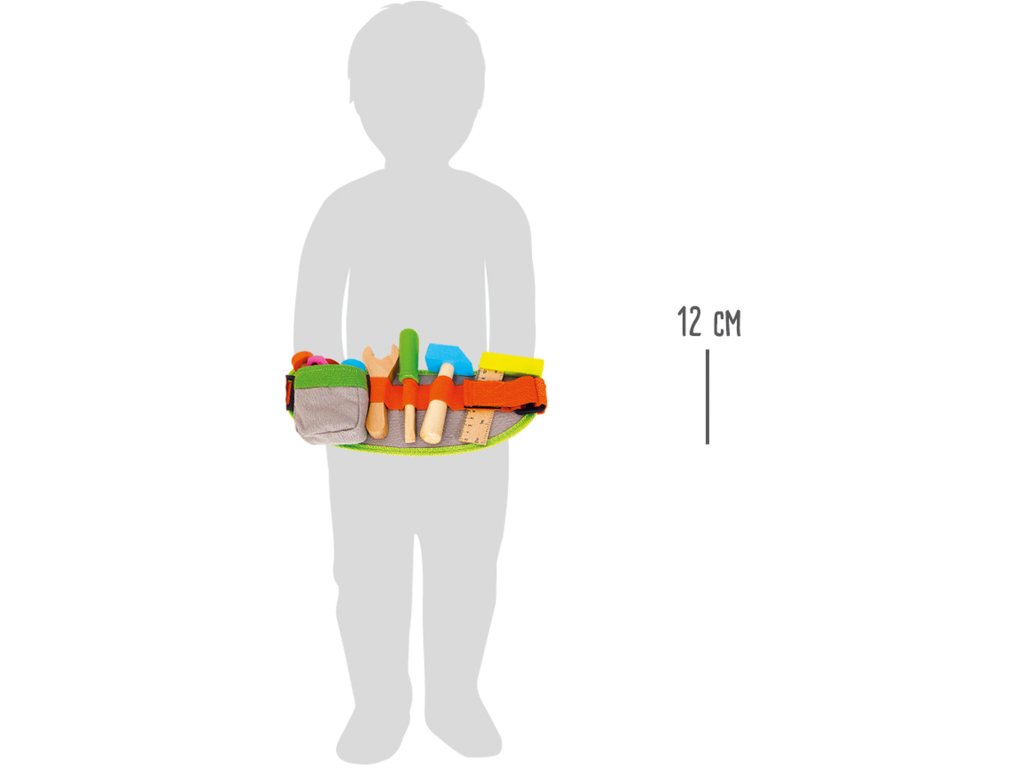Praktický opasek na nářadí s nastavitelnou délkou je skvělým pomocníkem pro malého kutila. Sada obsahuje množství barevného lakovaného dřevěného náčiní – kladivo, šroubovák, klíč, úhelník, šrouby a matice, které jednoduše zaháknete za poutko nebo vložíte do malé kapsičky. Najde se něco k opravě, renovaci? Hlavní vlastnosti: opasek a 12ks dřevěného nářadínastavitelný nylonový opasek (41 – 103 cm) trénuje jemnou motoriku a hraní rolí