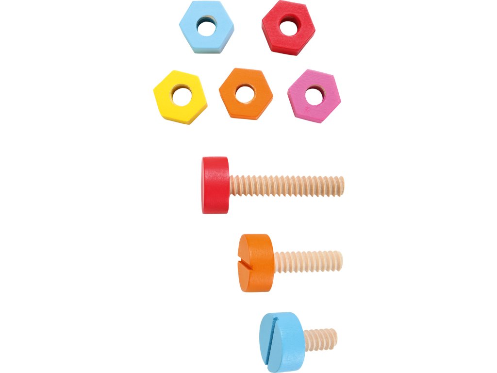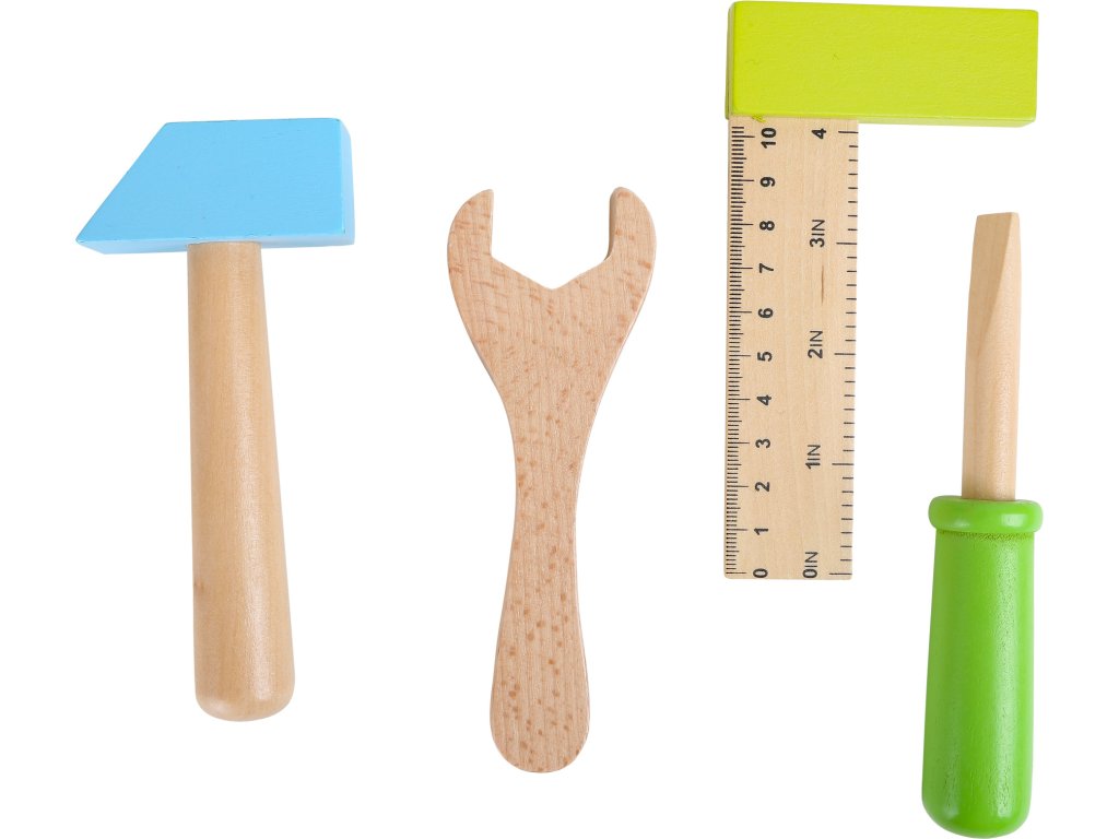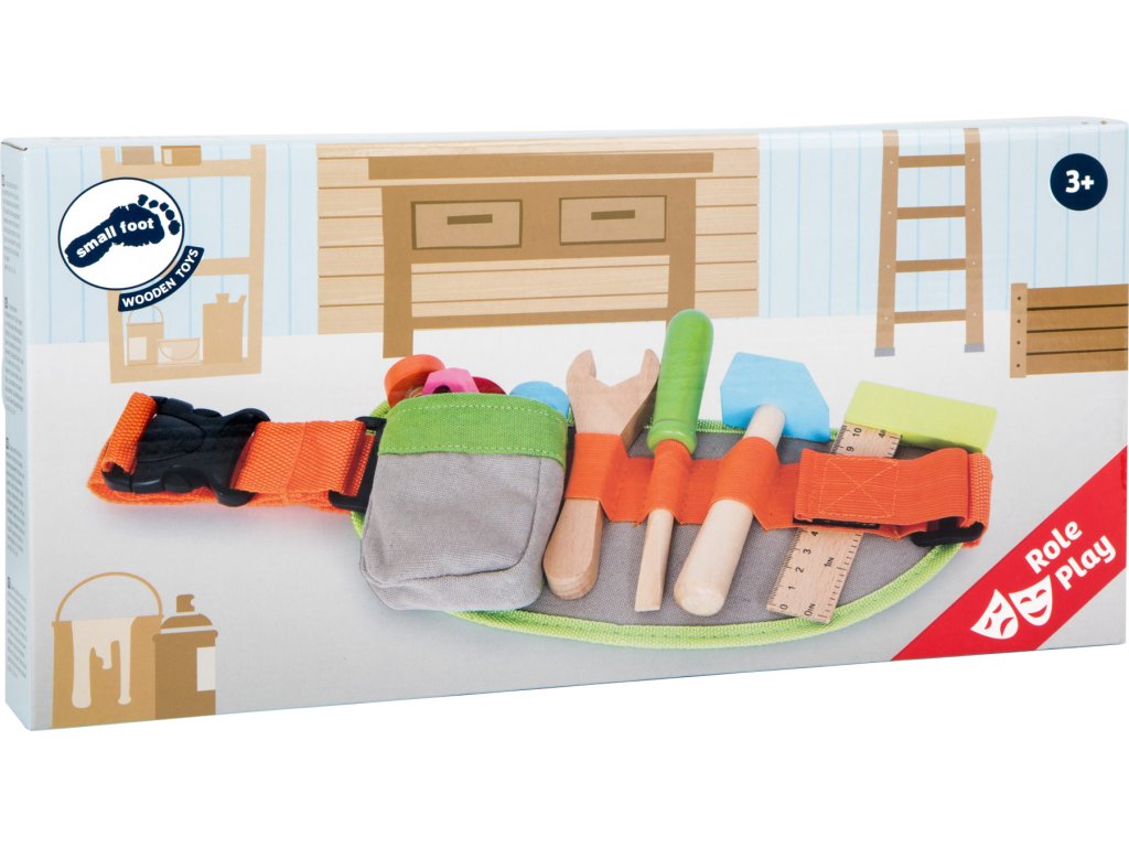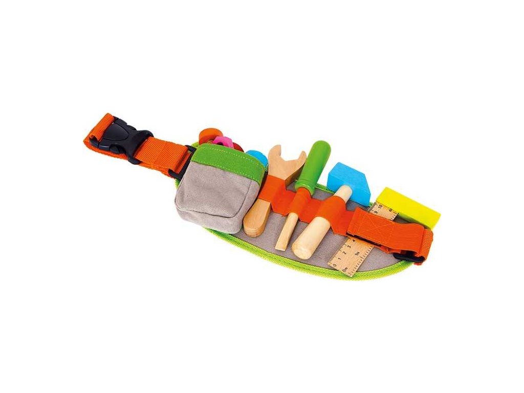 Praktický opasek na nářadí s nastavitelnou délkou je skvělým pomocníkem pro malého kutila. Sada obsahuje množství barevného lakovaného dřevěného náčiní – kladivo, šroubovák, klíč, úhelník, šrouby a matice, které jednoduše zaháknete za poutko nebo vložíte do malé kapsičky. Najde se něco k opravě, renovaci? Hlavní vlastnosti: opasek a 12ks dřevěného nářadínastavitelný nylonový opasek (41 – 103 cm) trénuje jemnou motoriku a hraní rolí