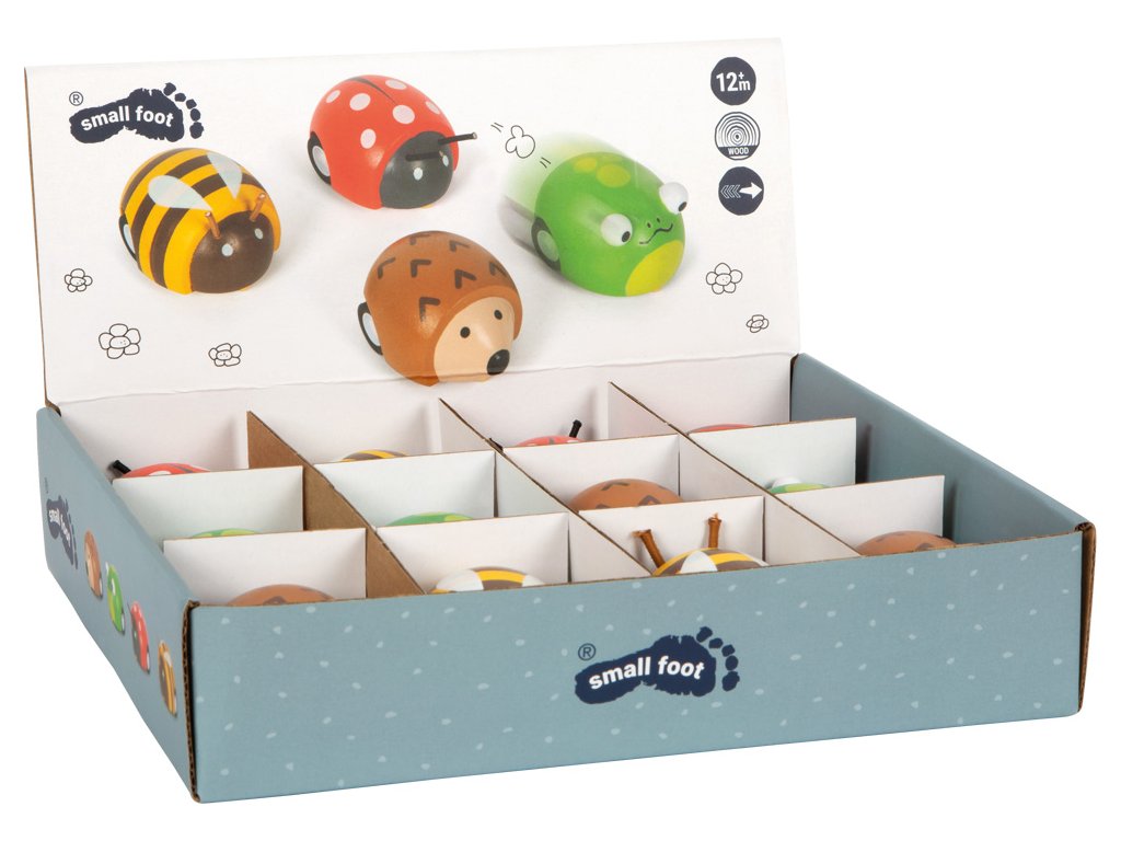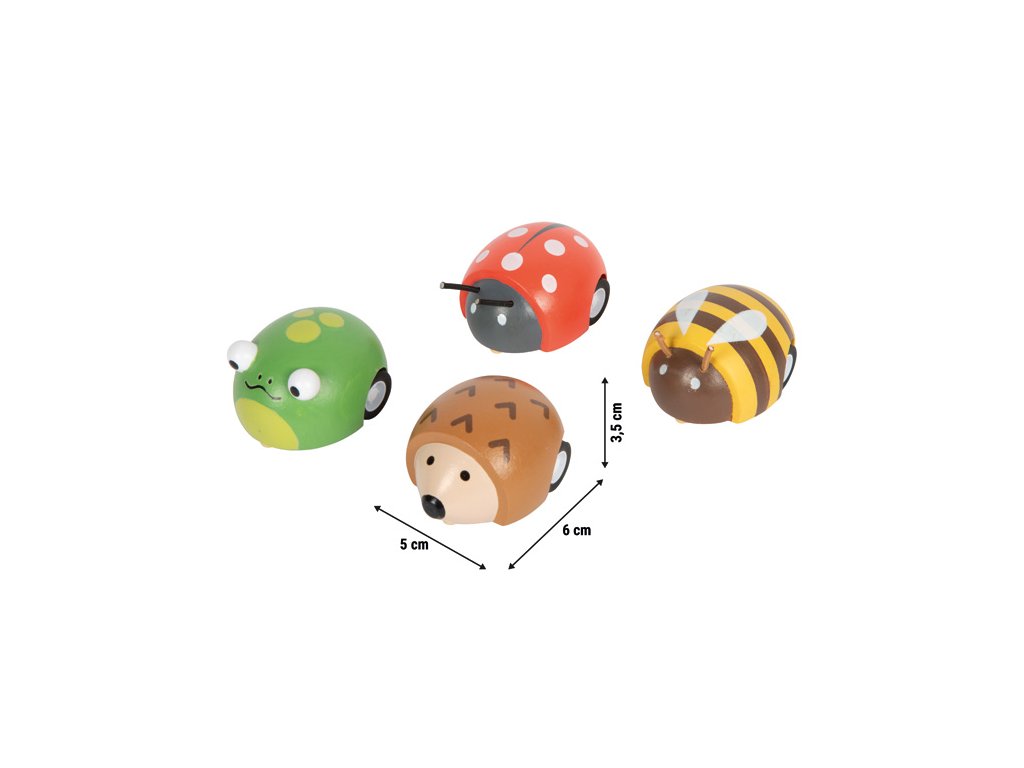 Cena je uvedena za 1 ks zvířátka. Natáhněte a koukejte, jak se toto nezbedné zvířátko pohybuje. Najdete mezi nimi žábu, berušku, včelku a ježka.Každé zvířátko má čtyři kolečka a díky natahovacímu mechanismu se po navinutí samo rozjede. Stačí jen natáhnout a sledovat, jak se zvířátka s radostí prohánějí po podlaze. Pomáhá rozvíjet jemnou motoriku a koordinaci ruka-oko. Splňuje všechny aktuální evropské bezpečností normy. Hlavní vlastnosti: rozvíjí jemné motorické dovednostivyrobeno z vysoce kvalitních materiálů z udržitelných zdrojůvyhovuje současným evropským bezpečnostním normámvýběr ze čtyř motivů - žába, beruška, včelka, ježek