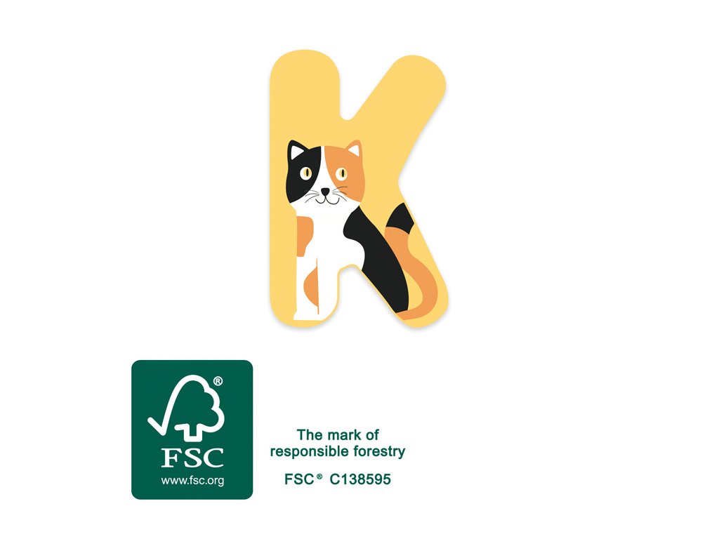 Skládejte věty s trendy písmeny z nové ABC zvířecí řady! Jsou perfektním doplňkem do každého dětského pokojíku. Zaoblené hrany zajišťují příjemný dotyk a veselý, pastelový design dělá z každého písmenka ideální dekoraci. Hlavní vlastnosti: dekorace do dětského pokojekvalitní zpracování ze 100% certifikovaného FSC dřevapastelový design s kočkouzaoblené hrany