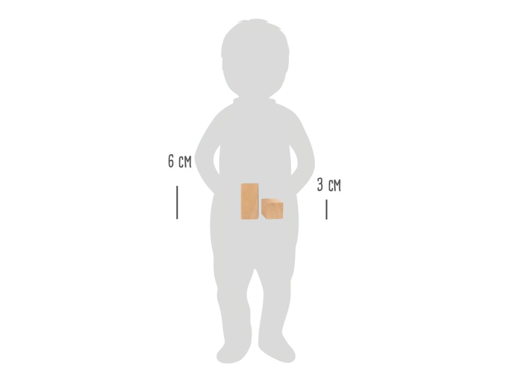 Rozměry: krychle 3x3x3 cm, kvádr 6x3x1,5 cm