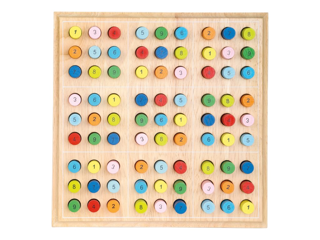 Světoznámá hra s čísly Sudoku. Všechny barevné dřevěné válečky jsou uspořádány v dřevěnému rámu. Hlavní vlastnosti: atraktivní barevné provedenírám zajištuje stabilitupomáhá rozvíjet logické myšlení a soustředěnost dětí