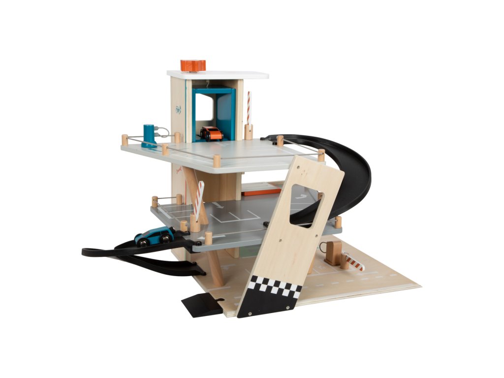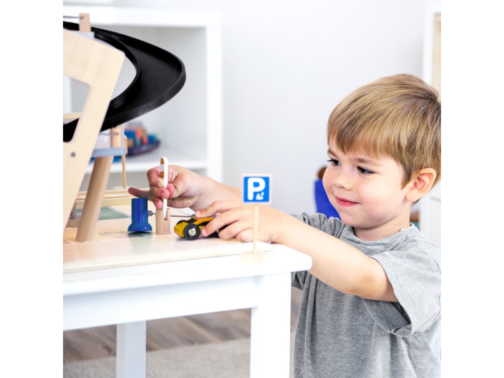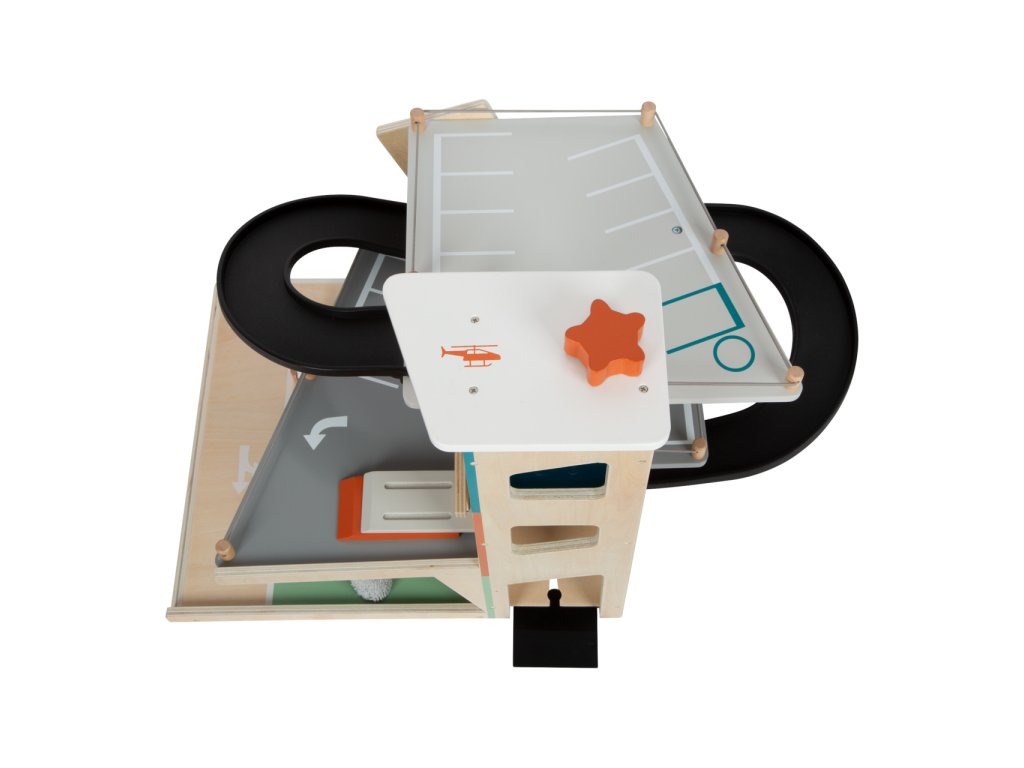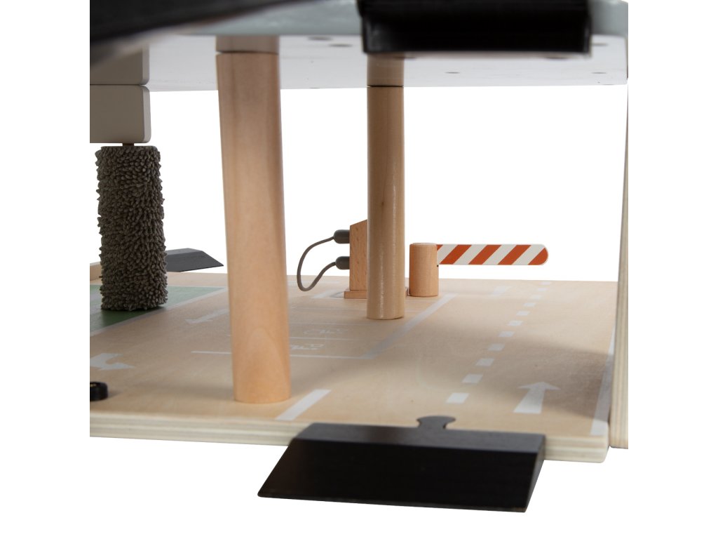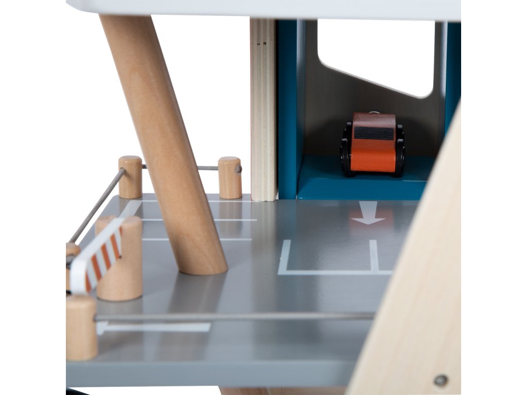 Video je pouze ilustrační, zobrazuje příbuzný produkt. Parkujte, tankujte, myjte nebo opravujte, a to vše s jednou garáží! Nabízí tři bohatě vybavená podlaží propojená atraktivním funkčním výtahem a zábavnými, na sebe plynule navazujícími rampami. Její součástí je dvojice autíček, která mohou při fantastických hrách využít pumpy, nabíjecí stanice, zvedací rampy, nebo myčky s realistickými kartáči. Každá z úrovní je navíc opatřena mechanickou závorou pro dokonale poutavé zážitky. Patra jsou opatřena gumovým hrazením, které dodávají jízdě autíček na dynamice a brání jejich vypadnutí. Garáž je podrobně zdobena mnoha barevnými ikonami a značením, které do her vnese i poučení. Je vyrobena ze silné, pevné a odolné dřevěné překližky s doplňky z masivního dřeva a nezávadného plastu. Výrobek vyžaduje montáž, dodáváno s obrázkovým návodem k sestavení. Hlavní vlastnosti:garáž a 2 autíčka3 podlaží propojená funkčním výtahem a 2 rampamipumpa, nabíjecí stanice, zvedací rampa, myčka a 3 závorykompatibilní s vláčkodráhami a souvisejícím příslušenstvím jiných výrobcůbohatě zdobeno jednoduchými ikonami a značenímpevné a odolné dřevěné provedení