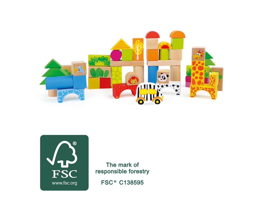 Tyto pevné kostky jsou vyrobeny ze 100% certifikovaného FSC® dřeva a mají potisk zvířátek ze zoo a přírody. Kostky lze jednoduše uchopit, pomáhají tak s rozvojem jemné motoriky dětí. Baleno v boxu s rukojetí. Hlavní vlastnosti: baleno v praktickém boxu s rukojetíobsahuje 50 ks kostekvyrobeno ze 100% FSC dřeva Značka a certifikát FSC® (Forest Stewardship Council) zaručuje, že dřevo, ze kterého byl produkt vyroben, nebylo vytěženo nelegálně a pochází z lesů obhospodařovaných šetrným či přírodě blízkým způsobem, ve kterém jsou dodržovány přísné environmentální a sociální požadavky. Značka FSC® na výrobku znamená, že svým nákupem pomáháte chránit lesy a podporujete šetrné, odpovědné či přírodě blízké hospodaření, díky kterému jsou naše lesy stabilnější, zdravější, mají přirozenou druhovou skladbu a lépe odolávají negativním následkům klimatických změn.