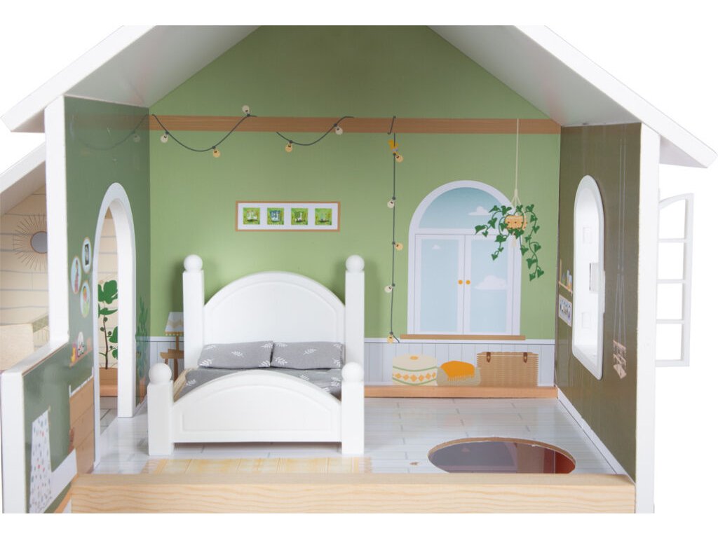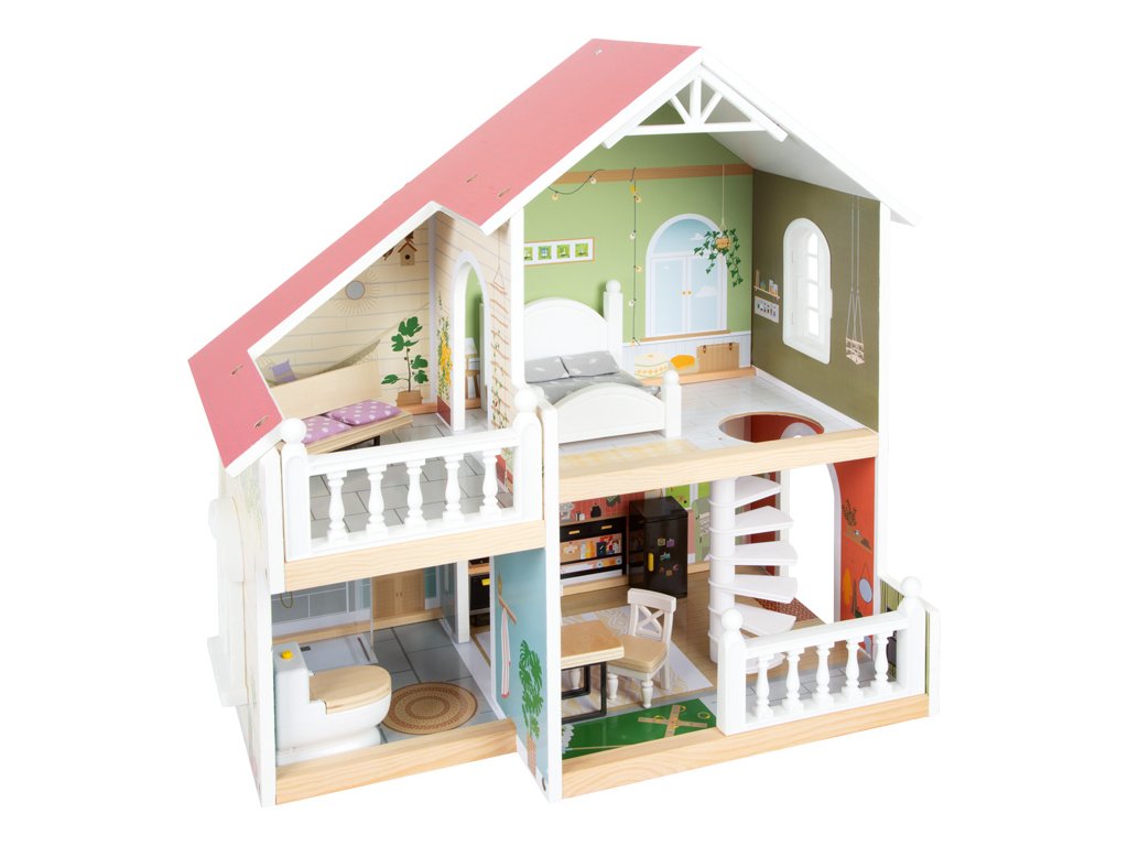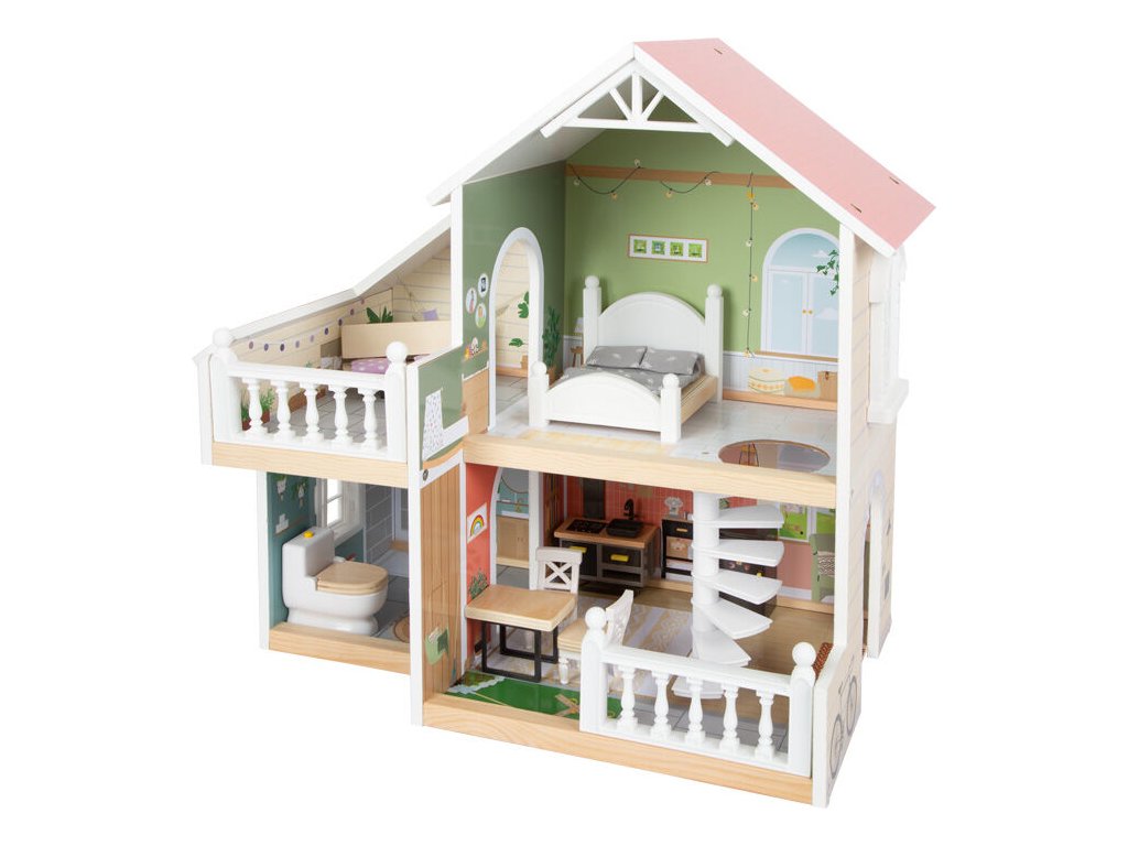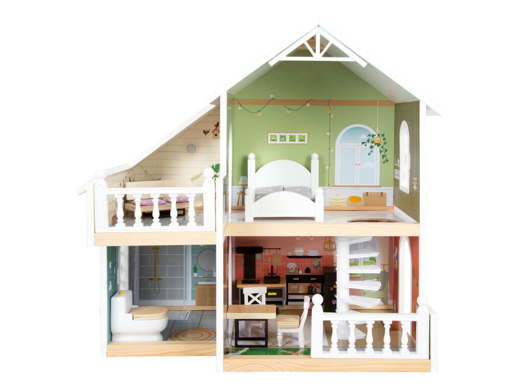 Tento moderní domeček pro panenky má otevřenou přední stranu s krásnými uměleckými detaily a moderním interiérem. Kombinovaná kuchyně s jídelním koutem, ložnicí, koupelnou a také malou terasou s posezením. Perfektní hračka pro představivou hru dětí. Otevřené bydlení s točitým schodištěm, otevíratelnými okny, moderní koupelnou v přízemí, s plexisklem. Najdete zde také 8 ks nábytku, textilní doplňky jako např. povlečení a polštáře. Velká terasa s posezením, otevíratelná toaleta, kuchyňské skříňky a lednice s dveřmi, také šuplíky zajistí realistickou hru. Lavice i postel mají textilní polštáře, postel také peřinu. Tato vila pro panenky se bude hodit do každého obývacího i dětského pokoje a to díky světlé fasádě a moderním barvám. Díky otevřené straně si s domečkem může hrát několik dětí najednou. Vhodné pro panenky do 12 cm. Hlavní vlastnosti: 3 pokoje, terasa, zahrádkafunkční nábytek z plastu s dřevěnými detailysvětlý exteriér a moderní barevné schémakompaktní a stabilní dřevěný domeček s mnoha detaily zevnitř i zvenku2 poschodí spojená točitým schodištěmmoderní design interiéru, otevíratelná okna, stěna sprchy z plexisklakompatibilní s postavičkami LE11804