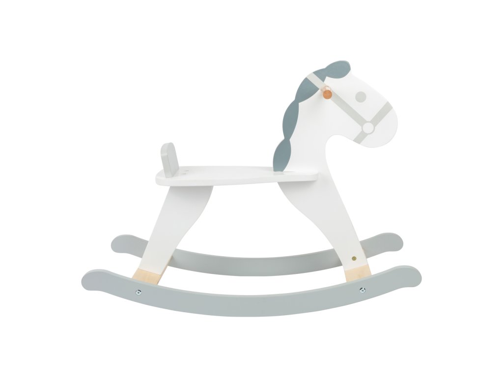 Klasická hračka, která by neměla chybět v žádném dětském pokoji. Přivětivými tvary láká děti k houpavým projižďkám, kterými mohou zesílit a zdokonalovat koordinaci pohybu nebo smysl pro rovnováhu. Pro větší bezpečnost a jisté sezení je sedadlo koníka opatřeno pevnou opěrkou. Díky minimalistickému skandinávskému designu kombinujícímu bílou a šedou barvu vkusně doplní moderní interiér. Konstrukce ze silné překližky a masivního dřeva zajišťuje dlouhotrvající zábavu. Výrobek vyžaduje montáž, dodáváno s obrázkovým návodem k sestavení. Hlavní vlastnosti: moderní designsedadlo s opěrkouodolné dřevěné provedení