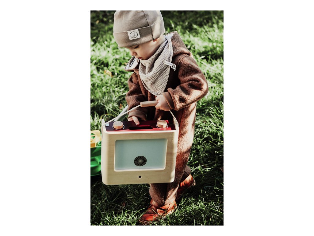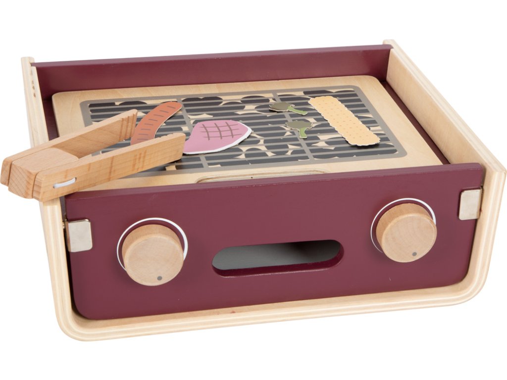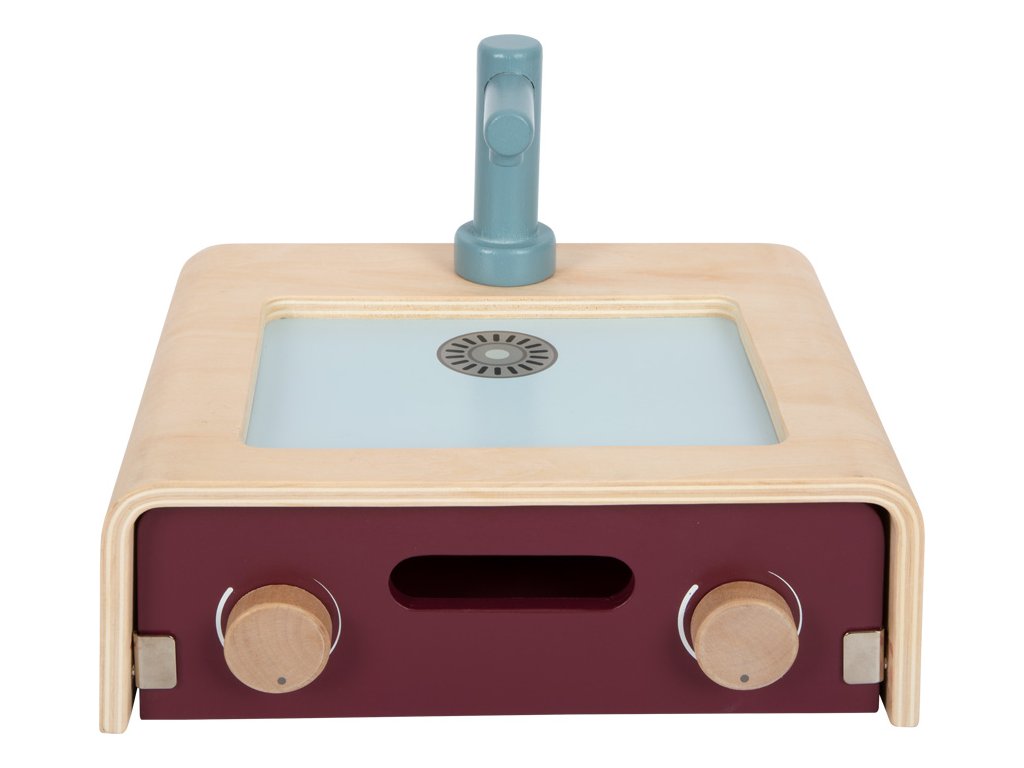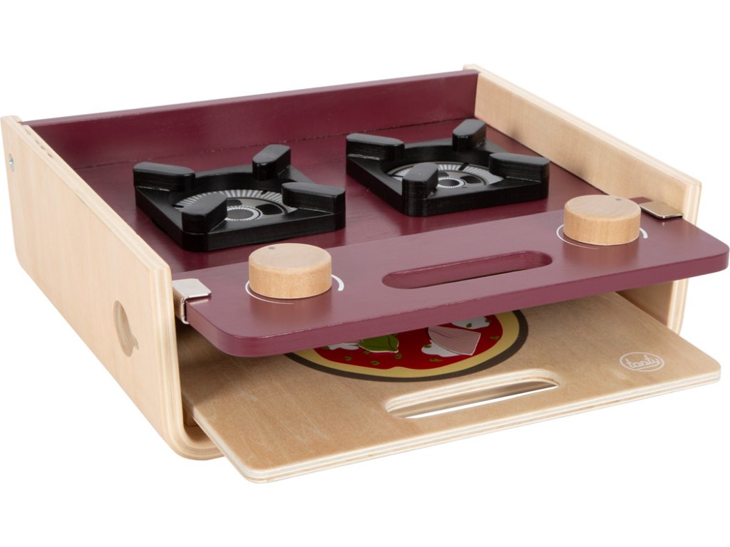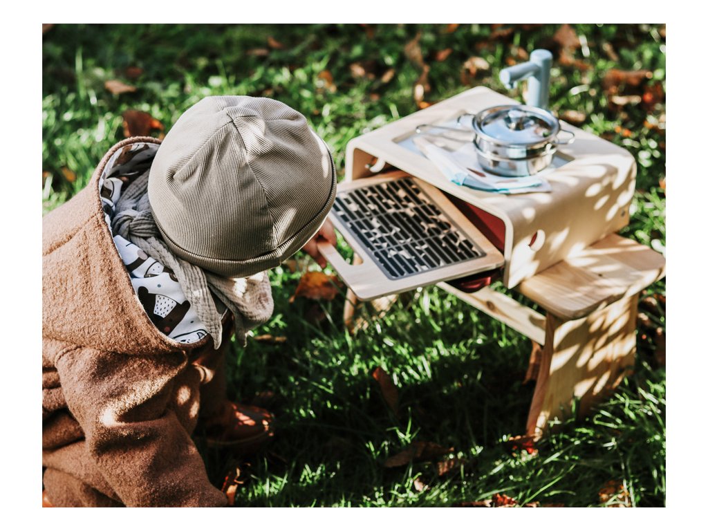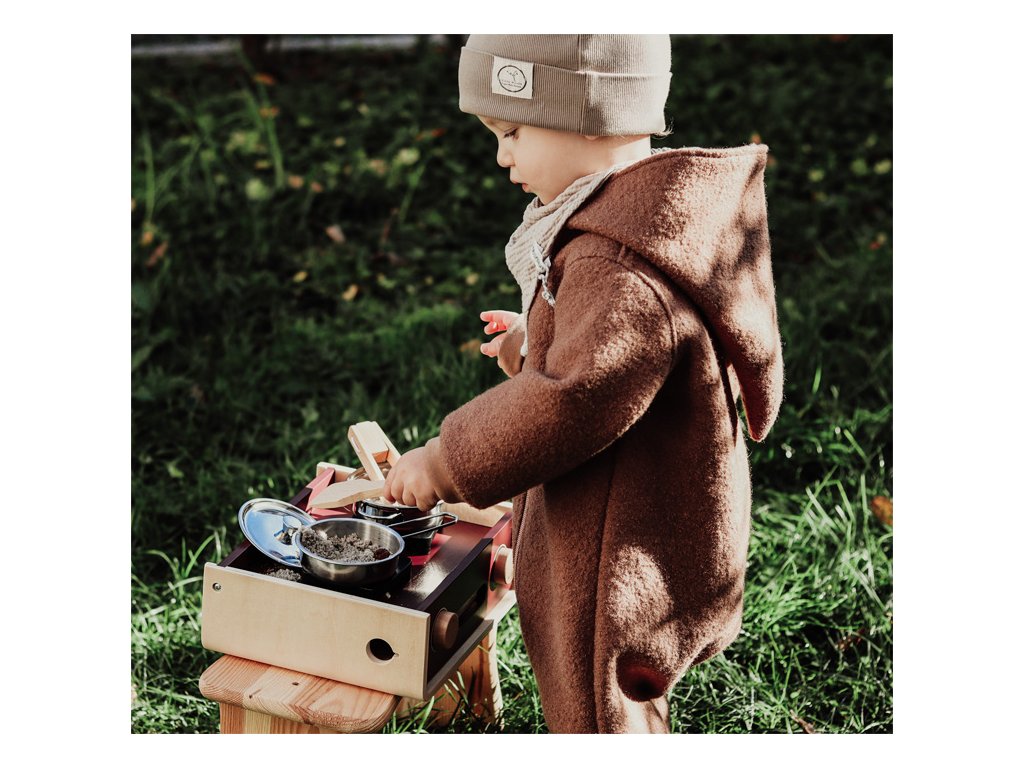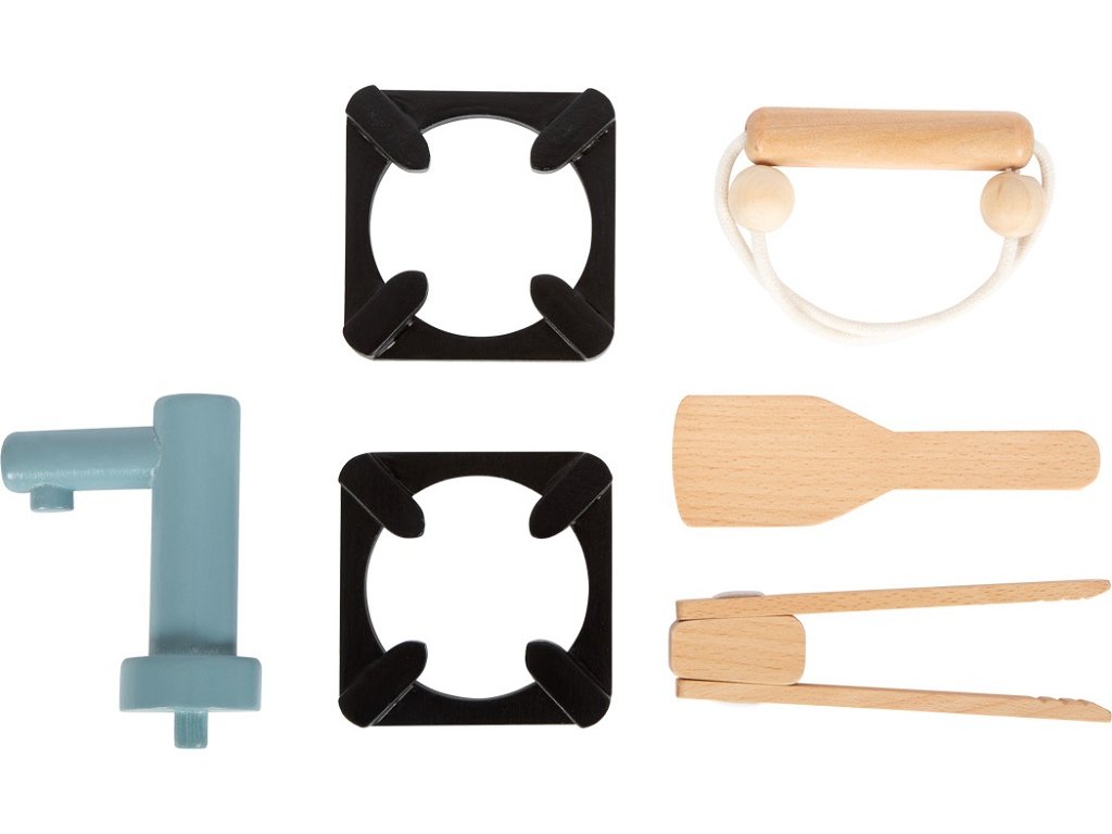 Tento mobilní sporák působí skvělým dojmem pro svou multifunkčnost. Kombinuje stolní kuchyni, kempingový vařič, gril, umyvadlo a troubu. Nabízí prostor pro nápadité hry a rozmanité herní scénáře. Moderní barvy ve spojení s přírodním ohýbaným dřevem dělají z této kuchyňky absolutní poutač. Obsahuje praktickou rukojeť (lano) pro přenášení. 2 kartonové listy obsahují potraviny/ingredience potřebné pro vaření. Součástí je také kuchyňská utěrka, pánev, hrnec s poklicí, grilovací kleště a dřevěná obracečka a samozřejmě obsahuje také oboustrannou troubu na pečení (vrch a spodek slouží buď jako vařič nebo umyvadlo). Hlavní vlastnosti: rozvíjí představivost a kreativitupodporuje komunikaci a sociální schopnosti