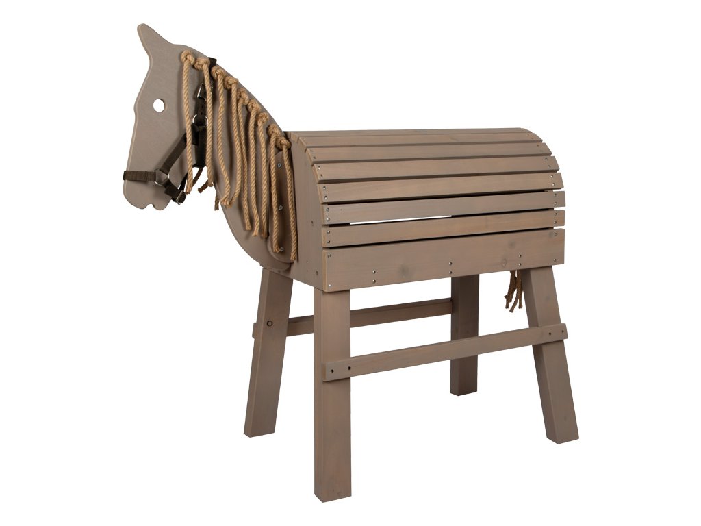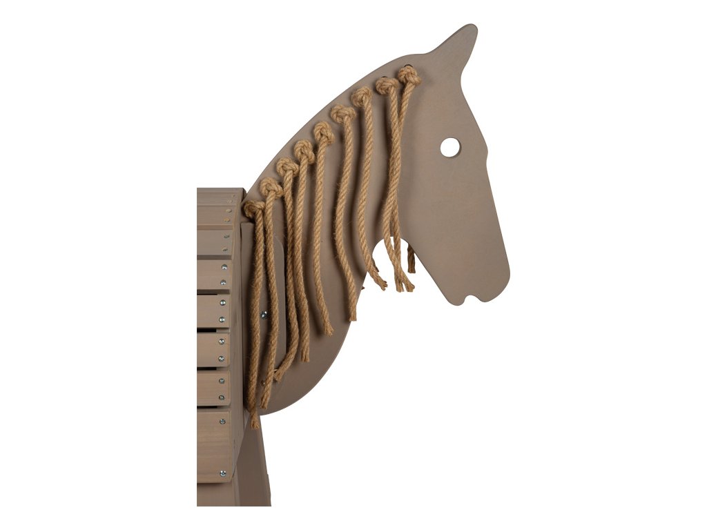 To je ale krásný koník! Děti si často přejí vlastního koně a s tímto dřevěným koníkem jim toto přání můžete splnit. Užijí si spoustu aktivní zábavy uvnitř i venku na zahradě. Koník v šedé barvě je ošetřen barvou odolnou proti povětrnostním vlivům. Hříva a ohon jsou vyrobeny z přírodního sisalu a lákají k zaplétání. Hřbet koně je navržen tak, aby se na něj vešlo skutečné sedlo a sedák. Praktický schůdek umožňuje i těm nejmenším dětem snadno na koně nasednout a rozkročené nohy poskytují bezpečnost a stabilitu. V zadní části se nachází velký úložný prostor s dvířky, který nabízí spoustu místa pro uložení uzdy a dalšího vybavení. Děti se naučí základy o koních, ponících a jízdě na nich. Se sisalovou hřívou a ohonem si děti mohou procvičit jemnou motoriku. Hlavní vlastnosti: aktivní zábava uvnitř i venkuhříva a ocas ze sisalustabilní a bezpečnévhodné pro sedák a skutečné sedlo.prvotřídní materiál odolný povětrnostním vlivůms úložným prostoremintegrovaný schůdek pro snadné nasedánívčetně uzdy