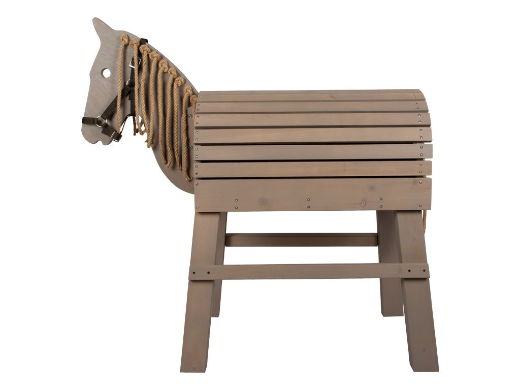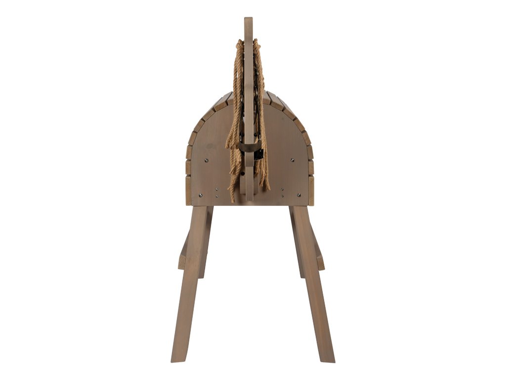 To je ale krásný koník! Děti si často přejí vlastního koně a s tímto dřevěným koníkem jim toto přání můžete splnit. Užijí si spoustu aktivní zábavy uvnitř i venku na zahradě. Koník v šedé barvě je ošetřen barvou odolnou proti povětrnostním vlivům. Hříva a ohon jsou vyrobeny z přírodního sisalu a lákají k zaplétání. Hřbet koně je navržen tak, aby se na něj vešlo skutečné sedlo a sedák. Praktický schůdek umožňuje i těm nejmenším dětem snadno na koně nasednout a rozkročené nohy poskytují bezpečnost a stabilitu. V zadní části se nachází velký úložný prostor s dvířky, který nabízí spoustu místa pro uložení uzdy a dalšího vybavení. Děti se naučí základy o koních, ponících a jízdě na nich. Se sisalovou hřívou a ohonem si děti mohou procvičit jemnou motoriku. Hlavní vlastnosti: aktivní zábava uvnitř i venkuhříva a ocas ze sisalustabilní a bezpečnévhodné pro sedák a skutečné sedlo.prvotřídní materiál odolný povětrnostním vlivůms úložným prostoremintegrovaný schůdek pro snadné nasedánívčetně uzdy