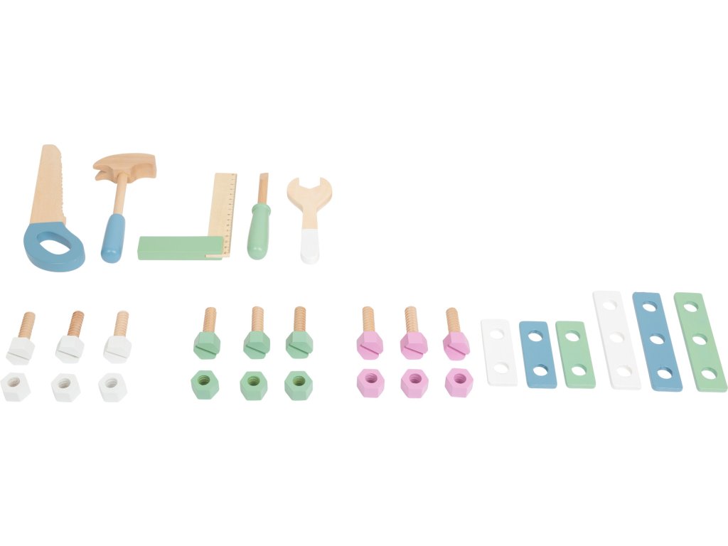 Jemné pastelové barvy, pěkné tvary, přírodní materiál – to je severský design! S tímto dřevěným ponkem se mohou děti při hře naučit manuální zručnosti. Obsahuje 24 doplňků – 9 šroubů, 9 matek, 6 plátů s dírami pro trénování jemné motoriky. Děti mohou pomoci při složení ponku a dokázat tak, že mají talent pro manuální práci. Ponk ve skandinávském designu se bude hodit do každého domova. Je to skvělá hračka pro kluky i holky. Hlavní vlastnosti: inspiruje ke kreativní a představivé hřeobsahuje 24 doplňkůpo rozbalení nutno složit