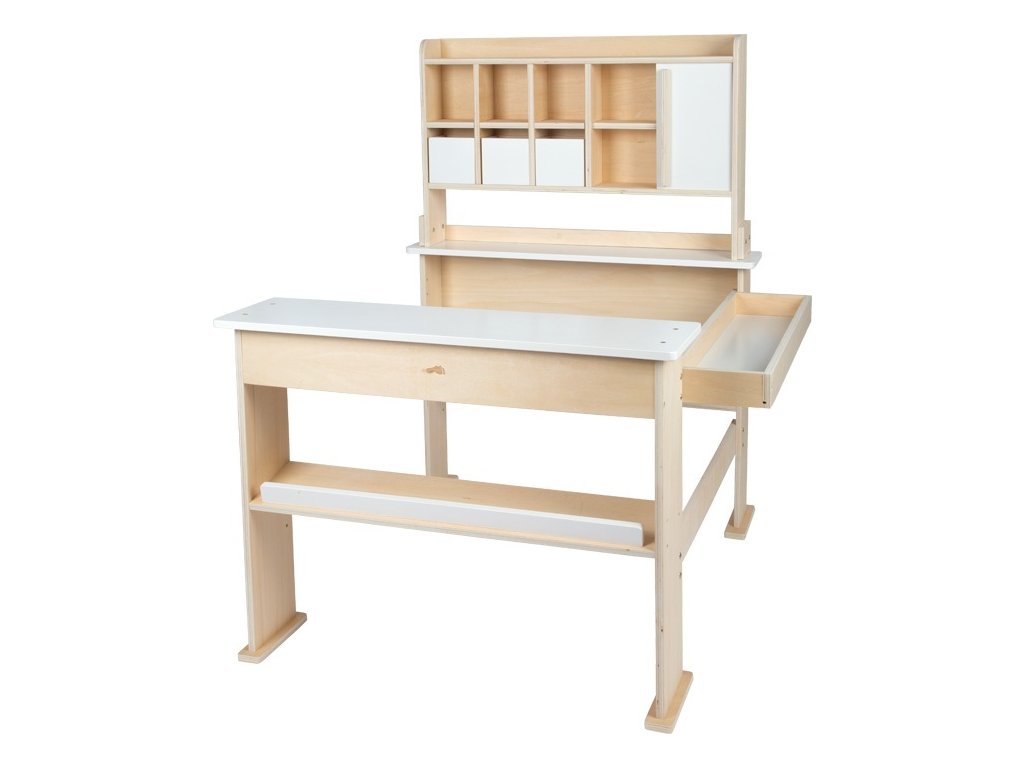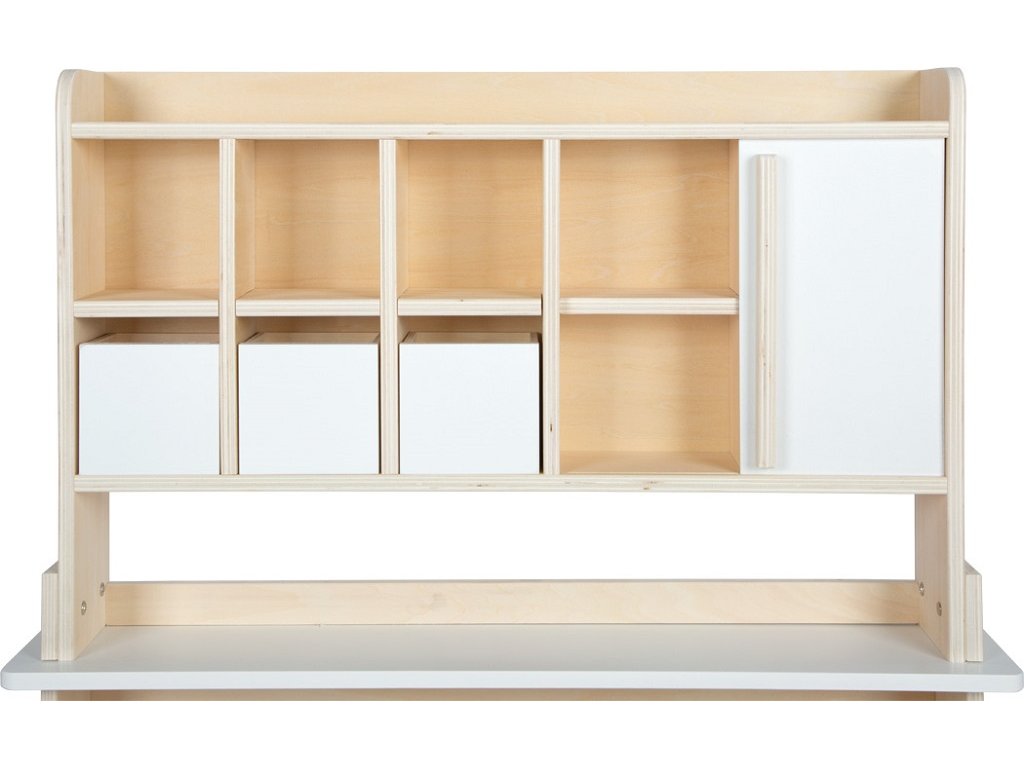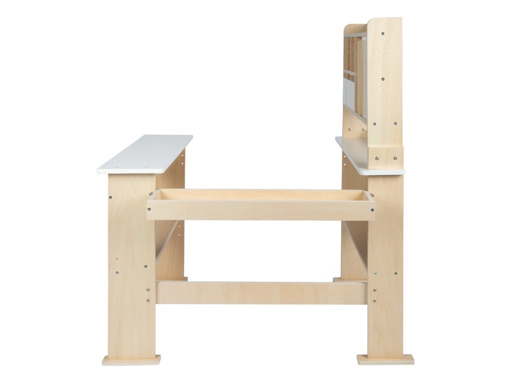 Perfektní prodejní stánek pro malé prodavače a prodavačky! Tento prodejní stánek z přírodního dřeva v kombinaci s bílou barvou zaujme nejen vzhledem, ale i propracovanými detaily. Nabízí velkorysý prostor pro hraní, praktické úložné prvky a realistické funkce, které děti vtáhnou do světa nakupování. Tři zásuvky na drobnosti, boční přihrádka a posuvné dveře v zadním regálu zajišťují přehled a dostatek místa pro dokoupitelné příslušenství. Robustní konstrukce zajišťuje stabilitu i při delším hraní. Stánek podporuje rozvoj komunikačních a početních dovedností, učí základní pravidla sociální interakce a podněcuje kreativitu i fantazii. Výrobek je dodáván v rozloženém stavu s přehledným obrázkovým návodem k sestavení. Hlavní vlastnosti: robustní a odolné dřevěné provedenínadčasový design z přírodního dřeva s bílými prvkyprostorný pult a bohatý úložný prostor3 zásuvky, boční přihrádka a zadní regál s posuvnými dvířkyrozvíjí komunikační a sociální dovednosti dětíideální pro hru na role a hravé učenídodáváno s obrázkovým návodem k montáži