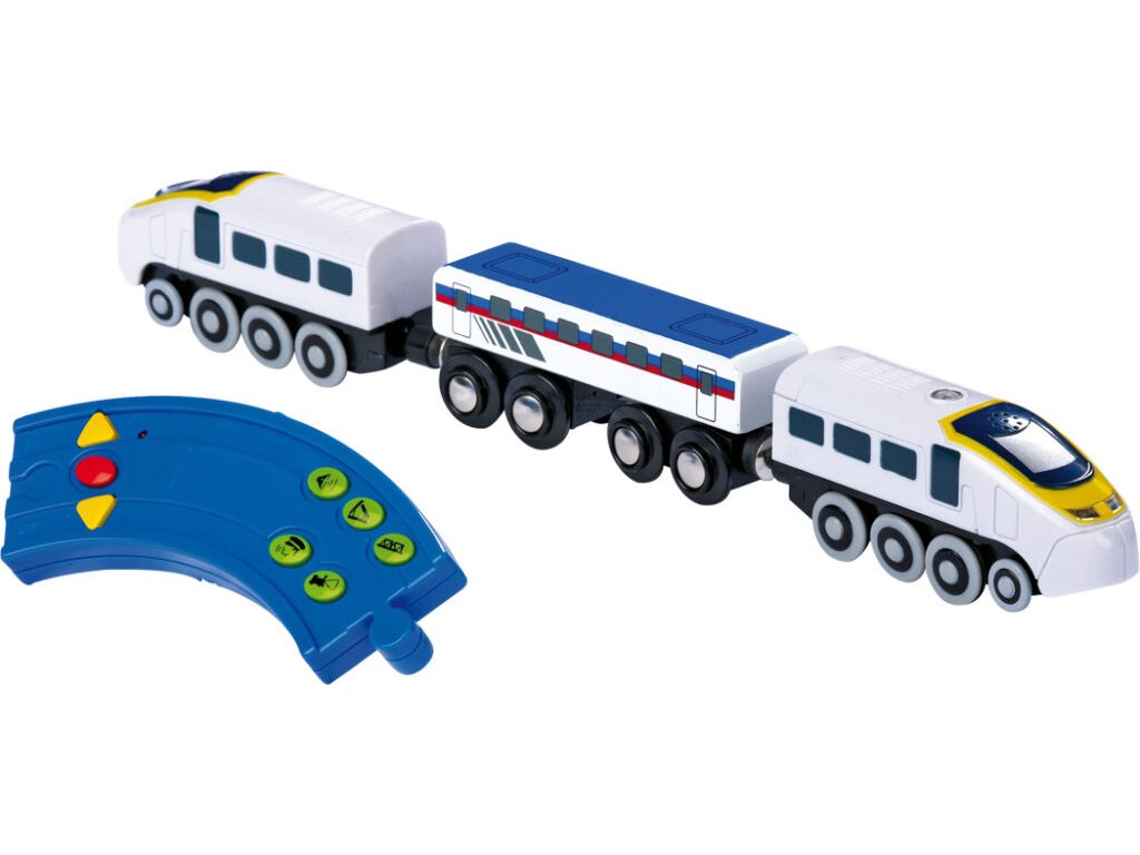 Moderní lokomotiva z plastu a dřevěného vagónku s dálkovým ovládáním, má celkem 8 funkcí. Lokomotivu můžete ovládat do dvou směrů, po stisknutí tlačítka vydává zvuky(hlášení z reproduktoru, signál brány, píšťalka průvodčího, zvuky jízdy, přejezd přes most), dokonce můžete zapnout i světla. Skvělý doplněk k oblíbené dřevěné vláčkodráze. Vláček je kompatibilní se všemi běžnými značkami vláčkodráh jako je Bigjigs, Maxim, Brio, Woody, Bino, Tomáš, Tesco, Ikea a další. Baterie mašinky 3xAAA a 2xAA ovladače nejsou součástí balení. Hlavní vlastnosti: kompatibilní se všemi běžnými značkami vláčkodráhhračka se zvukem a světlem8 funkcí
