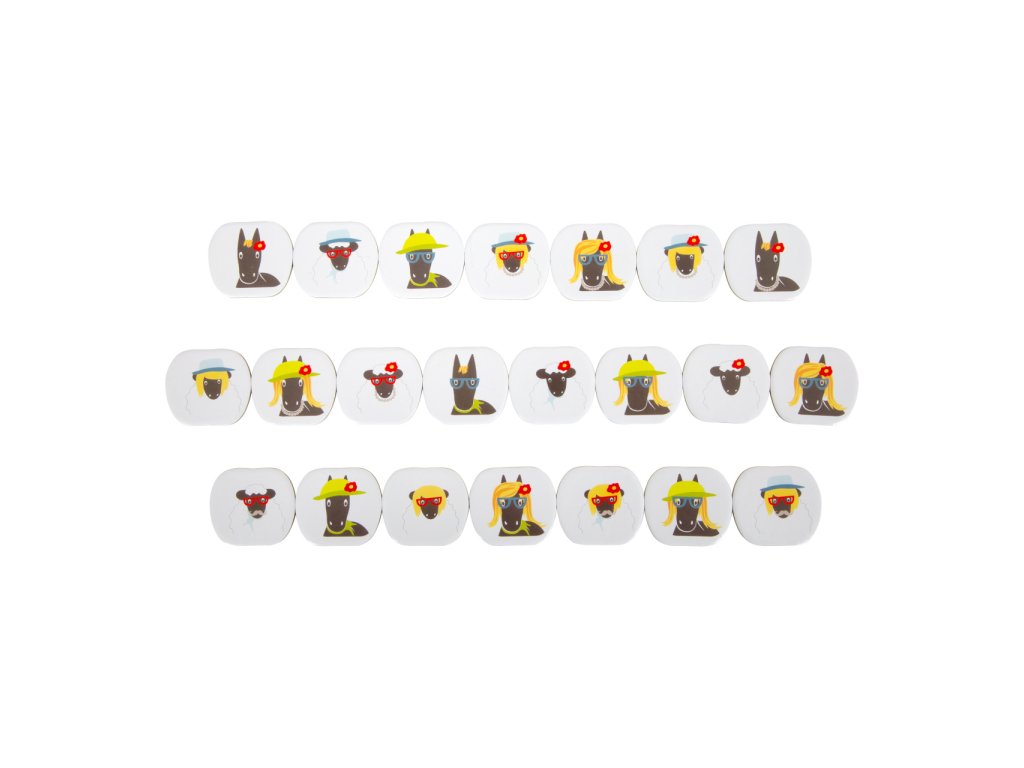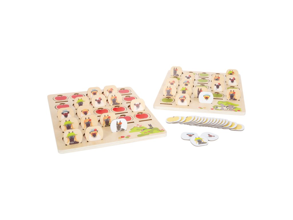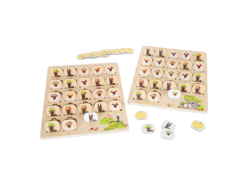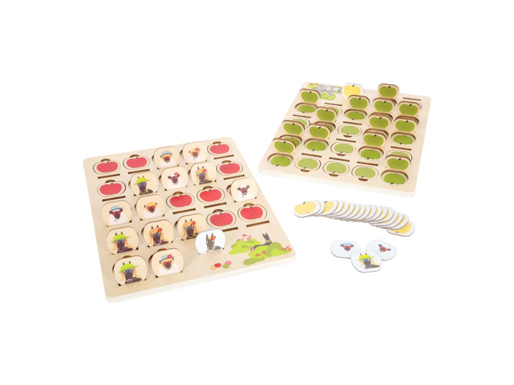 Kdo sebral jablka? S touto hrou může hádat celá rodina, budou vám stačit dobré pozorovací schopnosti, abyste co nejrychleji odhalili postavičku „4 přátelé“. Klasická hra je vyrobena z robustního dřeva a má design vhodný pro děti. V balení najdete 2 hrací desky, na které naskládáte ilustrované dílky, 22 kartonových kartiček s obrázky postaviček. 2 v 1, lze hrát také jako pexeso. Uloženo v kvalitním boxu.Kráva Olga a kohout Heinz se snaží zjistit, kdo ukradl jablka z louky, podezřelí se ale ukryli velmi dobře! Hra je vhodná pro úvod do světa podobností a rozdílností. Společenská hra má velmi jednoduchá pravidla a je vhodná pro lidi všeho věku. Pomáhá s rozvojem kombinačních dovedností a trénuje soustředěnost. Hlavní vlastnosti: populární hra s jednoduchými pravidly z robustního dřevadvě hrací desky, 22 kartonových kartiček2 v 1, lze také použít jako pexesokvalitní úložný boxpodporuje rozvoj kombinačních schopností a trénuje soustředěnostkompatibilní s ostatními hrami „4 přátelé“