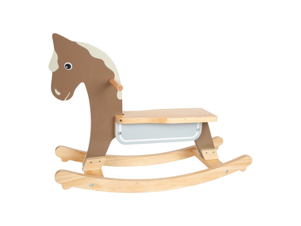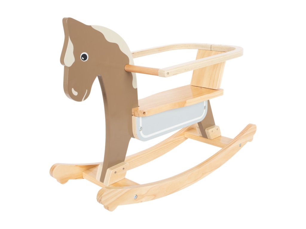 Vzhůru do sedel a cvalem kupředu! Houpací koník může dětem pomoci zesílit, rozvíjet koordinaci pohybů a rovnováhu. Pro zajištění maximální bezpečnosti je vybaven dorazy a opěradlem s hrazením, které lze snadno odejmout, jakmile dítě povyroste. Hračka je vyrobena z kombinace odolné překližky a masivního dřeva. Dává přitom vyniknout přírodním odstínům, a zútulní tak každý dětský pokojíček. Výrobek vyžaduje montáž, dodáváno s detailním návodem k sestavení. Hlavní vlastnosti:opěradlo s hrazenímodolné dřevěné provedenívýška sedla 26 cmnosnost max. 50 kg
