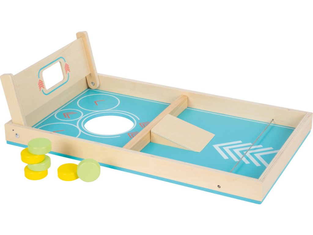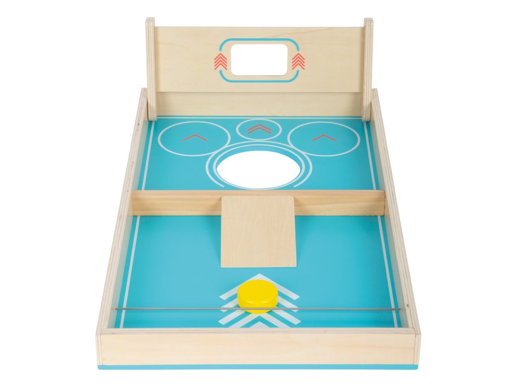 Jakou máte mušku? Tato multifunkční dřevěná hra vám přinese zábavu 2 v 1. Na jedné straně si zahrajete cornhole, na straně druhé stolní hokej. Cornhole je americká hra, při které se snažíte bavlněný pytlík prohodit otvorem na desce. Ve stolním hokeji zase vystřelujete puk pomocí gumičky a snažíte se získat co nejvíce bodů. Dvě zábavné venkovní hry si můžete zahrát v párech nebo týmech všeho věku. Kdo ukáže svou zručnost a mušku a získá nejvíce bodů? Díky použití šipek namísto čísel mohou skóre počítat i děti, které ještě čísla nepoznají. Perfektní hra pro malé děti i dospělé, které zábavnou formou trénuje soustředěnost a zručnost, a lze ji hrát venku i doma.Hra přináší do každodenního života hráčů radost, soutěživost a možnost sdílet zábavné okamžiky s přáteli a rodinou. Hlavní vlastnosti: 2 v 1pro vnitřní i venkovní použitítrénuje zručnost a soustředěnost