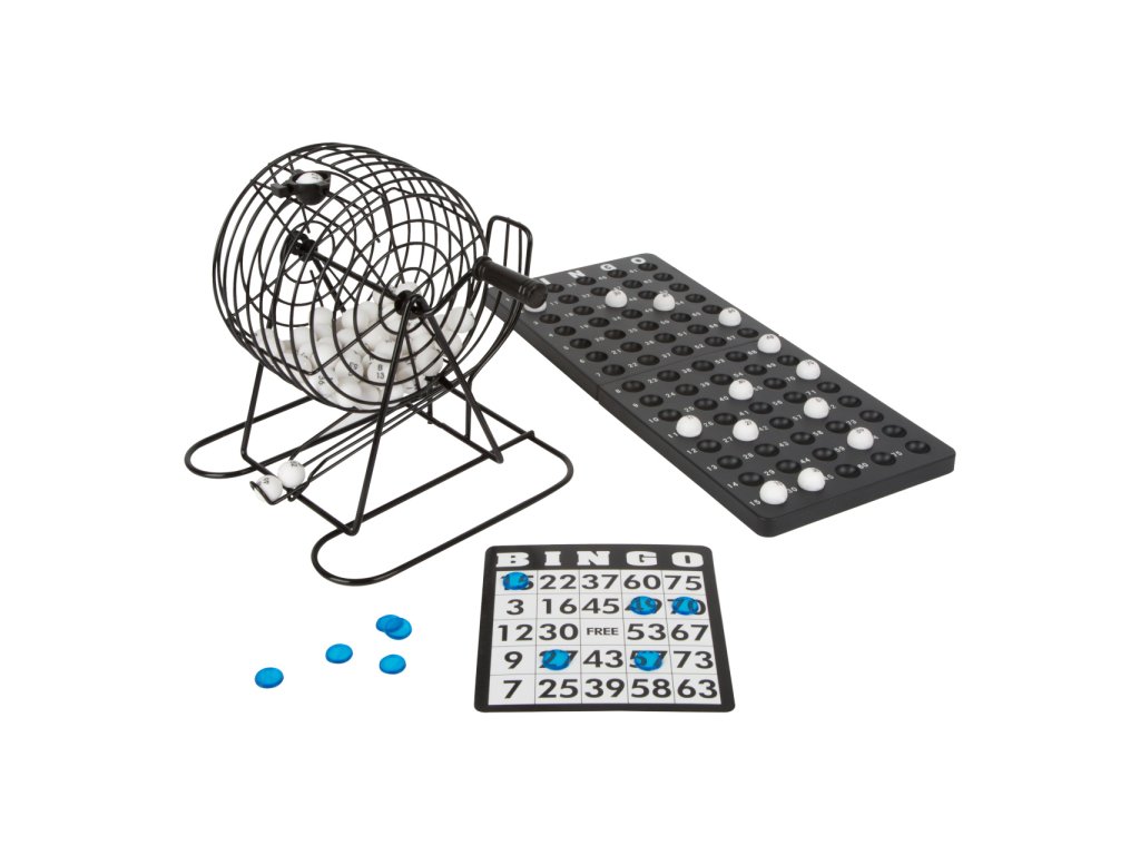 Klasická soutěžní hra "Bingo" s barevnými žetony, bílými kuličkami, plastovým zásobníkem a losovacím kovovým bubnem. Každý hráč si může vybrat svou vlastní barvu žetonů. Klika otáčí bubnem a jakmile se změní směr, první očíslovaná kulička spadne do přihrádky. Komu se podaří umístit správnou kombinaci jako první? Své štěstí si mohou zkusit jak malí, tak velcí hráči. Hlavní vlastnosti: obsahuje: barevné žetony, bílé kuličky, plastový zásobníklosovací buben je kovový děti se učí poznávat čísla