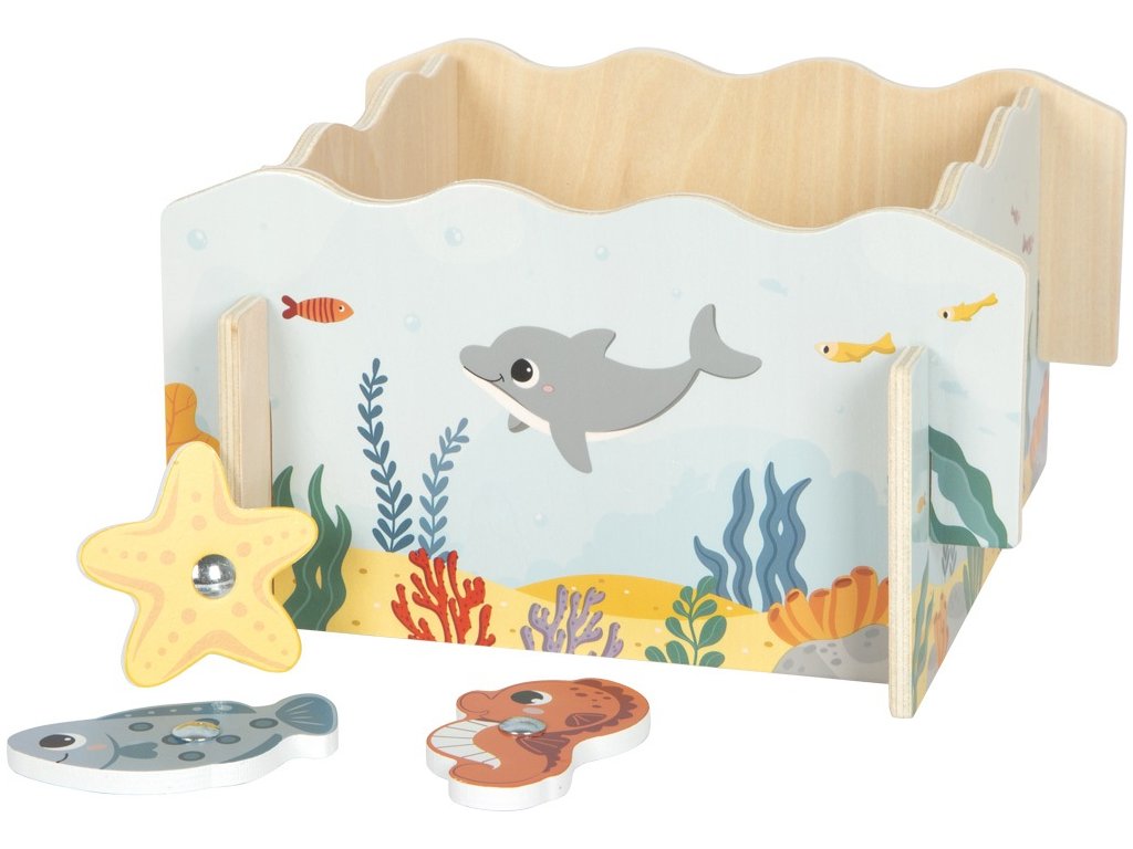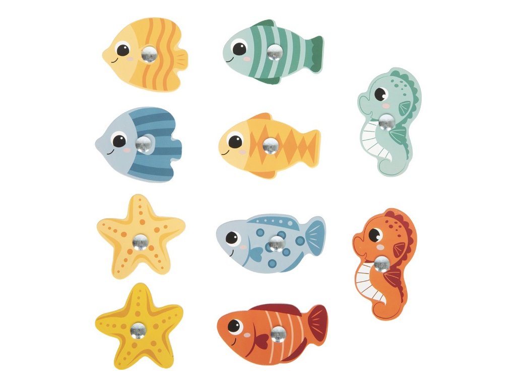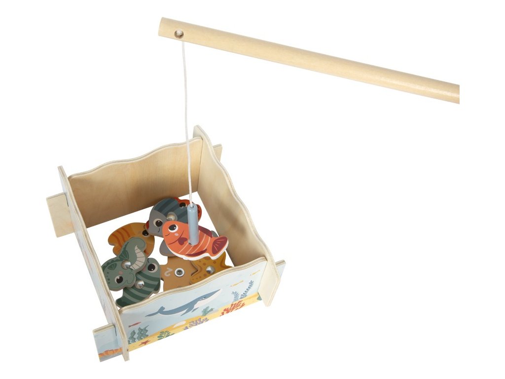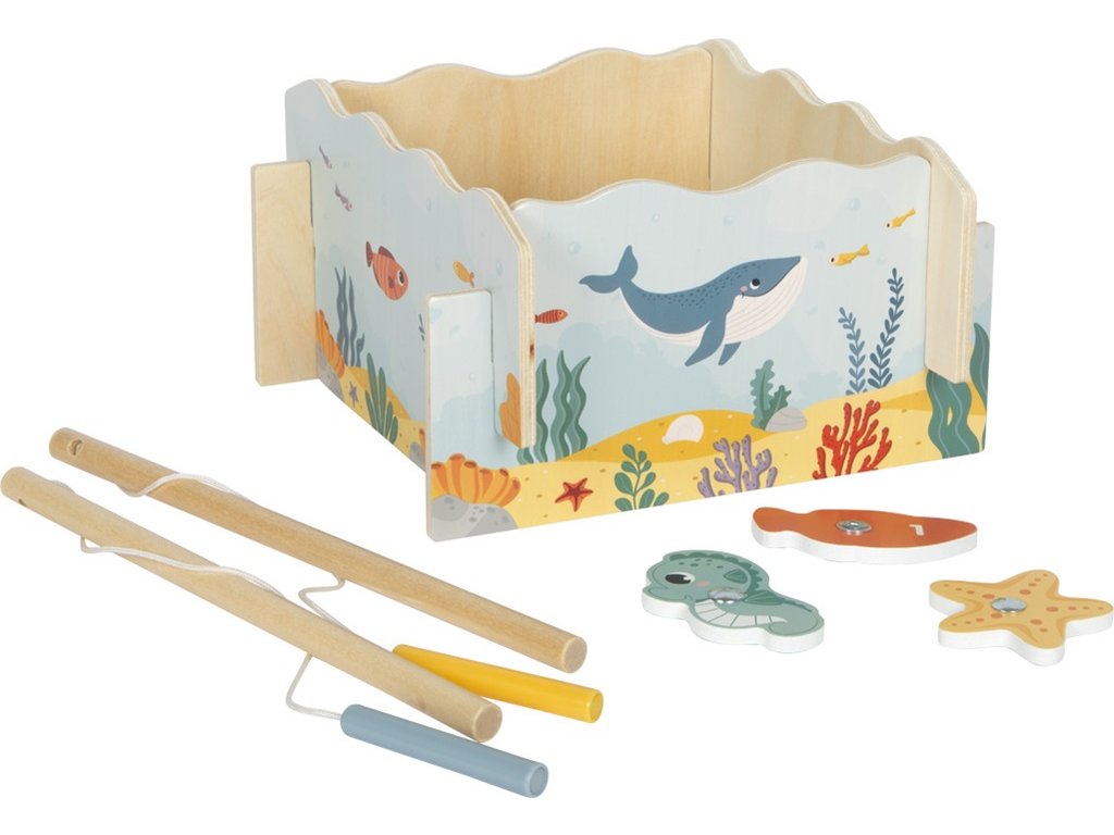 A dnes půjdeme na ryby! Tato hra nejen pro rybáře s motivem moře a mořských živočichů bude zábavná pro celou rodinu. Dva robustní magnetické rybářské pruty jsou vhodné přesně pro malé dětské ručičky. Děti si s jejich pomocí uloví různobarevné mořské tvory, jako jsou mořští koníci, hvězdice a ryby. Každý úlovek je označen počtem bodů, takže při vyhodnocování rybářských úspěchů si děti také procvičí hravou formou počítání. Trojrozměrné herní pole se skládá ze čtyř dřevěných bočních stěn, které lze snadno spojit dohromady, ale také rozložit a vzít s sebou např. na cesty. Zatímco se malí rybáři budou radovat ze hry a prožívat své rybářské úspěchy, rozvíjejí své motorické dovednosti a obratnost. Po spojení bočních stěn a vytvoření herního pole na pevné podložce se dovnitř položí všichni mořští živočichové bodovým označením dolů. Hráči se střídají a loví pomocí magnetických prutů mořské živočichy. Na konci hry se sečtou získané body. Vyhrává ten, kdo jich má nejvíce. Hlavní vlastnosti: pro 1 až 2 hráčebalení obsahuje 2 magnetické dřevěné pruty, 10 mořských živočichů, herní pole (4 zásuvné boční stěny)jednoduché složení a rozloženípodporuje koncentraci a trpělivostrozvíjí motorické dovednosti a obratnost Dokumentace: návod ke hře (EN, DE, FR, IT)