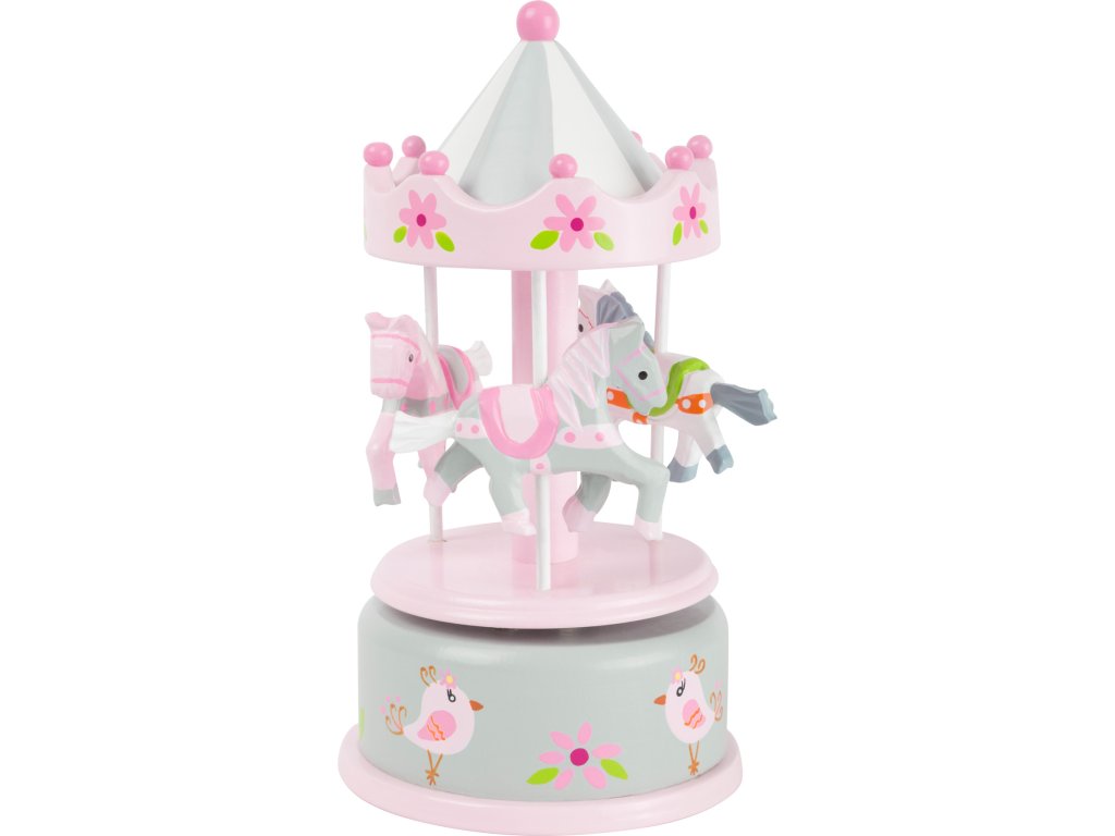 small foot Hrací skříňka koníčkový kolotoč růžový