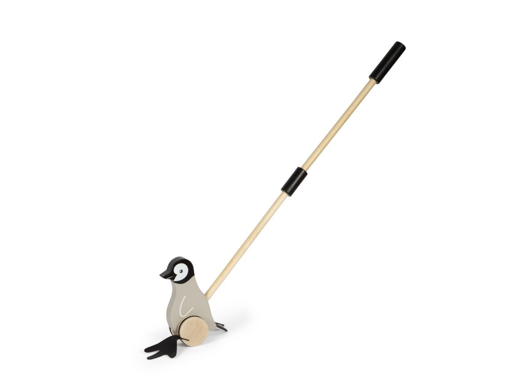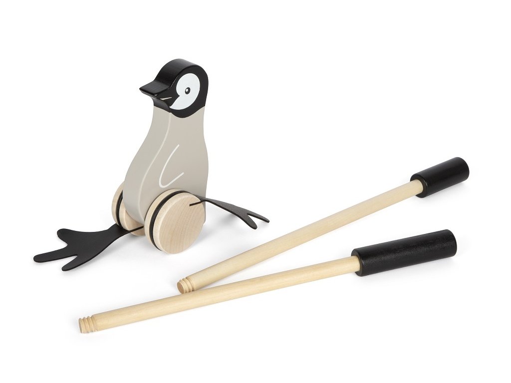 Představujeme Vám dřevěného tahacího tučňáka na tyči – malého pomocníka pro první krůčky Vašeho dítěte! Tato robustní dřevěná hračka s kolébavýma nožičkama je navržena tak, aby rozzářila oči Vašeho malého průzkumníka a vzbudila v něm touhu objevovat svět kolem sebe. Veselé klapavé a kolébavé zvuky jezdíka přinesou radost z pohybu a hry. Dřevěná tyč, která je výškově nastavitelná, poskytuje oporu při prvních nejistých krůčcích. Rovnováha a pohyb jsou dovednosti, které dětem tento jezdík pomůže rozvinout. Děti mohou tučnáka strkat nebo tahat doma i venku.  Sledujte, jak se Vaše dítě učí a směje s každým krokem, který udělá s tímto dřevěným kamarádem. Hlavní vlastnosti: zábavnou formou podporuje pohybovou aktivitu dětírozvíjí motorický vývoj a koordinaci pohybuvýškově nastavitelná tyč jezdíkavhodné od 1,5 rokupogumovaná a tichá kolečkacertifikát FSC   Značka a certifikát FSC® (Forest Stewardship Council) zaručuje, že dřevo, ze kterého byl produkt vyroben, nebylo vytěženo nelegálně a pochází z lesů obhospodařovaných šetrným či přírodě blízkým způsobem, ve kterém jsou dodržovány přísné environmentální a sociální požadavky. Značka FSC® na výrobku znamená, že svým nákupem pomáháte chránit lesy a podporujete šetrné, odpovědné či přírodě blízké hospodaření, díky kterému jsou naše lesy stabilnější, zdravější, mají přirozenou druhovou skladbu a lépe odolávají negativním následkům klimatických změn.