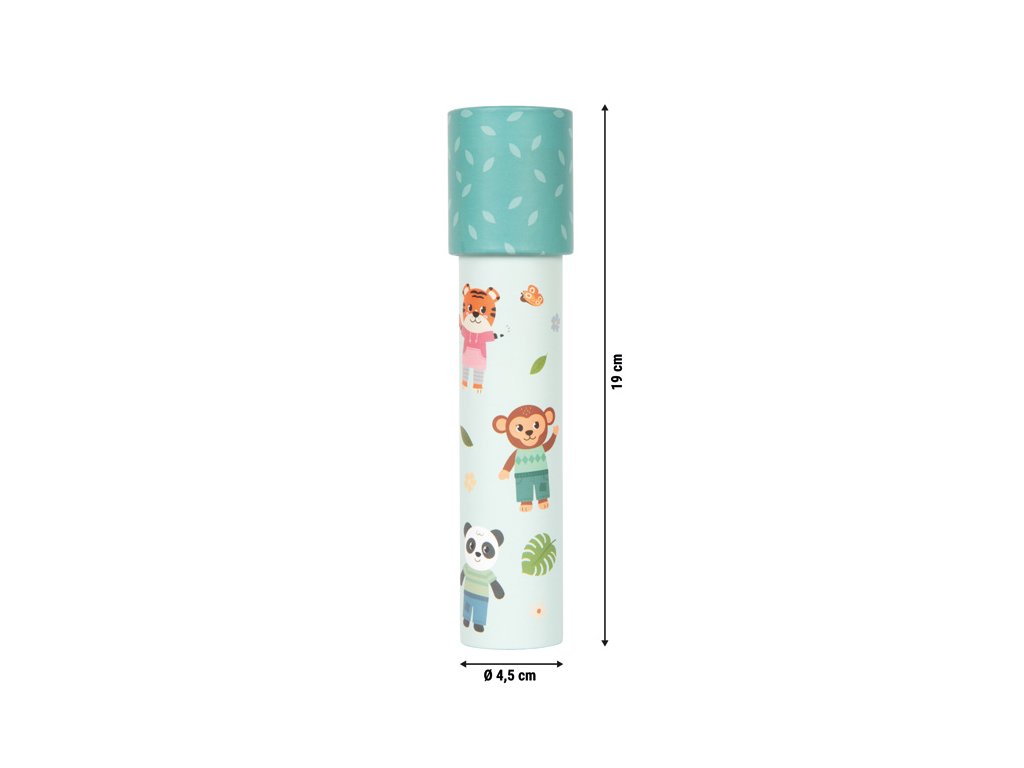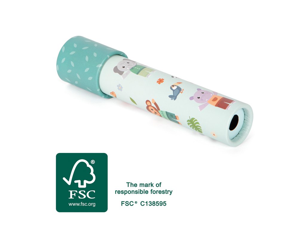 Tento dětský kaleidoskop s certifikací FSC® vyrobený z ekologicky šetrného materiálu s roztomilými zvířecími motivy – tygr, slon, opice, zebra, panda a hroch – podporuje rozvoj vizuálního vnímání, představivosti a pozorovacích schopností. S každým otočením vytváří barevné, neustále se měnící vzory, které trénují soustředění, rozpoznávání barev a chápání tvarů. Jeho design vhodný pro děti a praktická velikost dělají z něj ideální hračku pro malé objevitele. Skvěle se doplňuje s dalšími produkty z kolekce Přátelé z džungle. Hlavní vlastnosti: materiál s certifikací FSC® roztomilé zvířecí motivy – tygr, slon, opice, zebra, panda a hrochrozvíjí vizuální vnímání, představivost a pozorovací schopnostipři otáčení vytváří barevné, měnící se vzorypodporuje soustředění, rozpoznávání barev a chápání tvarů Značka a certifikát FSC® (Forest Stewardship Council) zaručuje, že dřevo, ze kterého byl produkt vyroben, nebylo vytěženo nelegálně a pochází z lesů obhospodařovaných šetrným či přírodě blízkým způsobem, ve kterém jsou dodržovány přísné environmentální a sociální požadavky. Značka FSC® na výrobku znamená, že svým nákupem pomáháte chránit lesy a podporujete šetrné, odpovědné či přírodě blízké hospodaření, díky kterému jsou naše lesy stabilnější, zdravější, mají přirozenou druhovou skladbu a lépe odolávají negativním následkům klimatických změn.