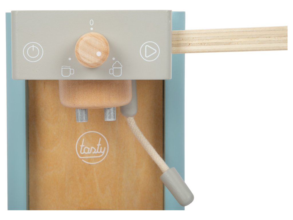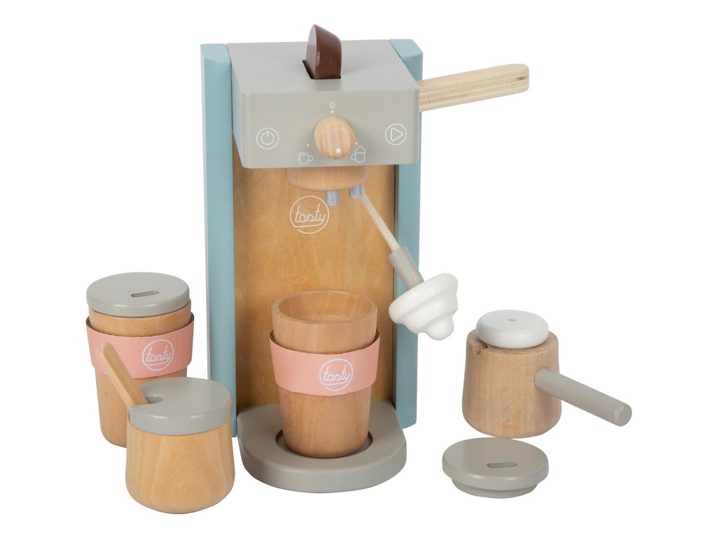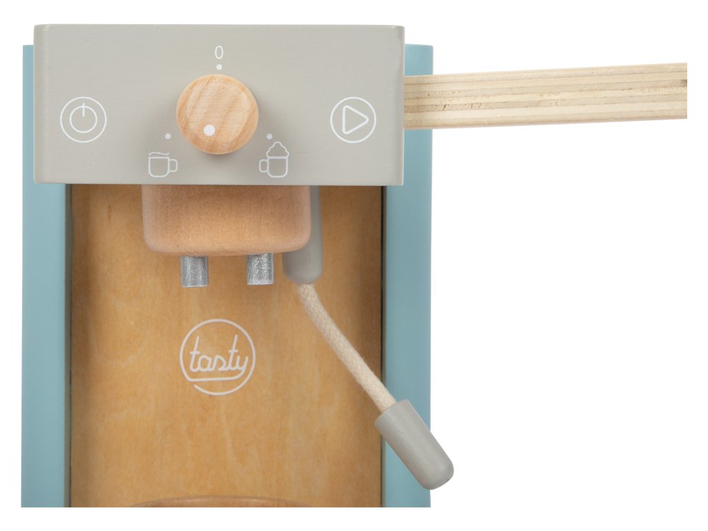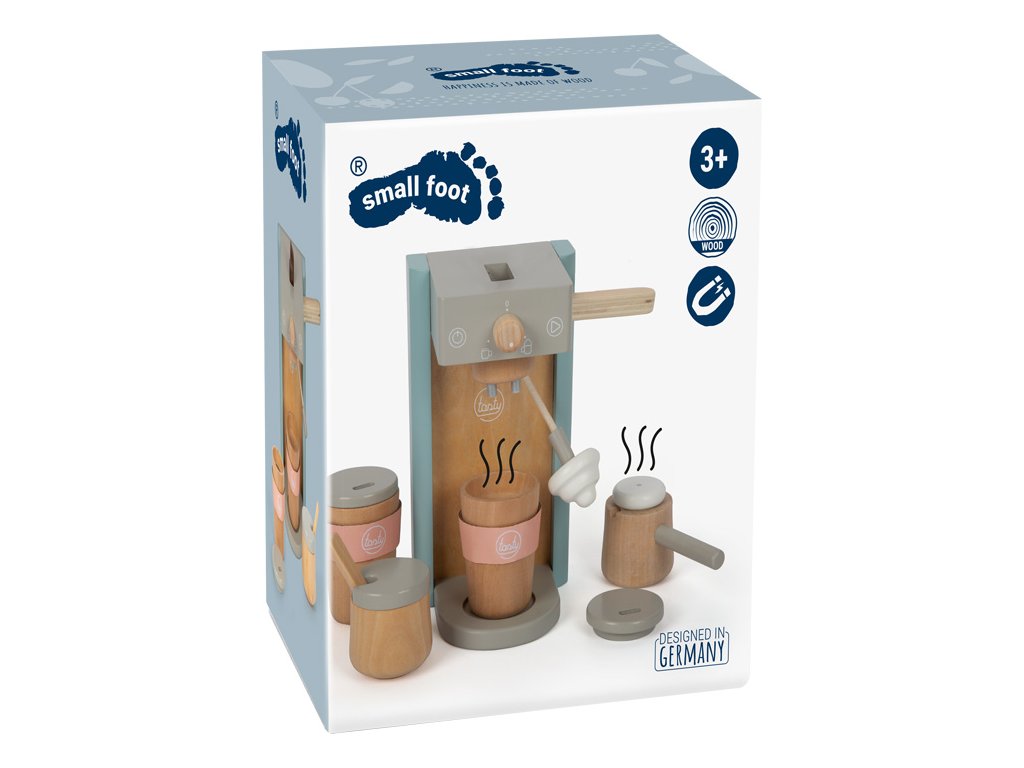 Pro malé baristky a baristky! Tato kompletní dřevěná sada se skládá z dětského kávovaru s 2 kávovými kapslemi, 2 kelímky, cukřenkou s víčkem a lžičkou, také mléčenka s napěněným mlékem. Kávovar nabízí realistickou hru, kávové kapsle zapadnou do přístroje, hotovou kávu můžete nazdobit magnetickou mléčnou pěnou. Kávovar má nenápadné barvy a mnoho viditelného dřeva. Kávové kapsle do kávovaru zapadnou pomocí boční páčky, kuželovitý tvar kelímků zajistí, že kapsle spadne přímo do nich. Magnetický napěňovač vám poskytne mléko do kávy. Napěňovač je vyroben z drátku obaleného v textilu, ohýbá se do všech stran a na konci má magnet, na který můžete připevnit mléčnou pěnu. Tato sada má barevný design kompatibilní s dalšími produkty řady Tasty od Small Foot, například Dřevěnou kuchyňkou LE12216. Hlavní vlastnosti: moderní kávovar s 2 kapslemikelímky-to-go, cukřenkarealistická hra s kapslemi a napěňovačemrobustní dřevodesignově se hodí do dětského i obývacího pokojehodí se k dalším výrobkům z produktové řady Tasty při představivé hře trénuje každodenní a sociální dovednosti