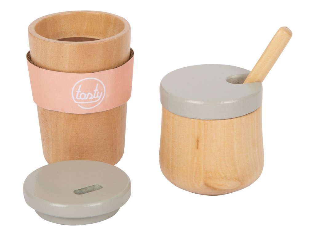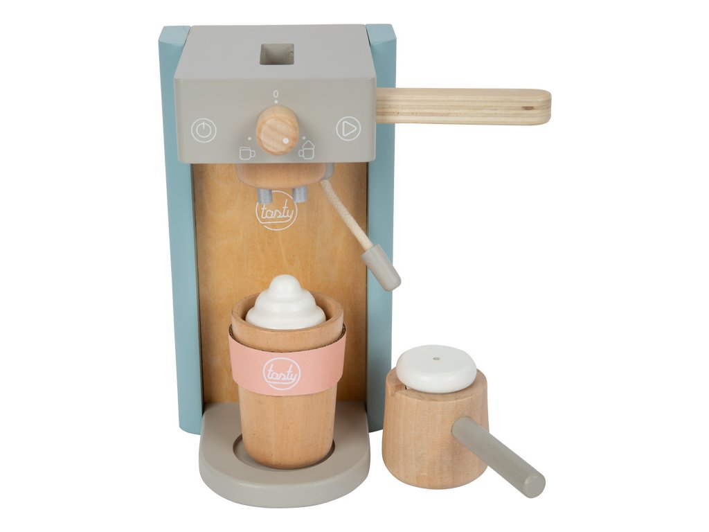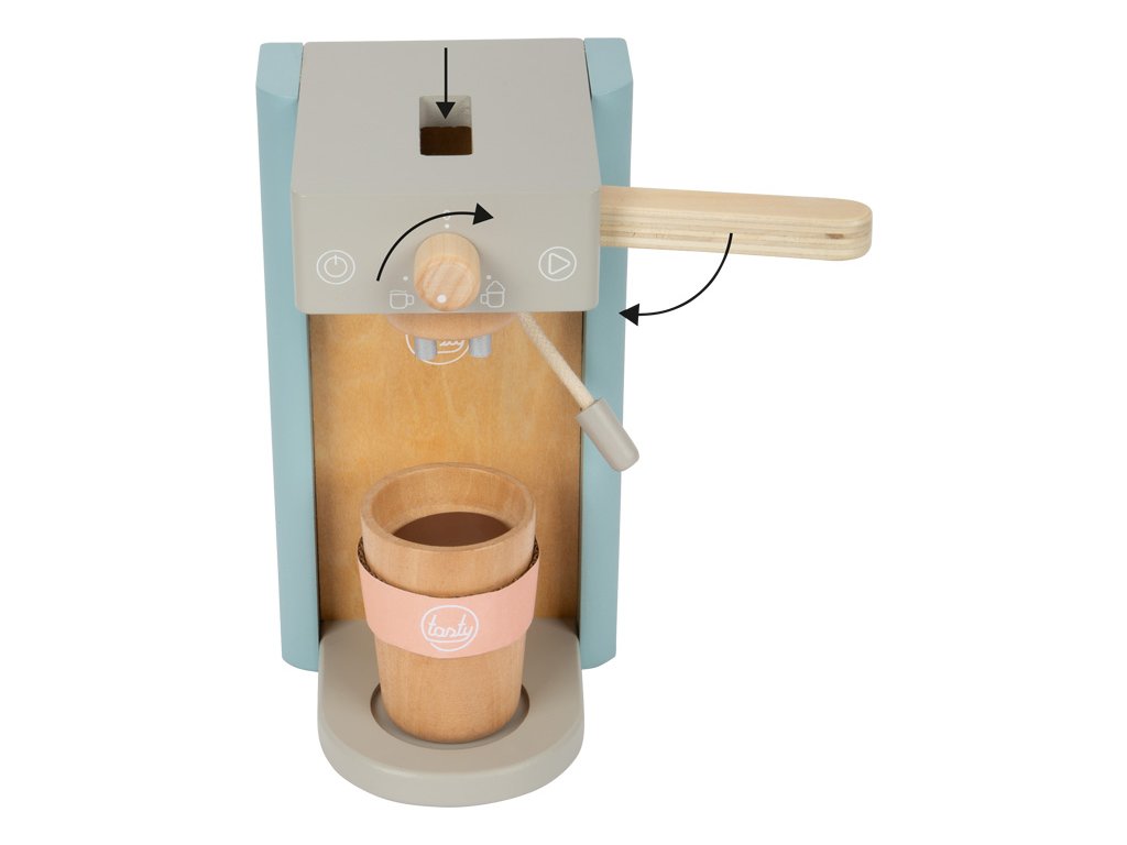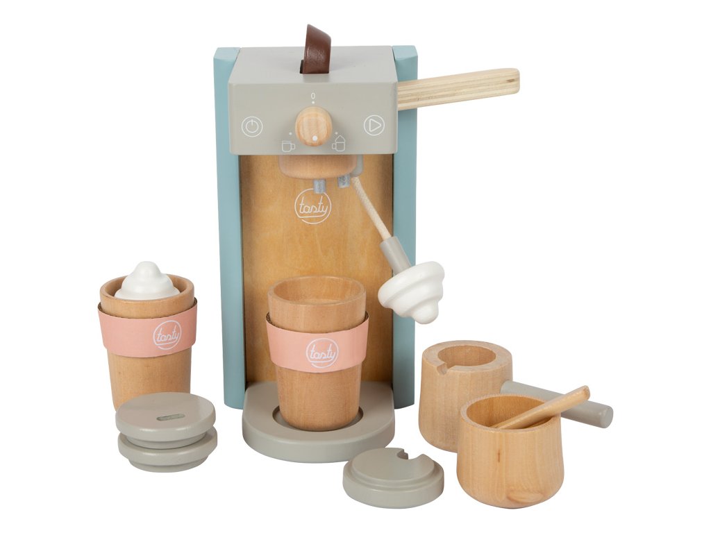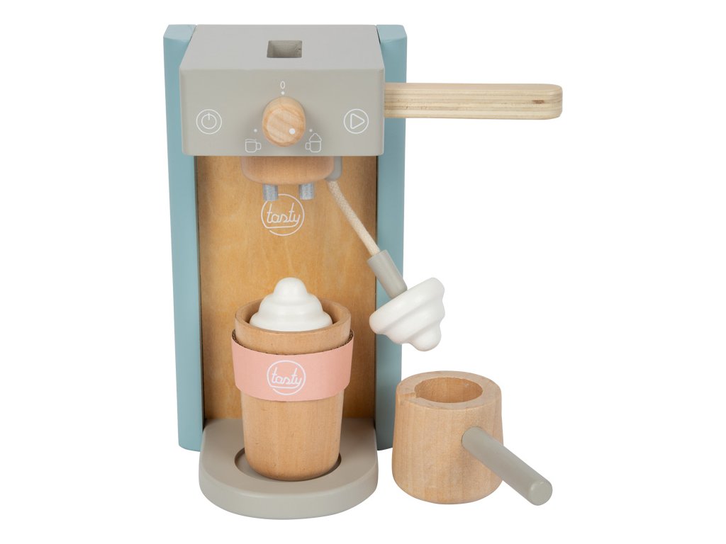 Pro malé baristky a baristky! Tato kompletní dřevěná sada se skládá z dětského kávovaru s 2 kávovými kapslemi, 2 kelímky, cukřenkou s víčkem a lžičkou, také mléčenka s napěněným mlékem. Kávovar nabízí realistickou hru, kávové kapsle zapadnou do přístroje, hotovou kávu můžete nazdobit magnetickou mléčnou pěnou. Kávovar má nenápadné barvy a mnoho viditelného dřeva. Kávové kapsle do kávovaru zapadnou pomocí boční páčky, kuželovitý tvar kelímků zajistí, že kapsle spadne přímo do nich. Magnetický napěňovač vám poskytne mléko do kávy. Napěňovač je vyroben z drátku obaleného v textilu, ohýbá se do všech stran a na konci má magnet, na který můžete připevnit mléčnou pěnu. Tato sada má barevný design kompatibilní s dalšími produkty řady Tasty od Small Foot, například Dřevěnou kuchyňkou LE12216. Hlavní vlastnosti: moderní kávovar s 2 kapslemikelímky-to-go, cukřenkarealistická hra s kapslemi a napěňovačemrobustní dřevodesignově se hodí do dětského i obývacího pokojehodí se k dalším výrobkům z produktové řady Tasty při představivé hře trénuje každodenní a sociální dovednosti