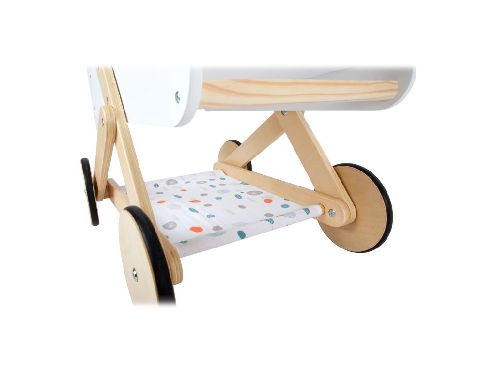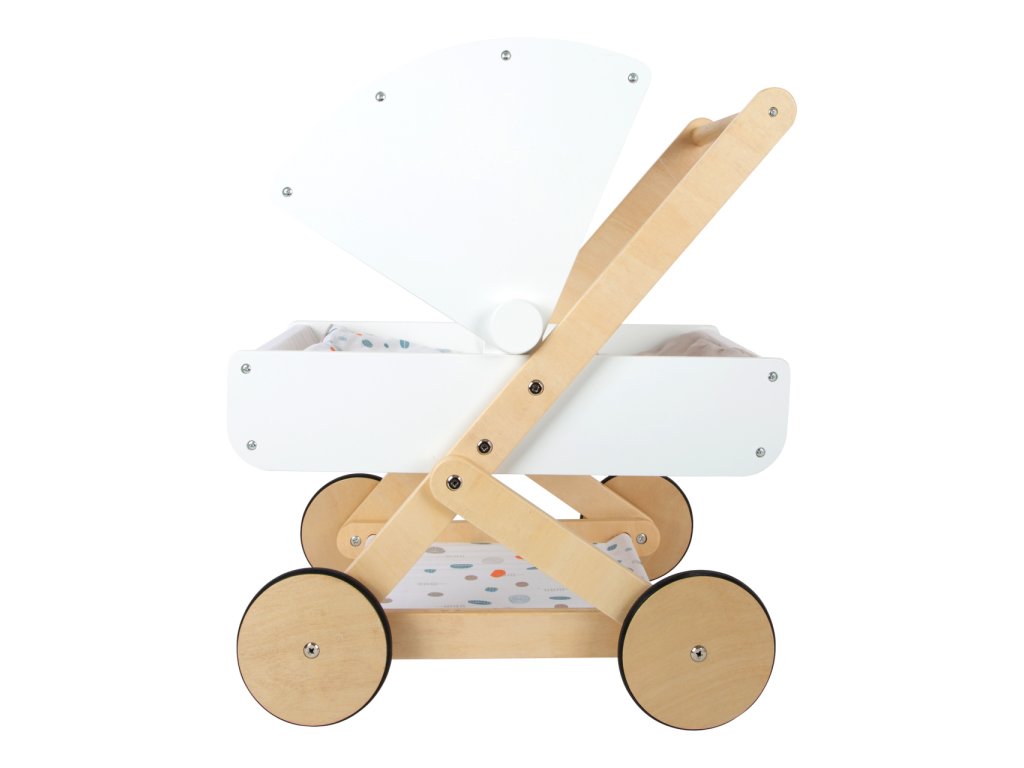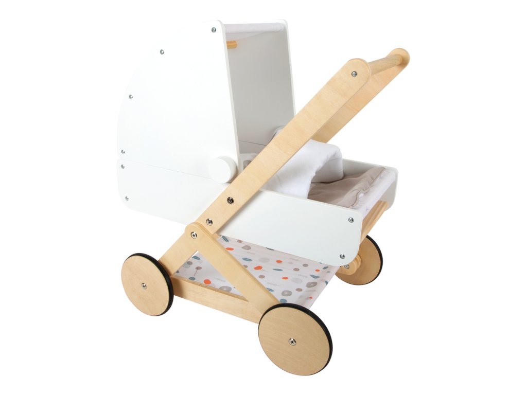 Pro panenky, plyšáky a jejich kamarády jen to nejlepší! Tento moderní kočárek pro panenky na vás udělá dojem svým jemným, lineárním skandinávským designem a také úložným prostorem pod lehátkem. Díky odklápěcí stříšce mohou panenky a plyšáci z kočárku koukat dopředu nebo dozadu. Oboustranné a genderově neutrální povlečení s peřinou nadměrné velikosti zajistí, že panenky a plyšáci do 46 cm budou v pohodlí. Kočárek má tichá pogumovaná kolečka. Moderní kočár s prvky z přírodního dřeva, s omyvatelným textilem jen čeká kdo se v něm sveze! Je velmi stabilní i při své nízké váze, hodí se do každého pokoje a to díky svému neutrálnímu designu. Hlavní vlastnosti: 2v1: Díky odklápěcí stříšce se mohou panenky a plyšáci dívat dopředu nebo dozaduPraktický úložný prostor pod lehátkemPogumovaná kolečka pro tichou a bezpečnou jízduStabilní konstrukce i při nízké vázeVhodné pro panenky a plyšáky do 46 cmZaoblené hrany a viditelně dřevěné prvkyOboustranné genderově neutrální povlečení, peřina nadměrné velikostiSkandinávský design, paleta jemných barev, prvky ze série „Little Button“ Little Button Řada atraktivního příslušenství pro panenky Little Button nabízí pestrou paletu výrobků, od kočárku přes jídelní židličku až po skříň. Zákazníky snadno zaujmou jednotným funkčním a decentním designem využívajícím přímé linie a střídmé neutrální barvy. Díky tomu spolu mohou vytvořit ucelené harmonické soupravy, které vkusně doplní moderní interiér. Důmyslná konstrukce a kvalitní zpracování pomáhají zajistit vysokou stabilitu, bezpečnost a dlouhou životnost. Založte s jejich pomocí stylový koutek pro panenky, kde mohou Vaše děti rozvíjet svou fantazii a pečovatelské dovednosti.