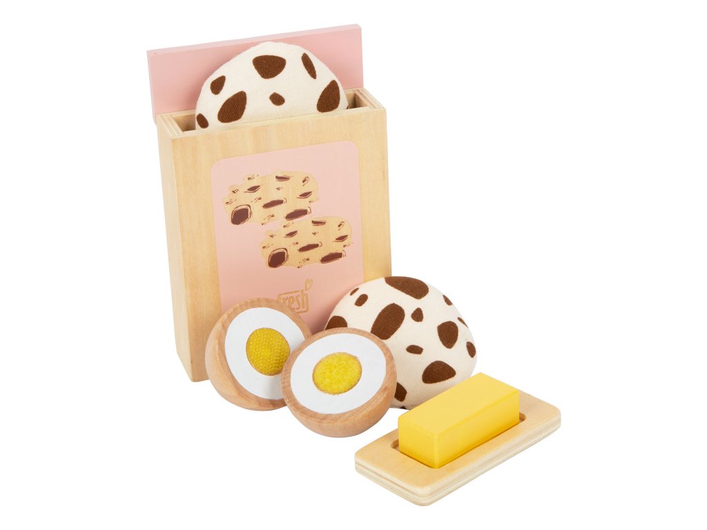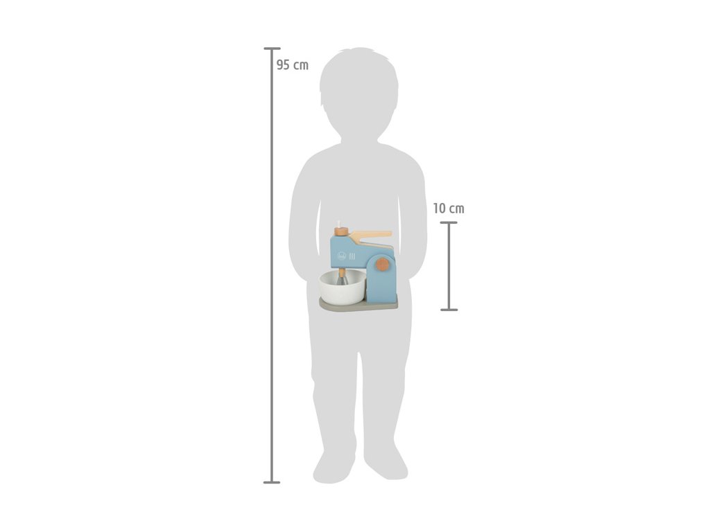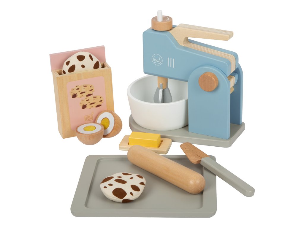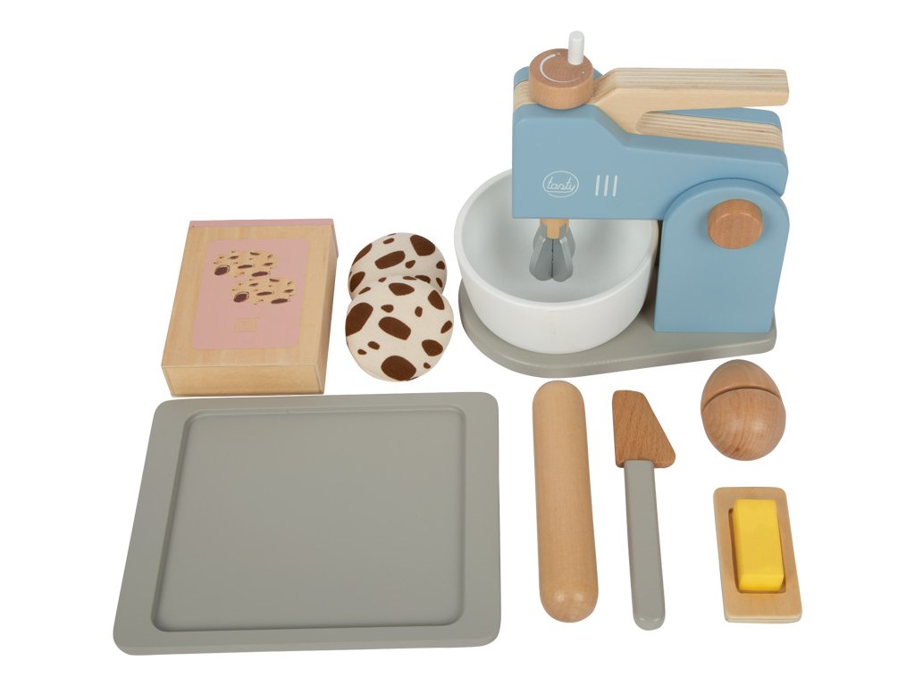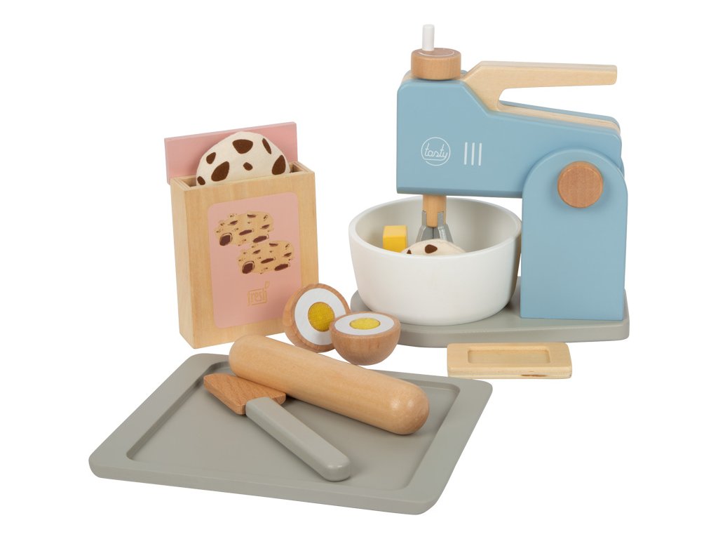 S tímto dřevěným kuchyňským robotem s příslušenstvím si malí pekaři a pekařky užijí mnoho zábavy. Ruční mixér lze od robota oddělit, hračka má pěknou modrou a bílou barvu, také ale mnoho přírodního dřeva. V balení najdete také krabici s pečící směsí, která má uzávěr na gumičku, je bezpečná pro děti. Podle obrázkového receptu v krabici můžete upéct vlastní dobroty. Dále v balení najdete také textilní sušenky, dřevěné máslo, vejce na suchý zip, mísu, váleček, stěrku, plech na pečení. Tato sada má barevný design kompatibilní s dalšími produkty řady Tasty od Small Foot, například Dřevěnou kuchyňkou LE12216. Hlavní vlastnosti: dřevěný kuchyňský robot 2v1kouřově modrá, bílá a mnoho přírodního dřevaotočné metličkytextilní a dřevěné doplňky – jídlo a kuchyňské vybaveníkrabice s pečící směsí, nejdete v ní také obrázkový receptsvou barvou a designem se hodí do dětského i obývacího pokojehodí se k dalším výrobkům z produktové řady Tasty při představivé hře trénuje každodenní a sociální dovednosti