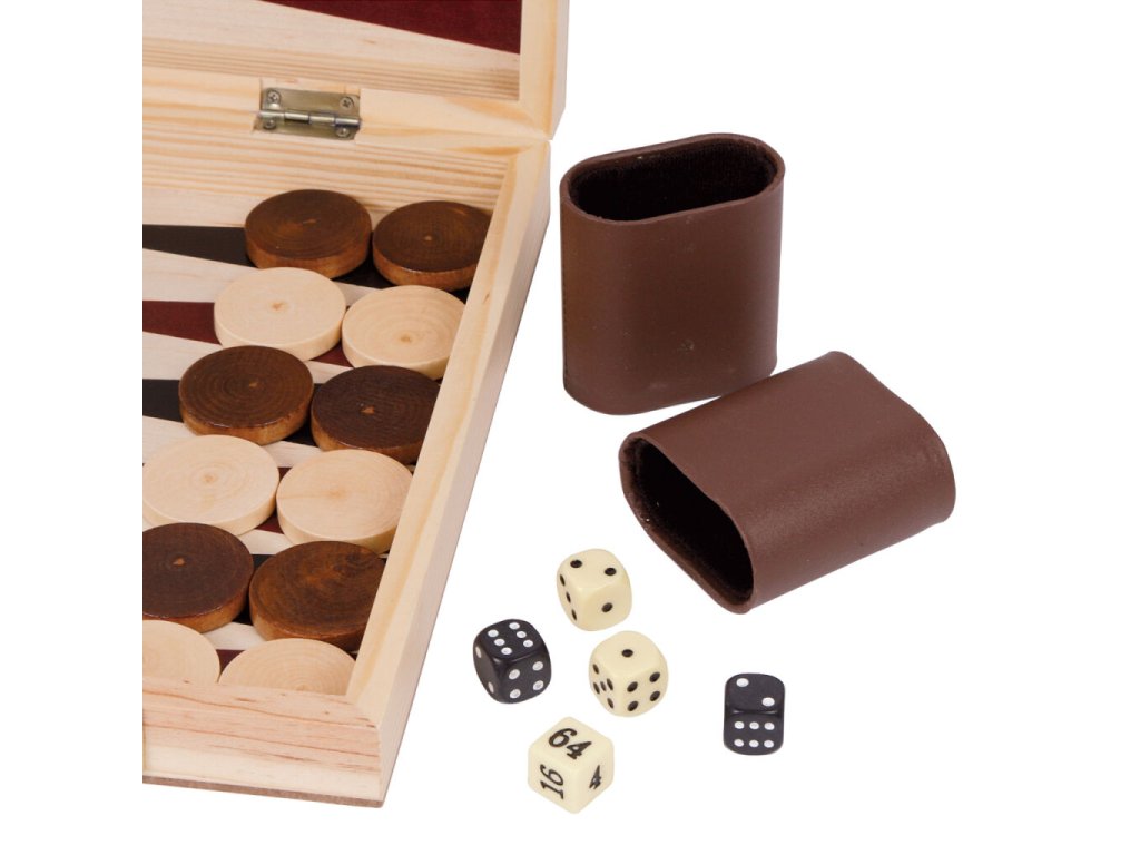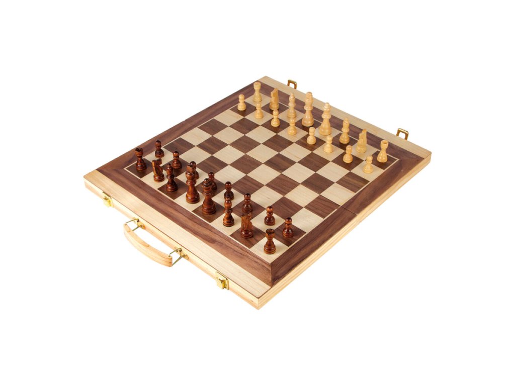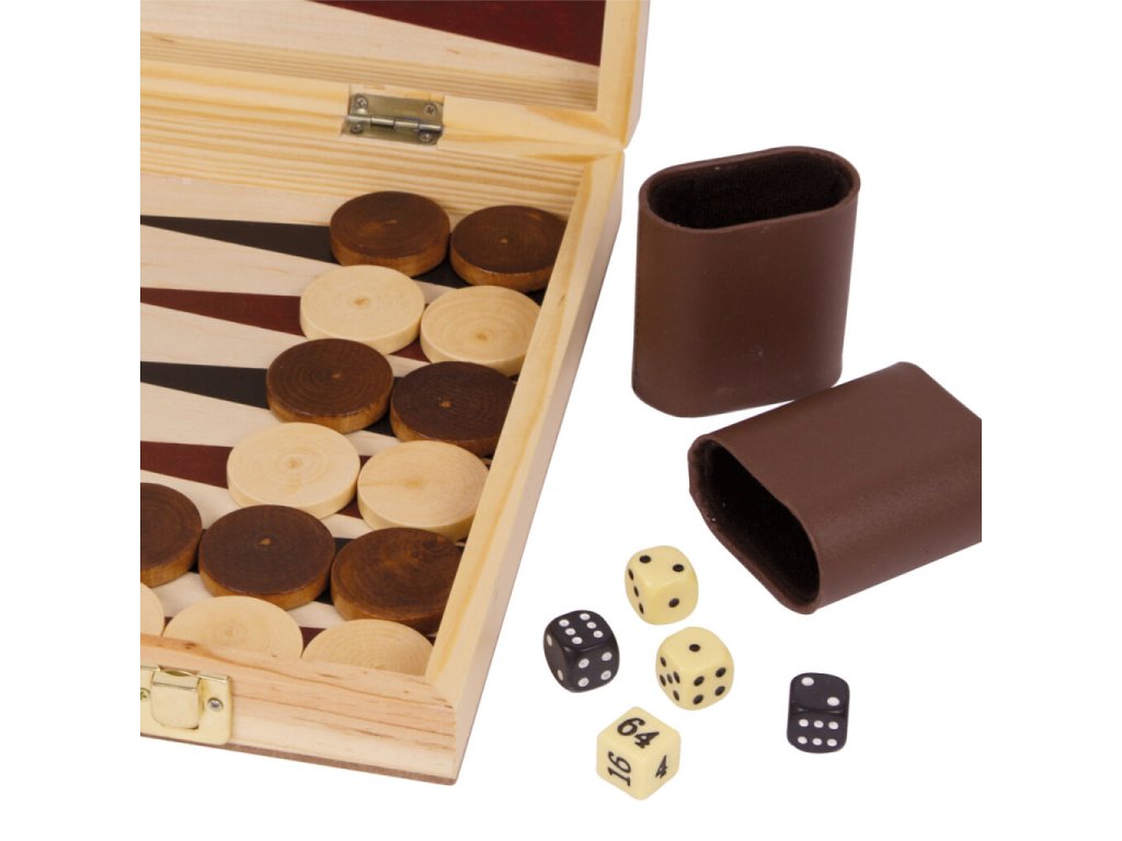 Šachy i vrhcáby jsou starobylé deskové hry, které stále nacházejí hodně svých nových příznivců po celém světě. Ve hře šachy Vám nepomůže náhoda, ale jen vaše schopnosti, znalosti pravidel hry, umění strategie a myslet pár tahů dopředu. Naučte své děti táhnout figurkami po šachovnici a uvidíte, že najdete skvělou společnou zábavu pro deštivá odpoledne. Stejnou službu Vám udělá i hra vrhcáby, která je jedna z nejstarších známých deskových her pro dva hráče, ve které hraje roli náhoda a štěstí. Kvalitně zhotovený dřevěný kufřík s rukojetí. Velké hrací kameny ze dřeva (3,8x 0,7cm) a velké figurky (3,5 až 7,5 cm) nechají malé i velké stratégy při šachu zapomenout na čas. Kufřík obsahuje kostky, postavičky šachu a kameny hry dáma. Na povrchu víka dřevěného kufříku je vykládaná šachovnice, kterou použijete ke hře tak, že otevřený kufřík rozložíte. Z vnitřní strany je hrací plán pro vrhcáby. Hlavní vlastnosti: rozvíjí logiku a strategické myšlenírobustní, kvalitní provedení v přírodních barvách