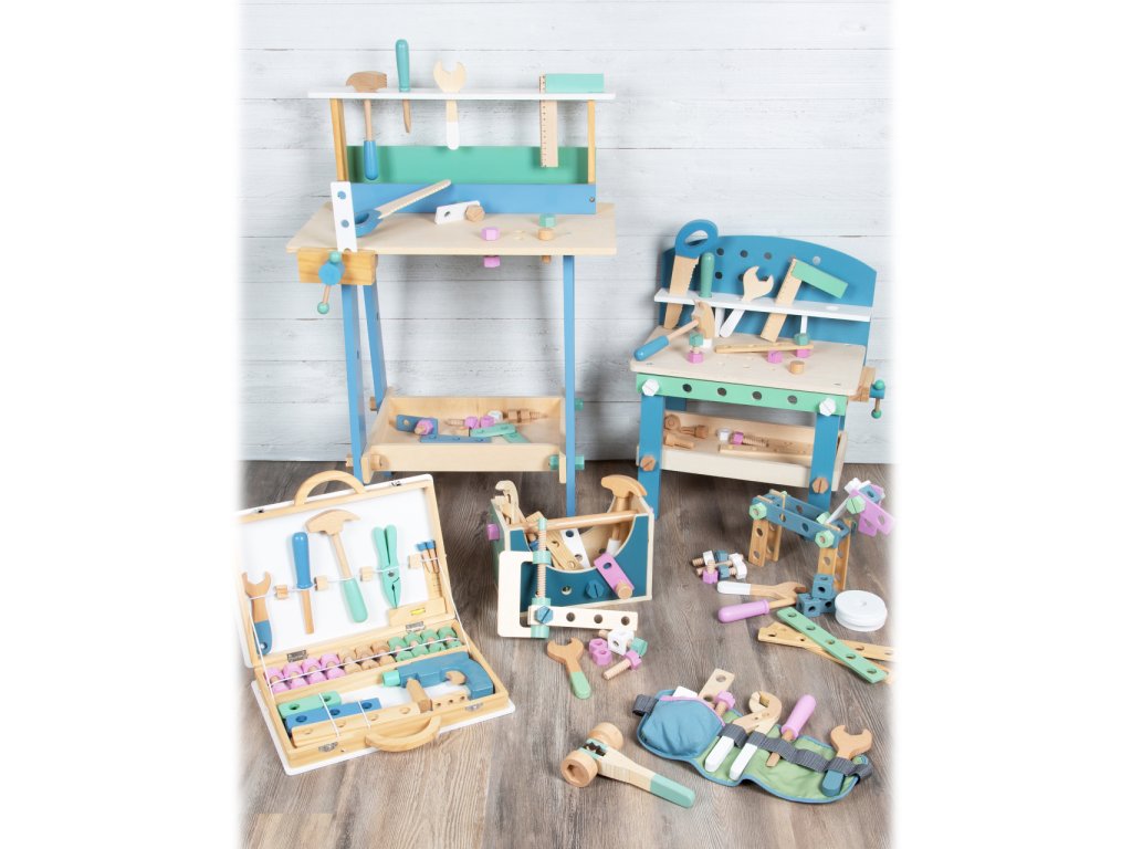 Video je pouze ilustrační, zobrazuje příbuzný produkt. Dejte průchod nadšenému kutilství! Malí řemeslníci i řemeslnice se pomocí kufříku s nářadím stanou nenahraditelnými profesionály. Naleznou v něm všechny nezbytné nástroje, od úhelníku s funkční vodováhou, až po maketu vrtačky s několika magnetickými nástavci. V příslušenství je zahrnuto také množství barevných stavebnicových dílů s robustními šrouby a maticemi. Jejich prostřednictvím mohou děti dát průchod své fantazii, vytvářet rozmanité konstrukce, a tak rozvíjet svou zručnost i další užitečné dovednosti. Pevný a odolný kufřík je uvnitř vybaven gumovými popruhy, díky nimž mohou být všechny součásti vždy bezpečně zajištěny a přehledně uspořádány. Je opatřen spolehlivým kovovým zavíráním a madlem přizpůsobeným ručkám malých šikulů. Souprava je vyrobena z kombinace překližky a masivního dřeva, může proto nabídnout vysokou životnost naplněnou bezpočtem těch nejužitečnějších zlepšováků. Lze vybírat z dvojice různě dekorovaných a barevných provedení, dílenský Miniwob a skandinávský Nordic. Hlavní vlastnosti:úhelník s vodováhou, klíč, šroubovák, kladívko, kleště a vrtačka se 3 nástavci12 plochých stavebnicových dílů různých délek a 11 šroubů s maticemirobustní a odolné dřevěné provedenípraktické a atraktivní balení