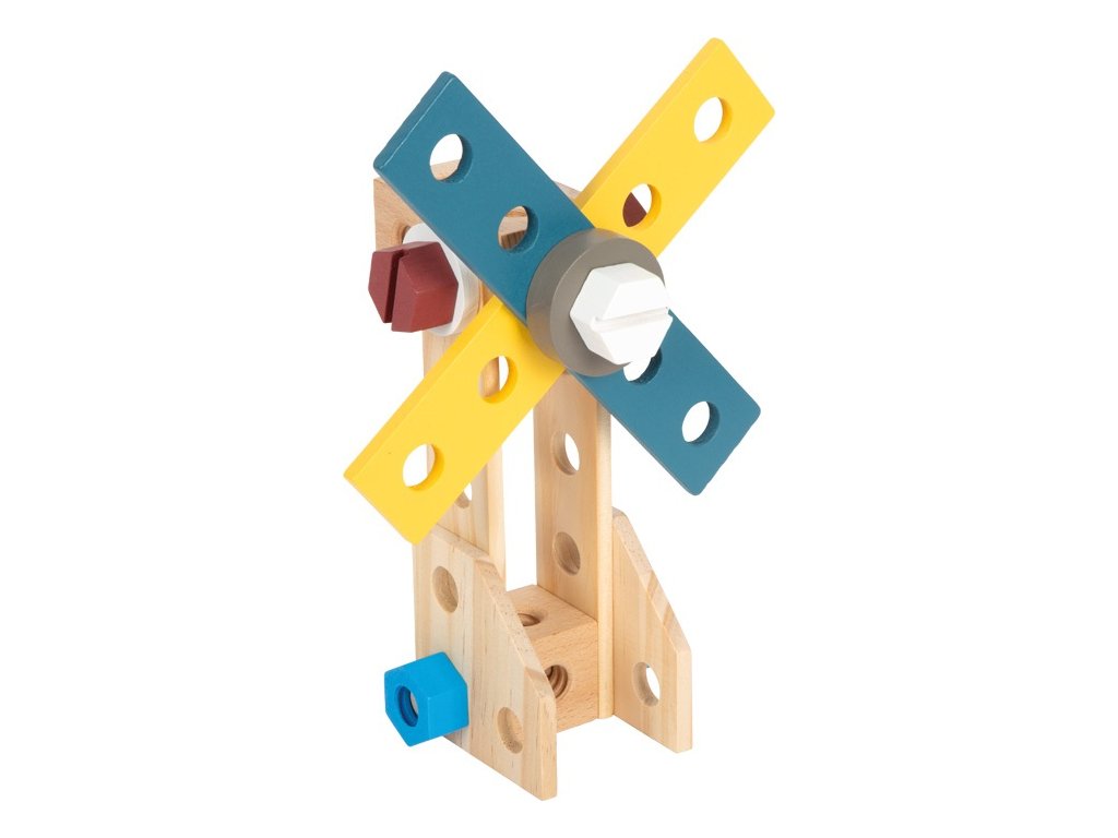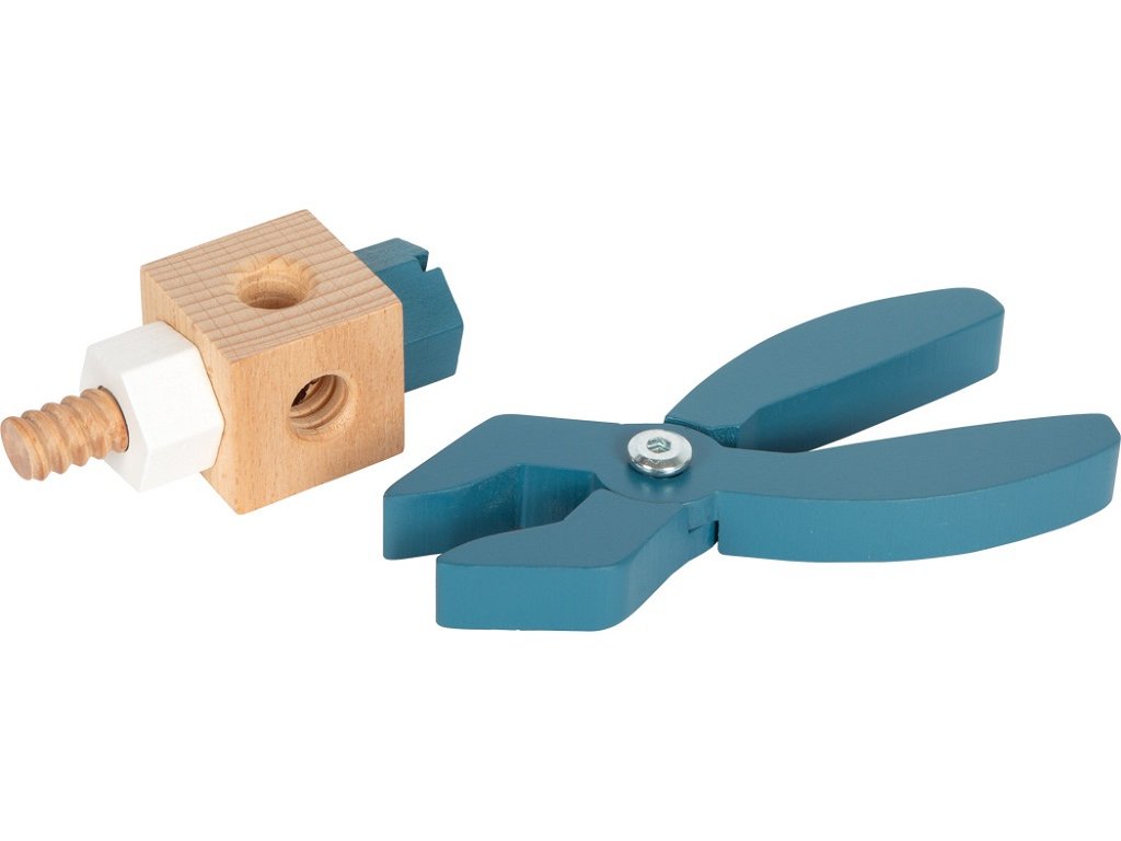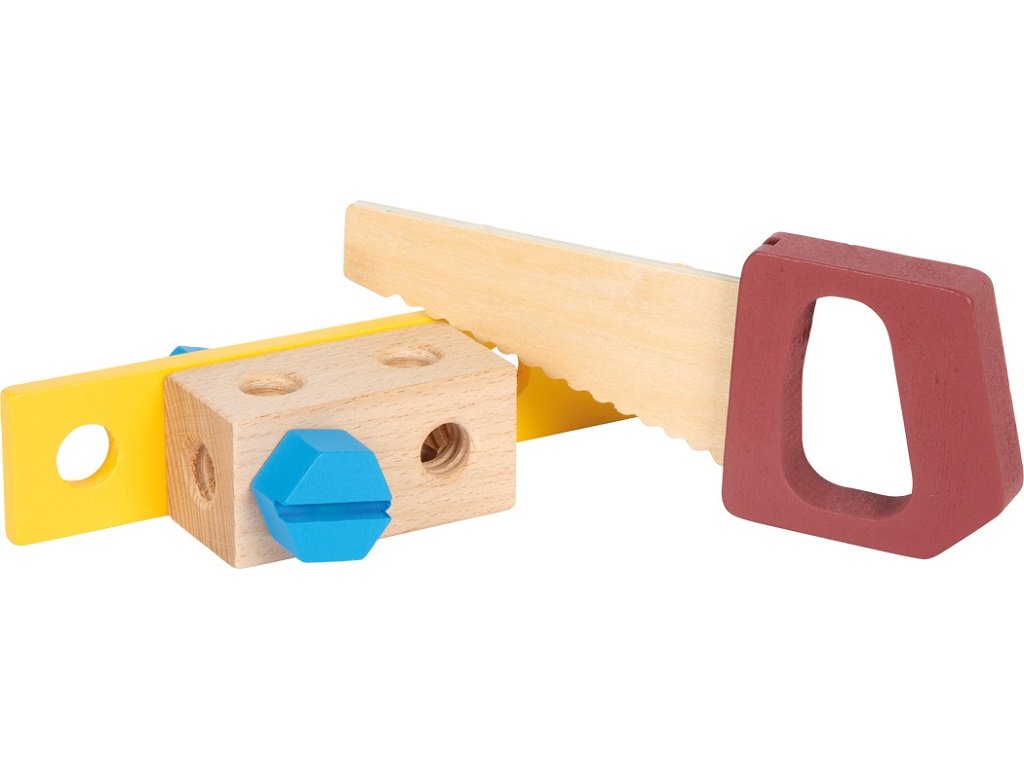 Pozor všichni malí řemeslníci i řemeselnice! S tímto dřevěným kufříkem si děti mohou hrát na kutily. Realistické nářadí a doplňky vybízejí ke kreativní hře a rozvojí fantazii. Pomocí jednotlivých stavebnicových dílků mohou děti poskládat rozmanité konstrukce (např. závodní auto, vrtulník, větrný mlýn nebo letadlo) a rozvíjet tak svou zručnost. Pevný a odolný kufřík je uvnitř vybaven gumovými popruhy, díky nimž jsou jednotlivé kousky nářadí na svém místě přehledně uspořádány. Také je kufřík opatřen kovovým zavíráním, které udrží vše bezpečně uložené a dřevěnou rukojetí přizpůsobenou ručkám malých kutilů. Sada obsahuje: kufřík, kladivo, klíč, šroubovák, kleště, pilu, 11 šroubů, 12 matic, 2 obdélníkové perforované destičky, 2 malé perforované destičky, 4 středně velké perforované destičky, 2 perforované destičky ve tvaru kosočtverce, 4 silné podložky, 4 tenké podložky, 2 ozubená kola. Hlavní vlastnosti: robustní a odolné provedení5 dřevěných nástrojů (kladivo, klíč, šroubovák, kleště a pila)komplexní příslušenství včetně šroubů, matic, ozubených kol, sady podložek a perforovaných dílů v různých tvarech a velikostechgumové popruhy v kufříku drží nářadí během přepravy pohromaděkovové zavírání zajišťuje, že se četné příslušenství neztratímnožství herních možností na cestáchtrénuje jemnou motoriku a soustředěnírozvíji fantaziipraktické a atraktivní balenískvěle se hodí k ostatním produktům řady Workshopkompatibilní s produkty řady Nordic, Miniwob