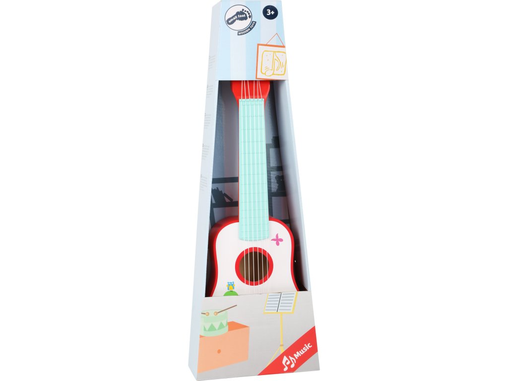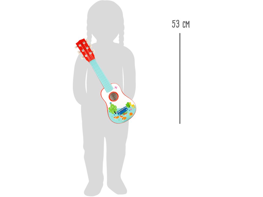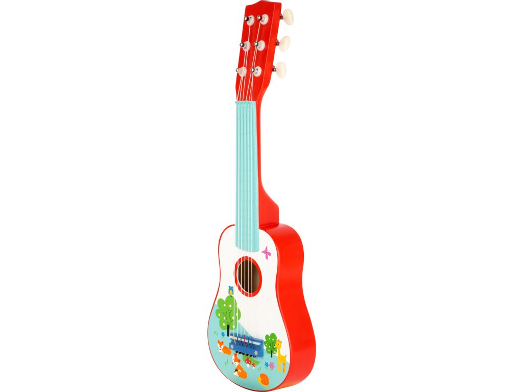 Pozor, hudebníci! S touto kytarou s potiskem lišky budete hvězdami vaší show. Rock'n'roll v dětském pokoji! Děti si procvičí rytmus a hudební sluch. Na struny můžete hrát trsátkem nebo rukou, vydávají krásný zvuk. Fajn hudební nástroj pro brzký rozvoj hudebnosti dětí. Pozor, tato kytara je imitace, ne hudební nástroj, proto nemá profesionální zvuk. Hlavní vlastnosti: procvičuje rytmus a hudební sluch