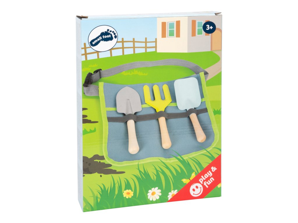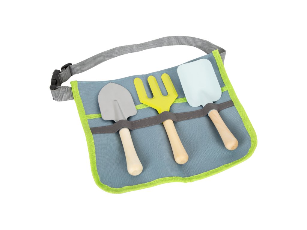 S touto ledvinkou na zahradní nářadí mohou mladí a začínající zahradníci opravdu pomáhat na zahradě a přitom mít volné ruce. Jednoduše si nasaďte snadno nastavitelný opasek s cvakací sponou a výsadba může začít! Lopata, hrábě a rýč jsou vyrobeny z kovu, mají velikost vhodnou pro děti a stabilní dřevěné rukojeti. Zábava na vlastní zahradě je zaručena! Hraní a výsadba podporuje aktivní hraní rolí a trénuje motorické dovednosti. Ideální doplněk. Hlavní vlastnosti: ideální doplněkledvinka s 3 ks nářadípodporuje hru a motorické dovednosti