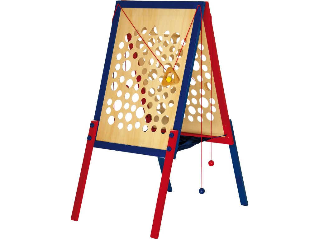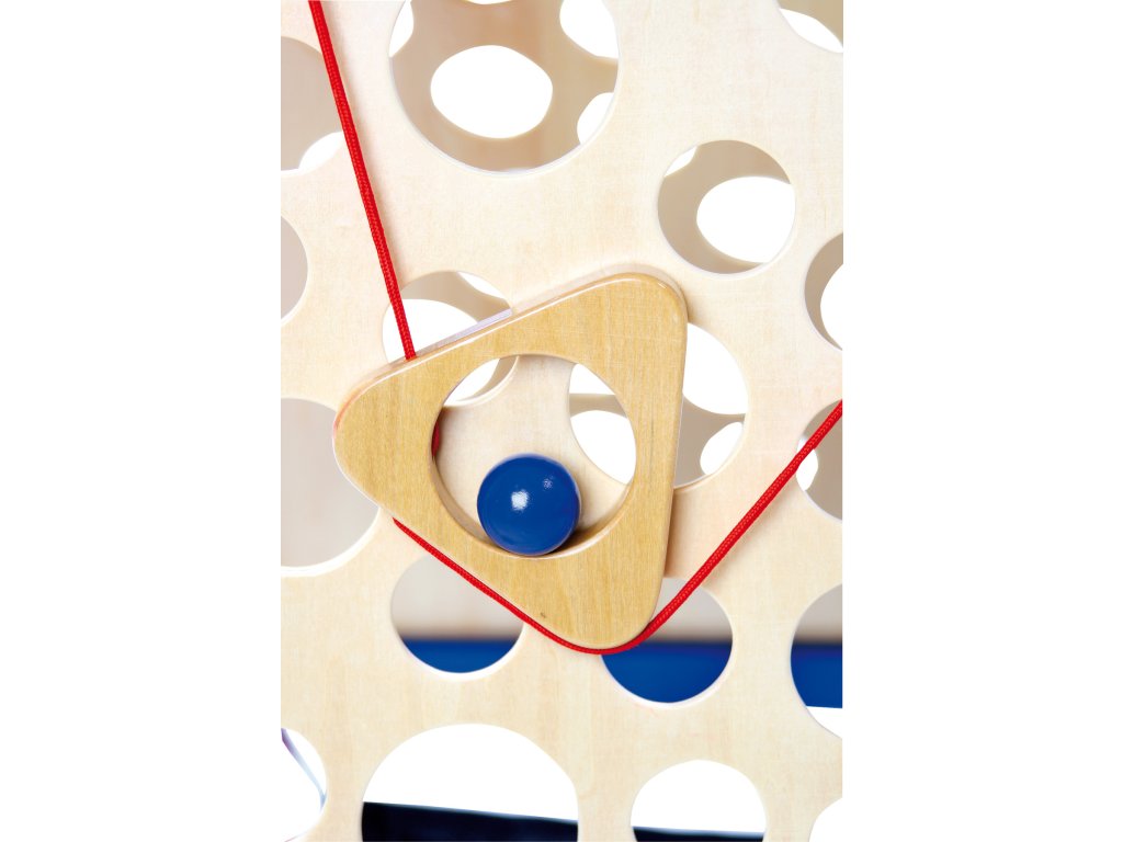Velká verze oblíbené motorické hry. Skládací lezecká stěna se šroubovacími nohami je ideální například pro dětské narozeninové oslavy. Cílem je přesunout kuličku po stěně co nejvýše, aniž by spadla do některého z otvorů. Padající kuličky se zachycují v látce mezi stěnami. Hráči ovládají kuličku na stěně za pomoci šňůrek umístěných po obou stranách hrací desky pomalými a plynulými pohyby rukou. Hru lze jednoduchým způsobem složit a uklidit. Hlavní vlastnosti: procvičuje motorické dovednostiodolné dřevěné provedení