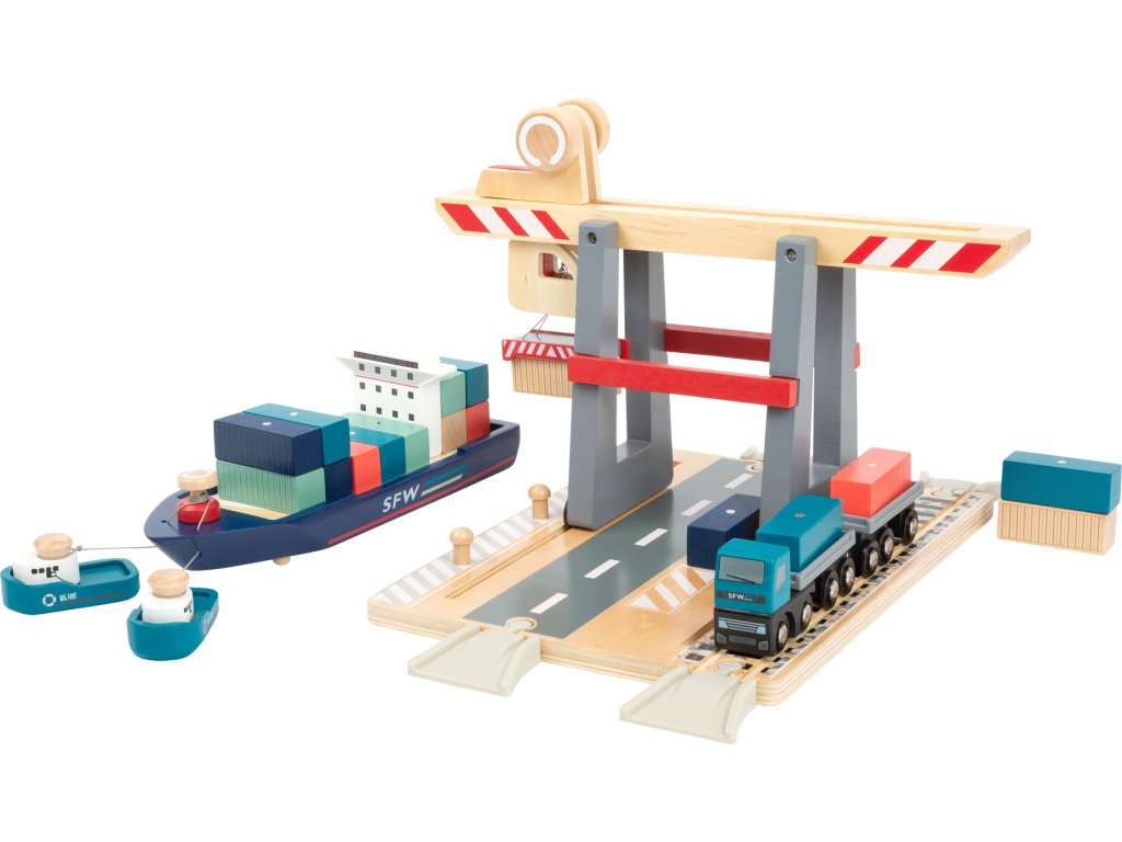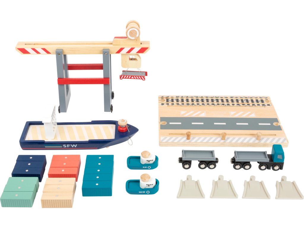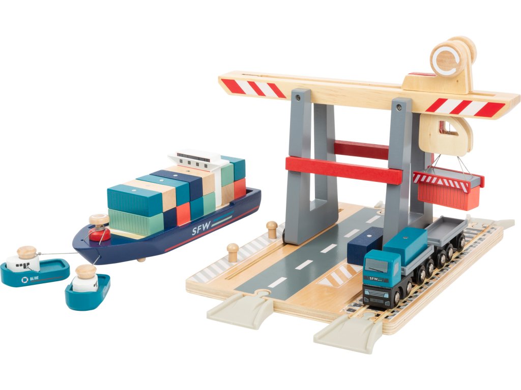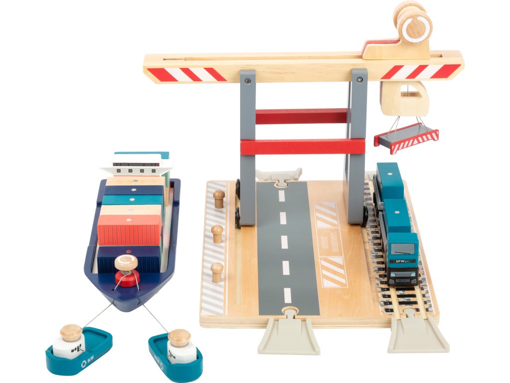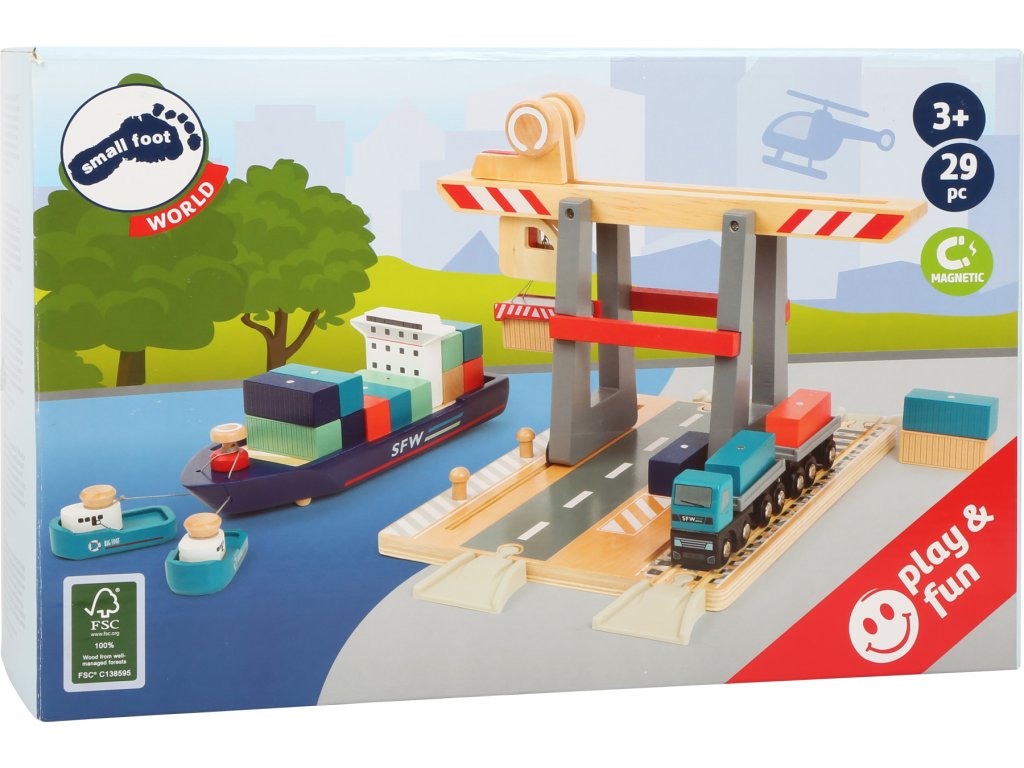 Skvělá zábava pro malé kormidelníky, která nesmí chybět v žádném pokojíčku! Tato hrací sada obsahuje základní desku s kolejemi pro vláčky s mostem a pohyblivým magnetickým jeřábem. Součástí sady je také kontejnerová loď s dvěma remorkéry, které k ní jsou přivazány provázkem. Díky magnetům na kontejnerech je možné jeřábem přemisťovat náklad z místa na místo. Hlavní vlastnosti: sada je kompatibilní s ostatními standardními vláčkodráhamivyrobena ze 100% certifikovaného dřeva FSC® Značka a certifikát FSC® (Forest Stewardship Council) zaručuje, že dřevo, ze kterého byl produkt vyroben, nebylo vytěženo nelegálně a pochází z lesů obhospodařovaných šetrným či přírodě blízkým způsobem, ve kterém jsou dodržovány přísné environmentální a sociální požadavky. Značka FSC® na výrobku znamená, že svým nákupem pomáháte chránit lesy a podporujete šetrné, odpovědné či přírodě blízké hospodaření, díky kterému jsou naše lesy stabilnější, zdravější, mají přirozenou druhovou skladbu a lépe odolávají negativním následkům klimatických změn.
