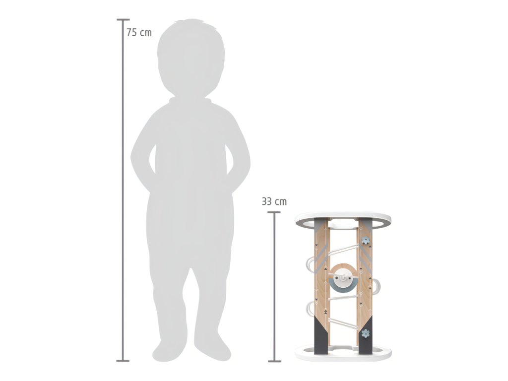 Otáčejte dráhou jako přesýpacími hodinami a zažijte nekonečnou jízdu! Nechejte děti objevovat fascinující práci magnetismu, která brání neposednému disku vypadnout! Konstrukce hračky využívá kovové a plastové spojovací prvky, jejichž pomocí lze dráhu v případě potřeby snadno sestavit i rozebrat a uklidit. Díky robustním základních dílům z odolné překližky je hračka pevná, stabilní a odolná. Svými skandinávskými a přírodními odstíny stylově doplní dětský pokoj. Dodáváno s detailním návodem k sestavení. Hlavní vlastnosti:dráha s kotoučemsnadné sestavení a rozebiratelnostrobustní a odolné dřevěné provedení