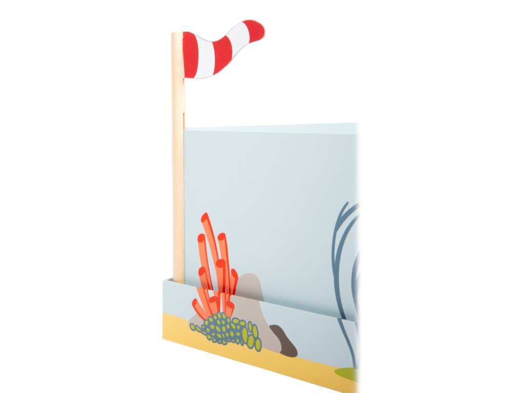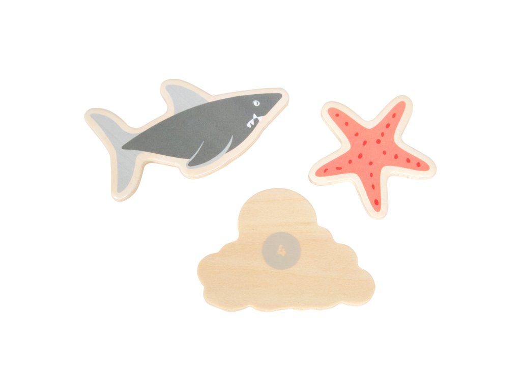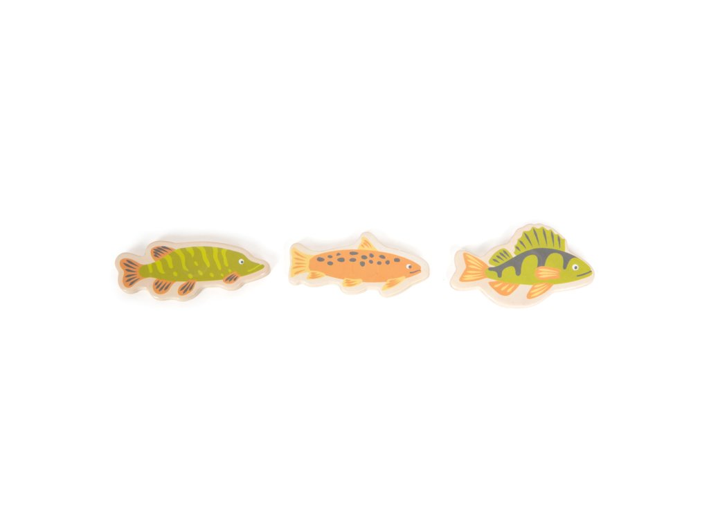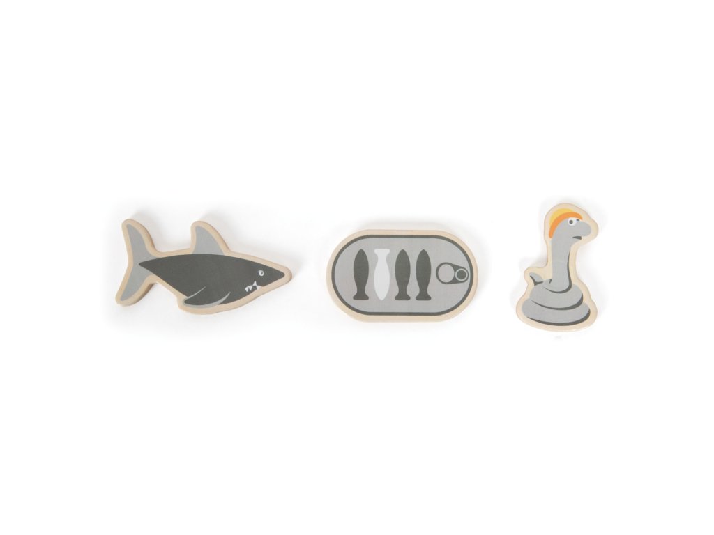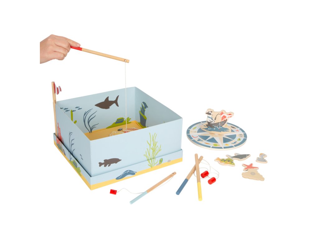 Vydejte se na moře rybařit s roztomilými zvířátky! Roztočte střelku kompasu, a vylosujte si tím mořského tvora, kterého máte ulovit. Chytáním magnetickou udičkou rozvíjejte jemnou motoriku a trpělivost, a to až se třemi přáteli, nebo v kruhu rodiny! Dílky hry jsou vyrobeny z odolné překližky a spolu s udičkami jsou uloženy v praktické, barevně ilustrované kartónové krabičce, která zároveň slouží jako hrací plocha. Hlavní vlastnosti:4 udičky, 16 herních dílků a 3 díly doplňkůpraktické balení