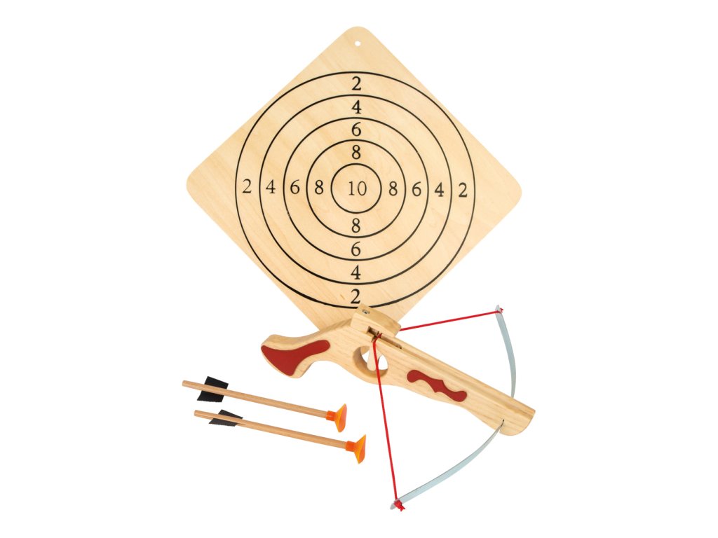Tato dřevěná kuše na hraní by měla poskytnout spoustu zábavy nejen pro malé, ale i pro velké děti. V balení také terč a dva šípy. Zde mohou lukostřelci prokázat svou přesnost a strávit spolu úžasné a zábavné chvíle. Jen tréninkem si vylepšíte své dovednosti. Díky velmi kvalitním gumovým přísavkám šípy jednoduše drží i na hladkém povrchu. Hlavní vlastnosti: kus sportovního vybavení pro malé i velké dětisoučásti balení je kuše, terč a 2 šípy s přísavkami