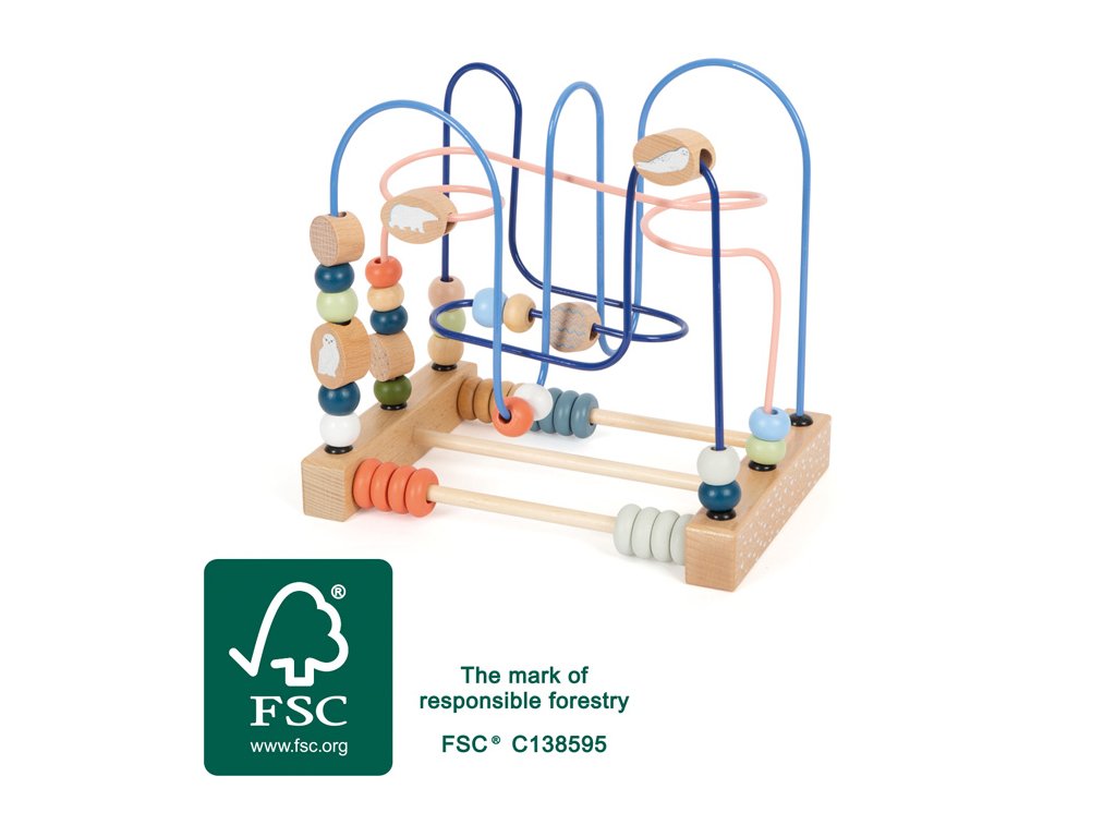 Motorická zábava v Arktidě! Tato motorická hračka vyrobená z certifikovaného dřeva FSC® nabízí dlouhotrvající zábavu, když jsou dřevěné korálky a posuvné prvky s ilustracemi ledního medvěda, tuleně a sovy sněžné vedeny po třech barevně sladěných, propletených kovových drahách. Zábavnou formou si tak děti procvičí jemnou motoriku a koordinaci ruka-oko. Počítadla s kroužky nabízejí rozmanitost a podporují zájem o počítání zábavnou formou. Labyrint v moderních barvách podporuje motorický vývoj dětí a působí skvělým vizuálním dojmem v dětském pokoji. S řadou motorických hraček "Arctic" je to všechno o šesti zvířecích kamarádech a jejich životě v mrazivém arktickém prostředí...majestátní lední medvěd, hravý mrož, zvědavý tuleň, hbitý zajíc sněžný, bílá sova sněžná a chytrá polární liška. Všichni tito obyvatelé Arktidy mají své charakteristické bílé kožíšky a jsou obzvláště populární a oblíbené u malých dětí. Labyrint pomáhá dětem seznamovat se nejen s barvami, ale také především trénovat jemnou motoriku při posouvání korálků. Díky dostatečnému množství těchto rozmanitých korálků, mezi kterými najdete roztomilé zvířecí kamarády, lze hračku využít i k edukativní hře a pomalu u vašich ratolestí vytvářet pozitivní vztah k učení a počtům. Hlavní vlastnosti: skvělý úvod do světa počtůrozvíjí jemnou motorikuzlepšuje obratnost a koncentraciFSC® dřevo Značka a certifikát FSC® (Forest Stewardship Council) zaručuje, že dřevo, ze kterého byl produkt vyroben, nebylo vytěženo nelegálně a pochází z lesů obhospodařovaných šetrným či přírodě blízkým způsobem, ve kterém jsou dodržovány přísné environmentální a sociální požadavky. Značka FSC® na výrobku znamená, že svým nákupem pomáháte chránit lesy a podporujete šetrné, odpovědné či přírodě blízké hospodaření, díky kterému jsou naše lesy stabilnější, zdravější, mají přirozenou druhovou skladbu a lépe odolávají negativním následkům klimatických změn.