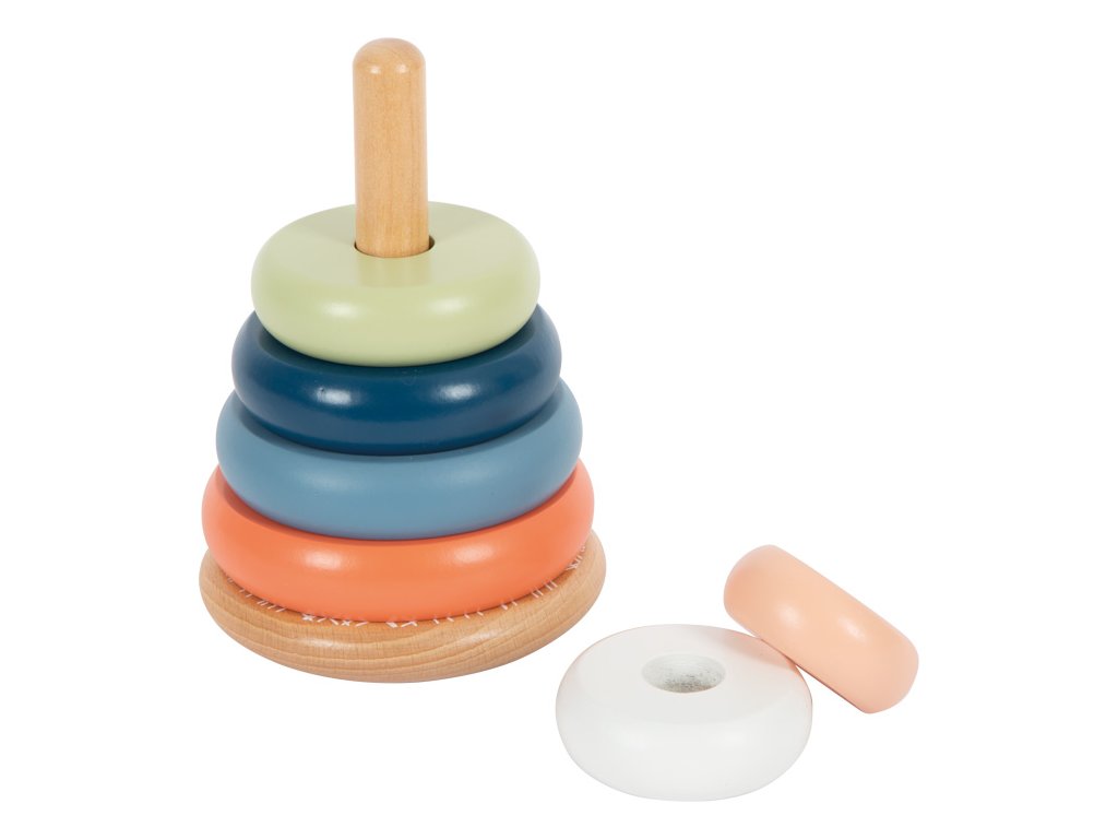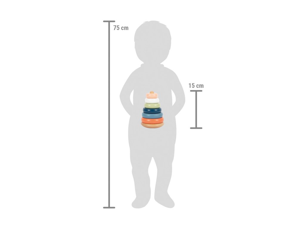 Zábava při nasazování s arktickou atmosférou. Tato nasazovací věž z certifikovaného dřeva FSC® motivuje i ty nejmenší děti, aby třídily šest různě barevných kroužků podle velikosti a skládaly je na sebe. Tato aktivita trénuje motorické dovednosti, koordinaci ruka-oko a poskytuje pochopení barev a velikostí. Zaoblená základna umožňuje, aby se nasazovací věž kývala tam a zpět, což zábavným způsobem zpochybňuje dětskou zručnost. Pohyblivý kolík zvyšuje bezpečnost. Tato klasická motorická hračka vhodná pro děti vyrobená z robustního dřeva je navržena v moderních, ale jemných barvách a zaručuje dlouhotrvající zábavu při hraní. Dřevo hladké na dotek dopřeje dětem příjemný haptický zážitek. Malé děti se nebudou vůbec nudit! Hlavní vlastnosti: rozvíjí jemnou motoriku dítěteklasická hračka v moderním barevném provedenívyrobeno z 100% FSC® dřeva Značka a certifikát FSC® (Forest Stewardship Council) zaručuje, že dřevo, ze kterého byl produkt vyroben, nebylo vytěženo nelegálně a pochází z lesů obhospodařovaných šetrným či přírodě blízkým způsobem, ve kterém jsou dodržovány přísné environmentální a sociální požadavky. Značka FSC® na výrobku znamená, že svým nákupem pomáháte chránit lesy a podporujete šetrné, odpovědné či přírodě blízké hospodaření, díky kterému jsou naše lesy stabilnější, zdravější, mají přirozenou druhovou skladbu a lépe odolávají negativním následkům klimatických změn.