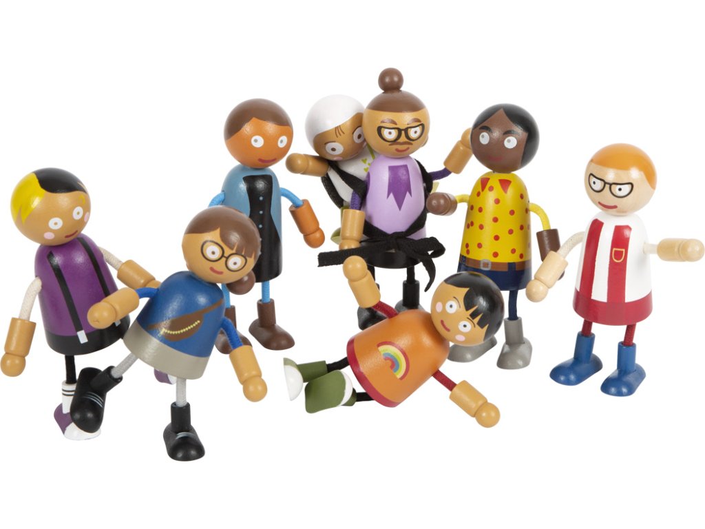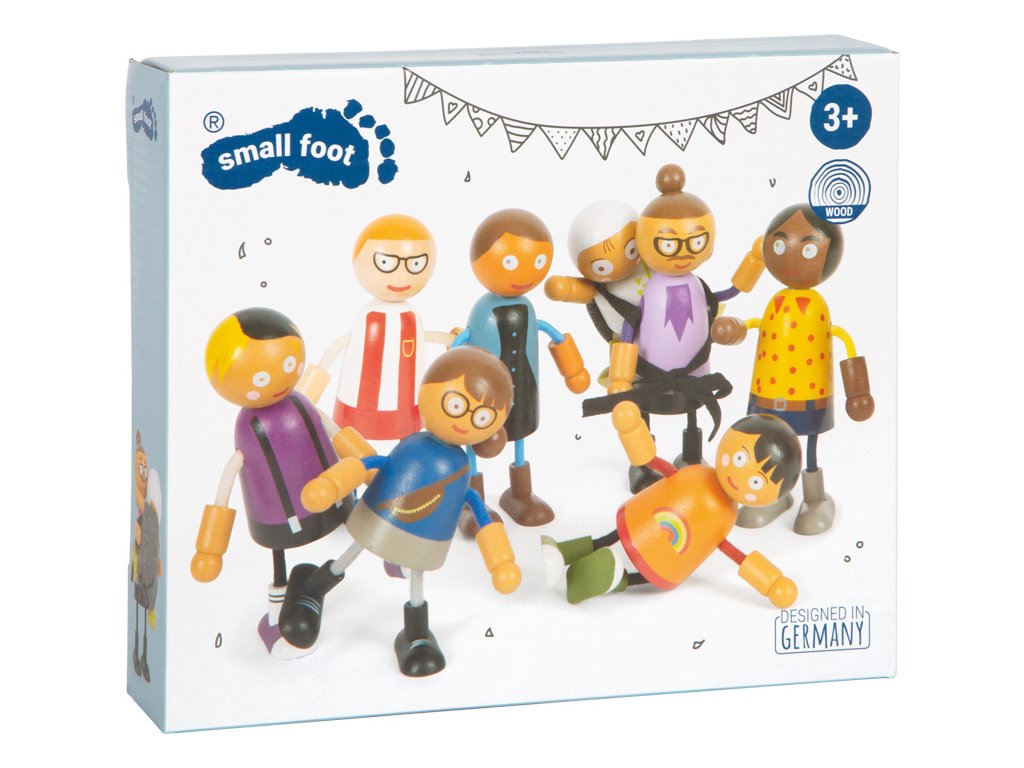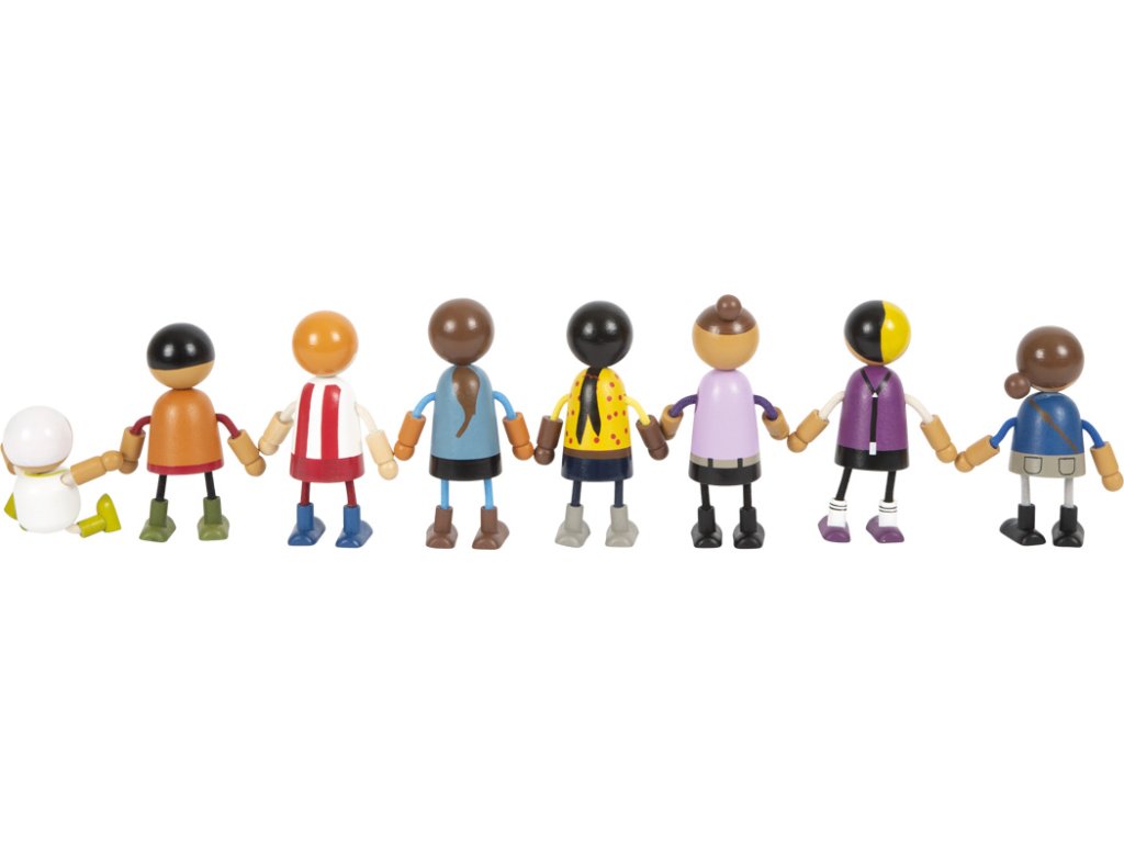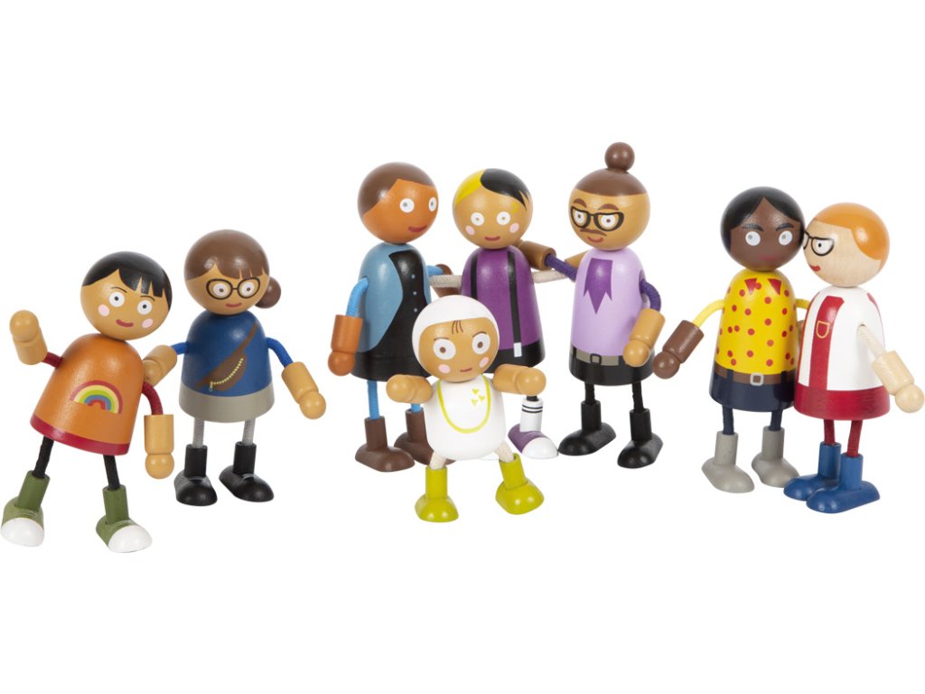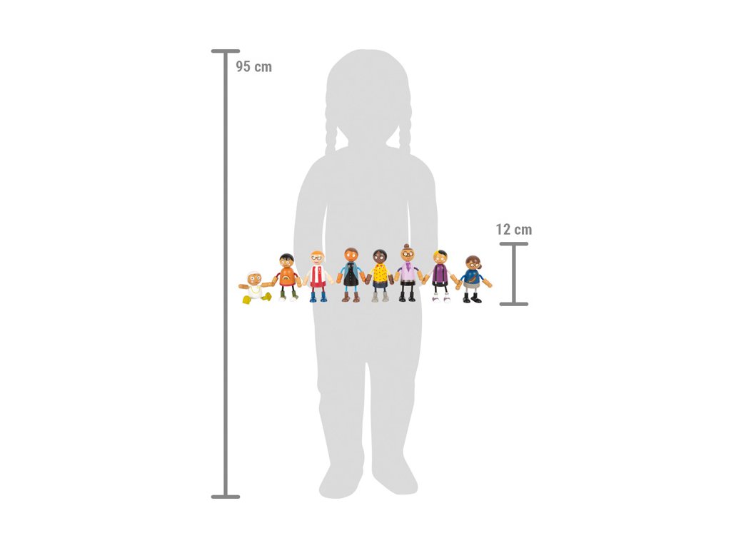 Tato velká rodina dřevěných ohýbacích panenek je vhodná do každého domečku pro panenky. Skládá se z 8 rodinných příslušníků různého pohlaví a věku. Ohýbací panenky mají hlavu a tělo vyrobenou z masivního dřeva, zatímco jejich ruce a nohy jsou textilní, ohebné. Dva páry rodičů, tři děti a miminko v nosítku, které lze připevnit k ostatním ohýbacím panenkám, nabízejí spoustu různých herních možností. Aktivní hraní rolí učí děti zábavnou formou, jak rozmanitý může být životní styl. Hraní rolí podporuje rozvoj identifikace, komunikace, představivosti a sociálních i emocionálních dovedností. Ohýbací panenky jsou svou velikostí snadno uchopitelné pro malé dětské ručičky. Ideální doplněk k městské vile s domečkem pro panenky (11802) kompaktní městské vile (12277). Hlavní vlastnosti: 8členná flexibilní rodinka panenek podporuje představivost, kreativitu a sociální dovednostirealistická zábava díky ohebným pažím a nohámflexibilní, robustní s bohatými detailyvelikost figurky je snadno uchopitelná pro dětské ruce
