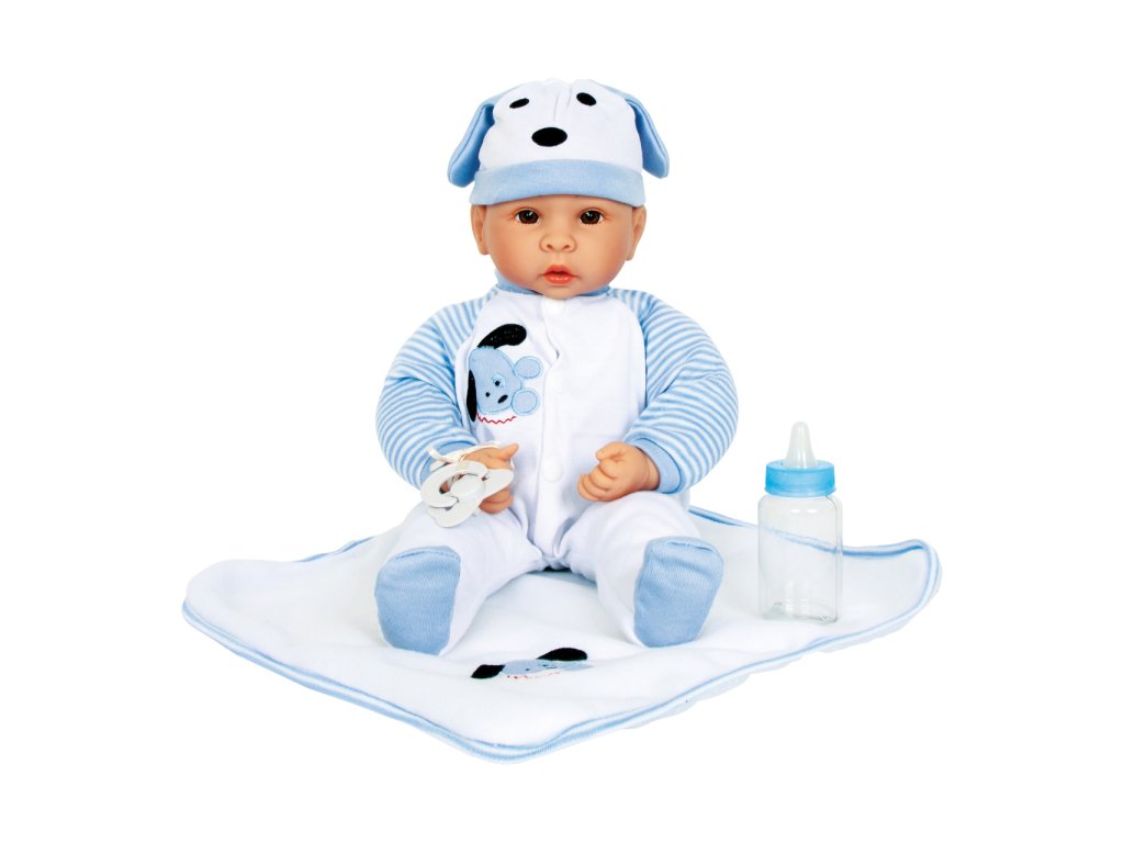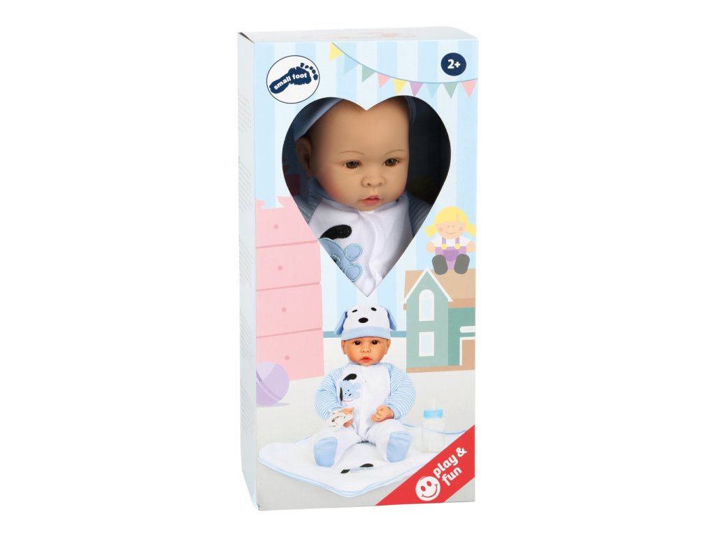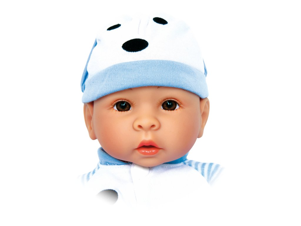 Malý Beno je velký milovník psů. Panenka má nasazenou čepičku a dupačky s roztomilým modro-bílým motivem štěněte. Balení zahrnuje kojeneckou lahvičku, dudlík, který se dá vložit do pusy, a měkkou přikrývku. Hlavní vlastnosti: obsahuje oblečení, kojeneckou láhev, dudlík a měkkou deku