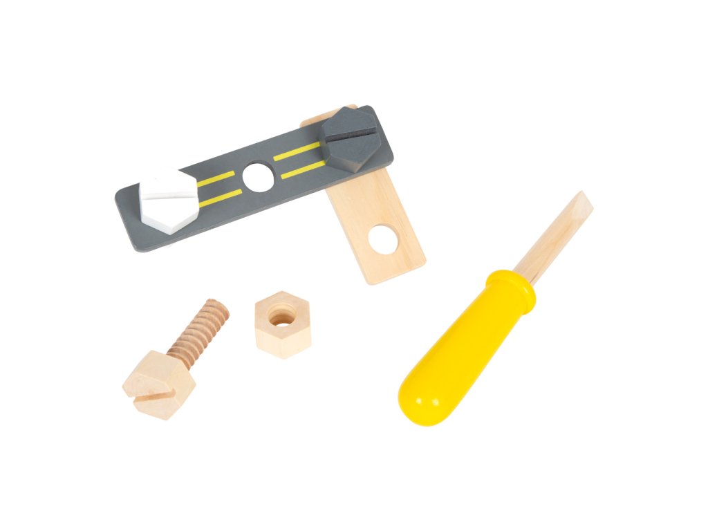 Opasek pro uložení nářádí! Opasek s nářadím s nastavitelnou velikostí pro mladé kutily, aby měli své nářadí vždy po ruce. Realistické nářadí ze dřeva, jako například šroubovák, klíč, perforované destičky. Perličkou je hasák a ráčna! Pásek se zapíná na klikací sponu. Hlavní vlastnosti: opasek, 4 ks nářadí, 10 ks příslušenstvínastavitelný opasekzapínání na přezku MiniwobSeznamte se s malými woby, nadšenými krokodýlími kutily! S jejich pomocí jde všechna práce jako po másle a žádná stavba není dost velká a promyšlená. Pestrá řada nástrojů a nářadí skýtá dokonalou zábavu pro všechny malé řemeslníky, jejich prostřednictvím mohou být kreativní a realizovat všechny své fantastické nápady. Jednotlivé sady je možno mezi sebou kombinovat a rozšiřovat s rostoucími dovednostmi dětí. Díky jednotícímu barevnému motivu a vyobrazením roztomilých Wobů je možno vytvořit jedinečný a ucelený dílenský koutek, který bude zároveň hodnotnou stavebnicí rozvíjející zručnost a představivost.