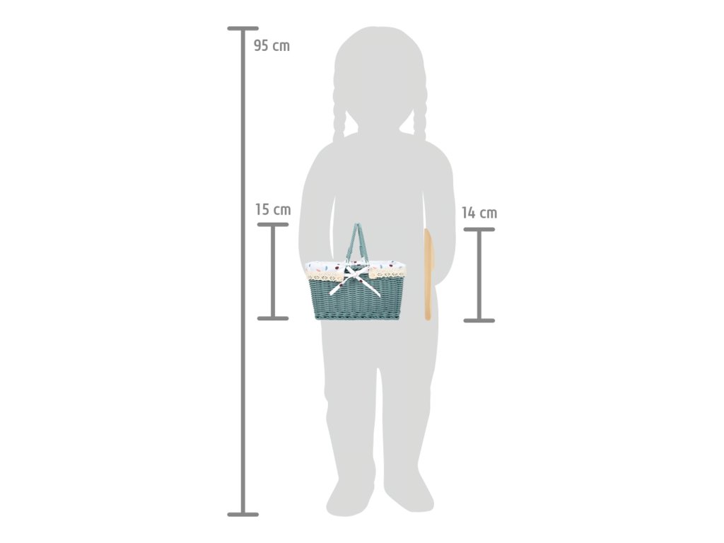 Můžete vyrazit na piknik! Tento kvalitní piknikový koš se složitelnými rukojetěmi a piknikovou dekou bude skvělým doplňkem pro vaše výlety na venkov nebo na zahradu. Košík je upleten z kvalitního proutí, je vybaven pro 2 osoby. Nádobí a jídlo je vyrobeno z pevného dřeva. Pomeranč a croissant drží dohromady díky suchému zipu. Vnitřní obložení košíku lze vyjmout a lehce vyčistit.Tato hračka má stejné barevné provedení jako kuchyňka „Tasty“ a další produkty z této série. Děti si s ní užijí představivou hru doma i venku. Některé z jídel lze „krájet“ za pomoci dřevěného nože. Hlavní vlastnosti: moderní a robustní proutěný piknikový koš„jídlo“ pro dvě osobyrukojeti lze složitv balení deka ve stejném motivuvnitřní obložení lze jednoduše vyjmouthračka pro hraní na role do kuchyněk nebo na piknikpomáhá s rozvojem jemné motoriky, sociálních a každodenních dovednostímoderní design v kombinaci s bílou, přírodním dřevem a trendy barvamikompatibilní s dalšími produkty z řady „Tasty“