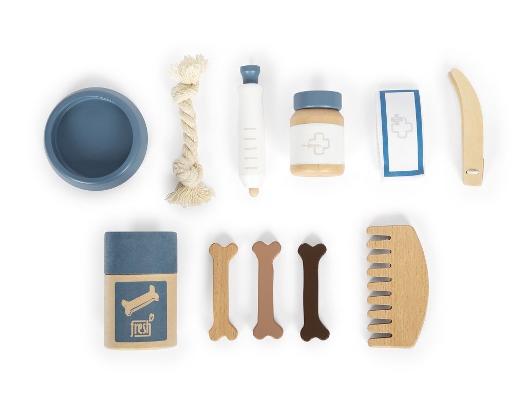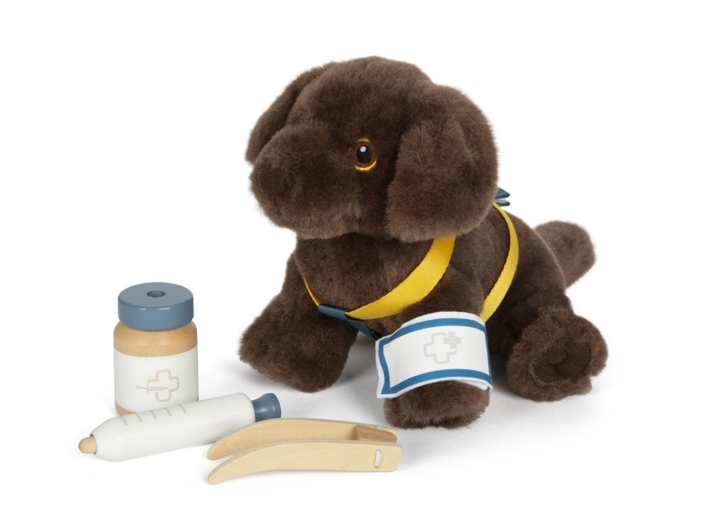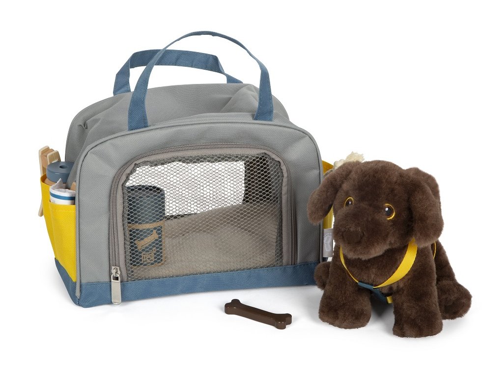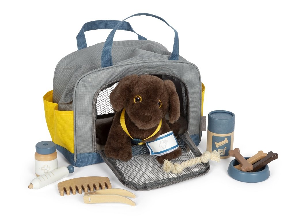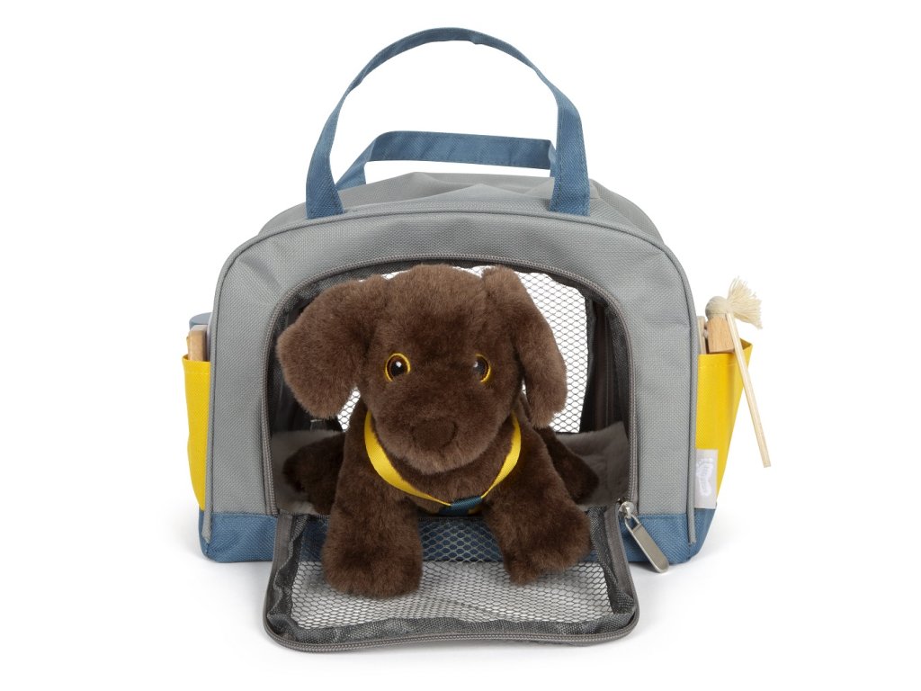 Plyšový kamarád, který má v sadě vše, co potřebujete, abyste o něj mohli pečovat. Nastěhujte si štěně do svého pokojíčku anebo si ho vezměte s sebou na cesty. Díky praktické přepravní tašce už svého mazlíčka nikdy nebudete chtít nechat doma. Sada obsahuje přepravní tašku s podložkou, pejska s postrojem a příslušenstvím pro jeho pohodlí. Co kdyby na cestách onemocněl, poranil si tlapku nebo měl klíště? Nebojte se! Tato sada obsahuje vše, co je potřeba. S ní máte jedinečnou příležitost předvádět realistické veterinární situace. Krmení, péče, hraní, léčení – tento plyšový pes s pečovatelskou sadou nabízí spoustu různých herních scénářů a povzbuzuje k aktivnímu hraní rolí.Hlavní vlastnosti: realistické zvířátkoplyšová hračka s postrojemsada obsahuje plyšového pejska, přepravní tašku s podložkou, misku, dózu na pamlsky, pinzetu, obvaz, krabičku na léky, hračku, kartáč a injekční stříkačku s pružinovým mechanismemtrénuje sociální a emocionální dovednosti