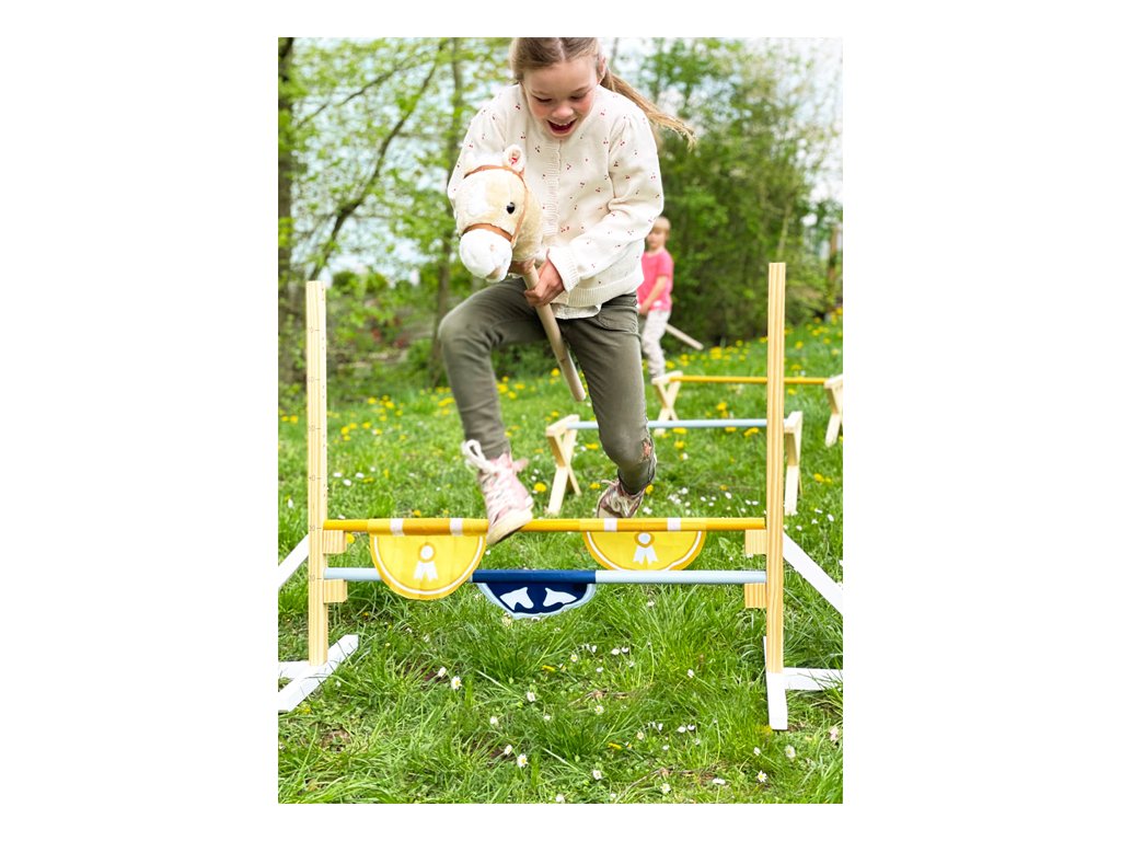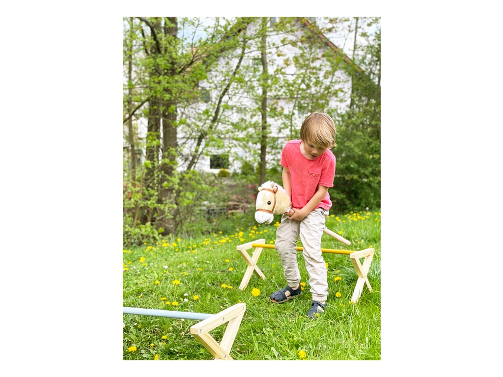 S touto sadou překážek z masivního dřeva si můžete vytvořit vlastní malou skákací dráhu přímo na zahradě nebo v domě! Dva kusy překážek, které jsou postaveny jako skutečné koňské kavalety, lze používat flexibilně - s tyčí v dolní poloze pro malé skoky nebo naskládané na sebe. Hra na "koně" a skákání přes překážky s hobby koníkem jsou oblíbenou zábavou u milovníků koní všech věkových kategorií! Kombinací s Překážkovým setem (LE12398) vytvoříte komplexní cvičební okruh. Tyto překážky z masivního, ale lehkého dřeva se také ideálně hodí pro trénink agility se psy a pro spoustu dalších cvičebních a pohybových her. Hlavní vlastnosti: sada obsahuje 2 kavaletymoderní pastelové provedení s prvky přírodního dřevavyužitelné v interiéru i exteriérudvě varianty výšky